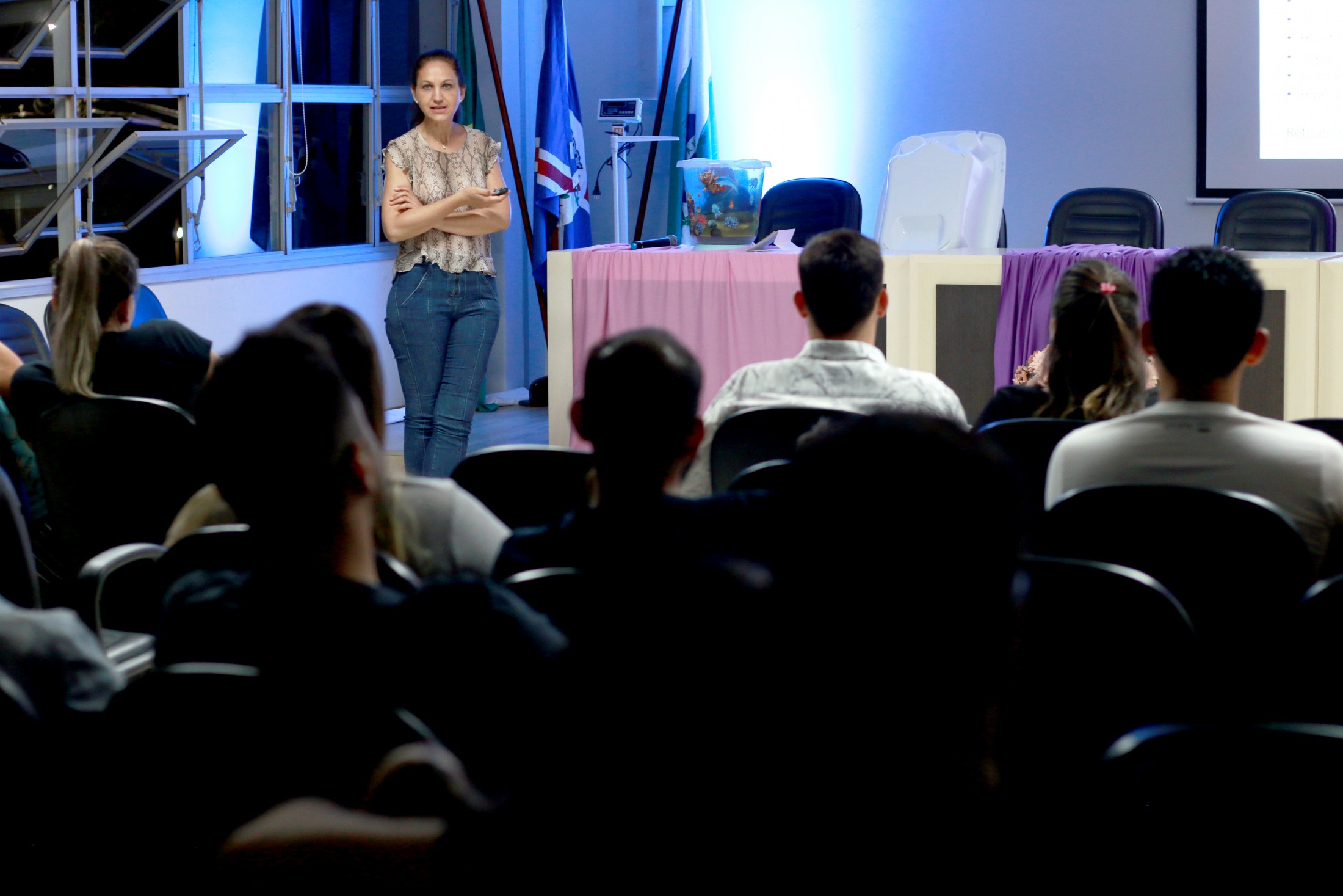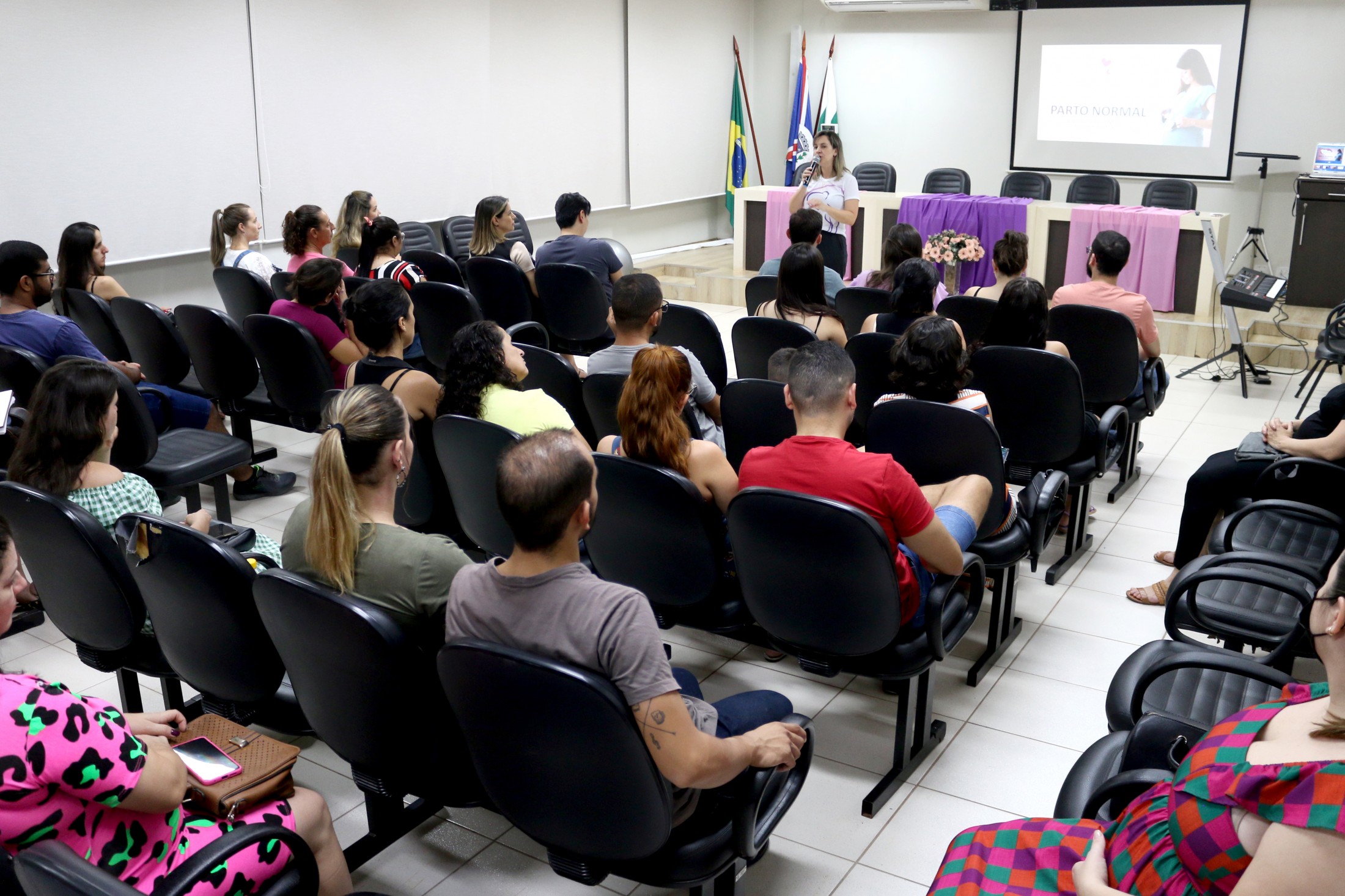 Na noite da última quarta-feira (12), encerrou mais um grupo do Curso para Gestantes e Acompanhantes, ofertado pelo Projeto Gestar e Amar, da Secretaria Municipal de Saúde. Cerca de 50 pessoas participaram e após quatro encontro semanais, as futuras mamães e seus companheiros estão mais preparados para este momento especial. A última reunião, no auditório do Paço Municipal, foi conduzida pela pediatra, Lana M. Neri, e a enfermeira, Heglen C. Nicolau, sobre “Cuidados com o recém-nascido”. e o encerramento foi marcado por instantes de musicoterapia.
