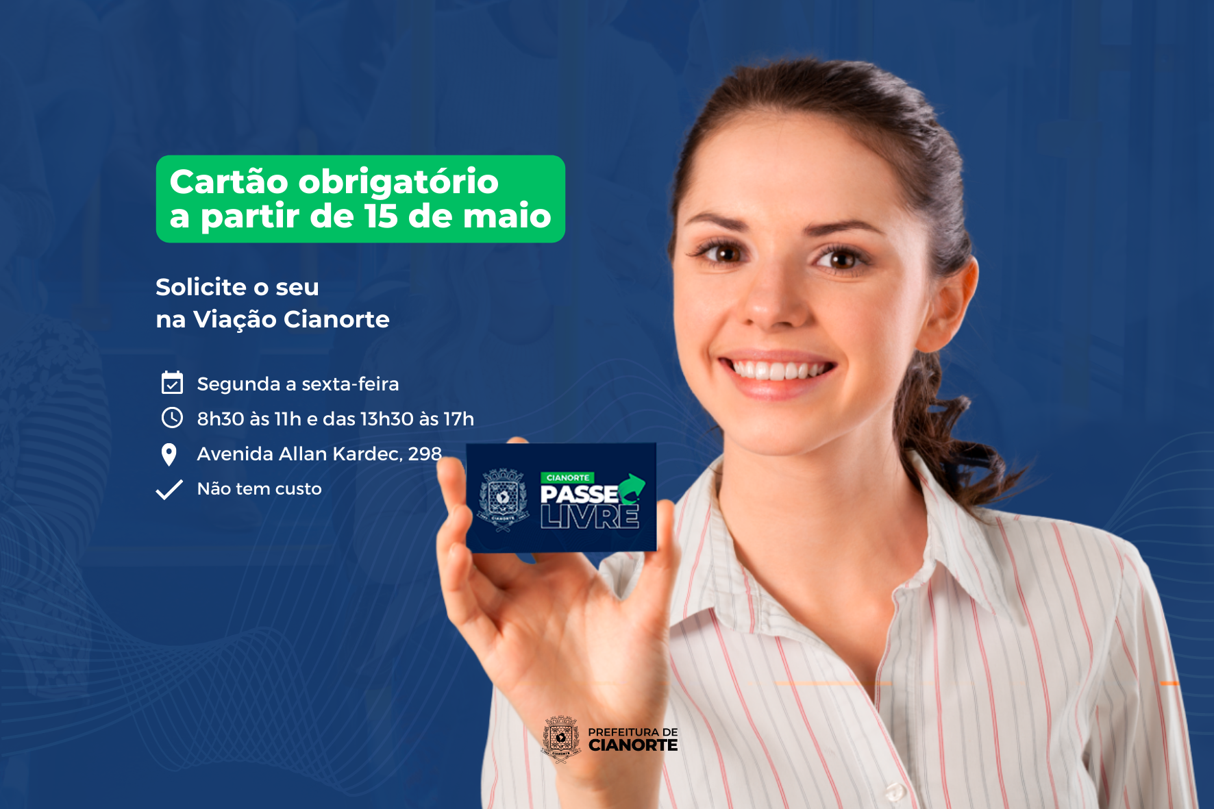 Em Cianorte, os usuários do transporte público coletivo que ainda não providenciaram o cartão eletrônico do Programa Passe Livre devem ficar atentos ao prazo para garantir a gratuidade do serviço: a partir do dia 15 de maio, a apresentação será obrigatória e, para quem não tiver o dispositivo em mãos, haverá a cobrança da tarifa de R$ 5 por passagem. Quem possui a versão antiga, não precisa renovar, pois continuará com validade.
