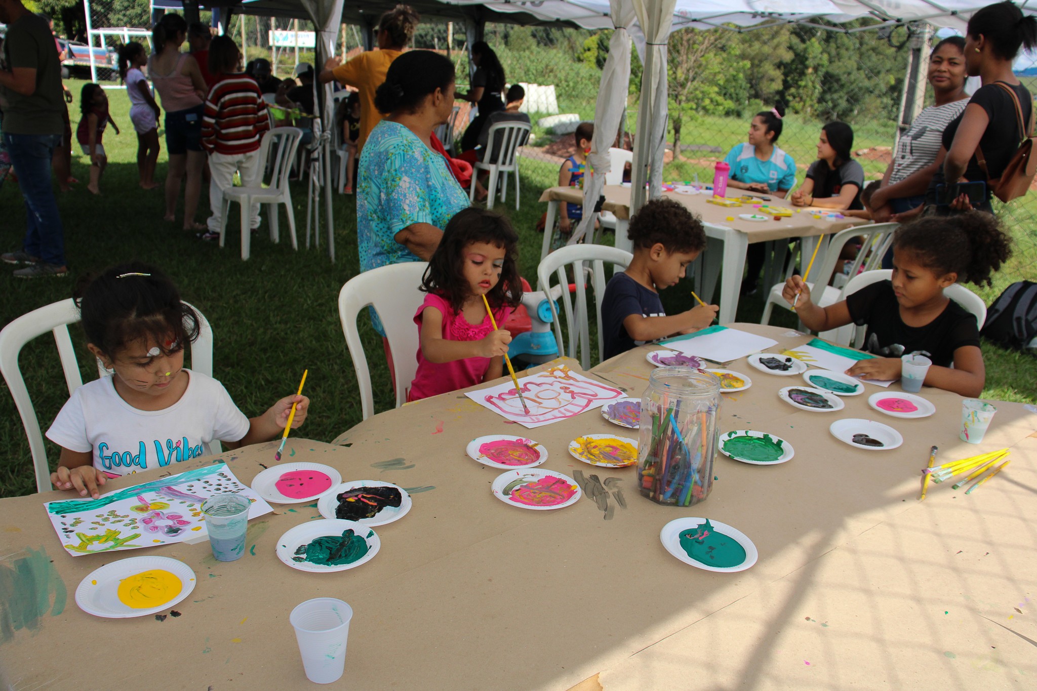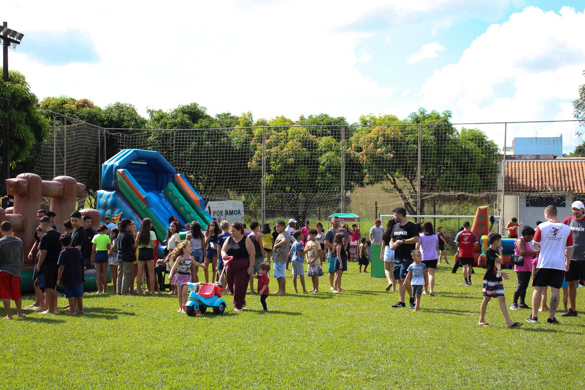 O último sábado (29) foi de muita diversão, alegria e brincadeiras no Ovídio Franzoni. Isto porque, a Secretaria Municipal de Esporte e Lazer (SMEL), em parceria com o curso de Educação Física da Unipar, realizou o Rua de Lazer, no campo do Centro Esportivo José Carlos Bassi, que recebeu a participação de 350 crianças. No local, os pequenos contaram com pintura facial, massinha de modelar, atividades recreativas e brinquedos infláveis. Também foram distribuídos 2.000 doces.