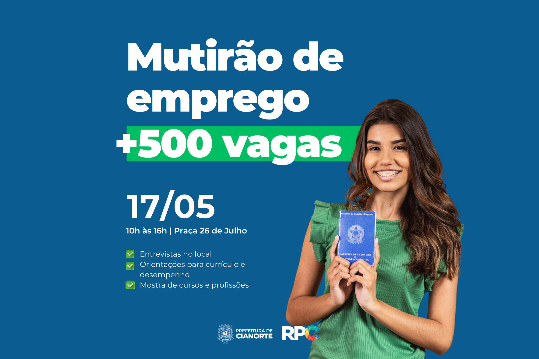 As pessoas em busca de uma colocação no mercado de trabalho devem se preparar para uma ação especial nesta quarta-feira (17): a Secretaria Municipal de Desenvolvimento Econômico, por meio da Agência do Trabalhador de Cianorte, em parceria com a RPC e com o apoio do SESC, SENAC, SEBRAE, UEM, Unipar, UMFG, Estação do Ofício e empresas locais, está organizando o Mutirão de Emprego.