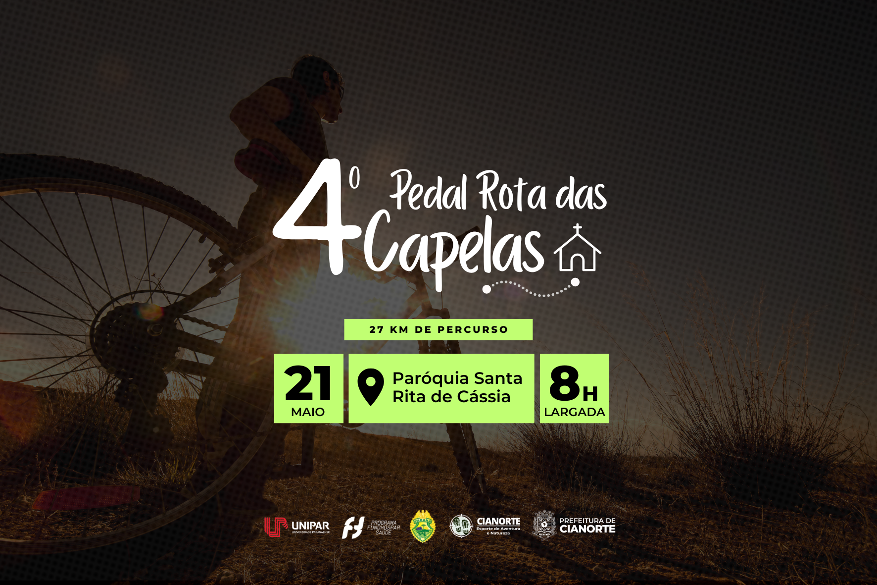 “O Pedal Rota das Capelas significa muito mais do que pedalar, é uma conexão entre esporte e natureza. As paisagens são únicas e os participantes vão interagir com igrejinhas que contam a história de Cianorte. É o esporte proporcionando experiências enriquecedoras. Vale lembrar da importância do uso de equipamentos de segurança durante o trajeto”, destaca o coordenador do projeto, Claudinei dos Santos.
