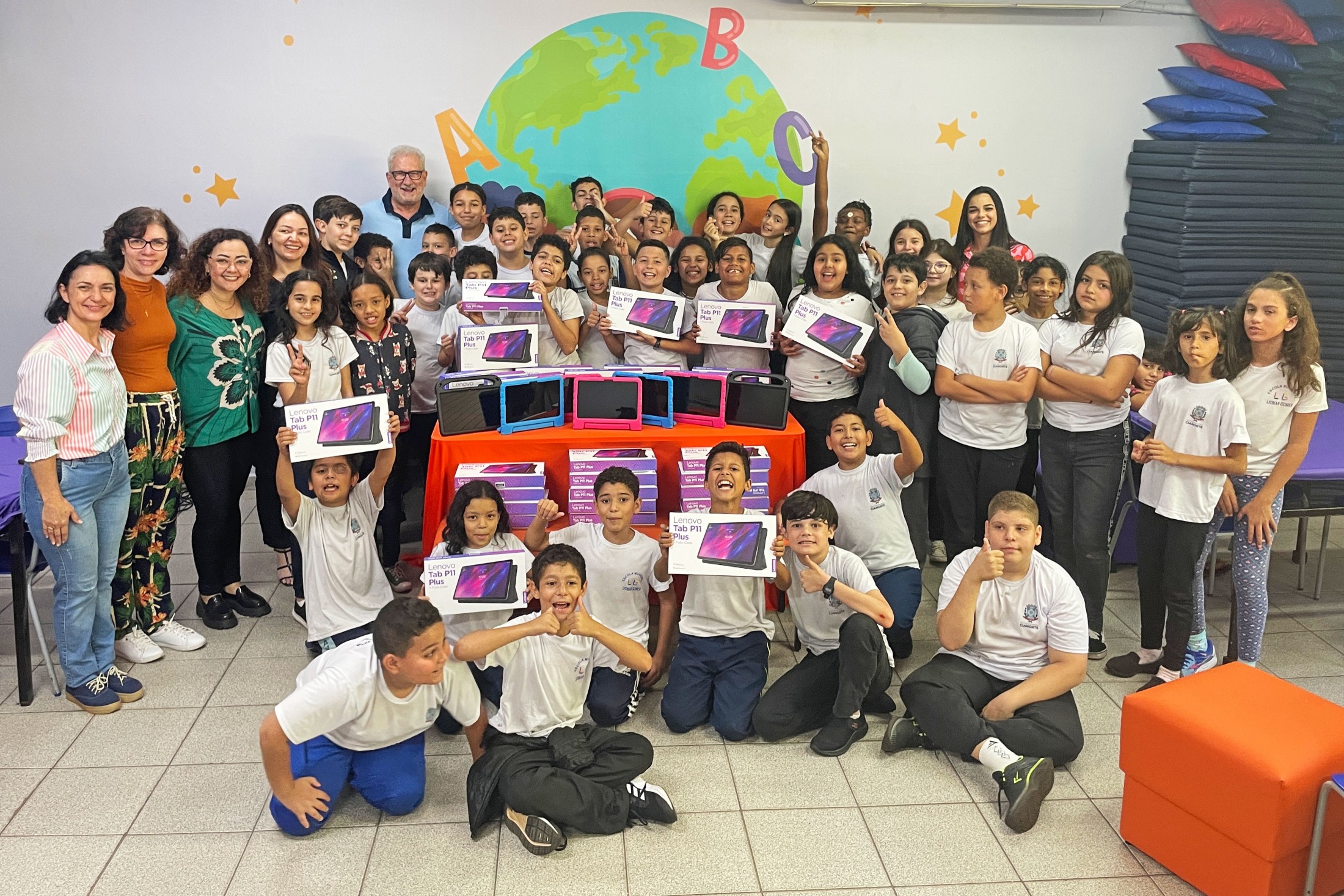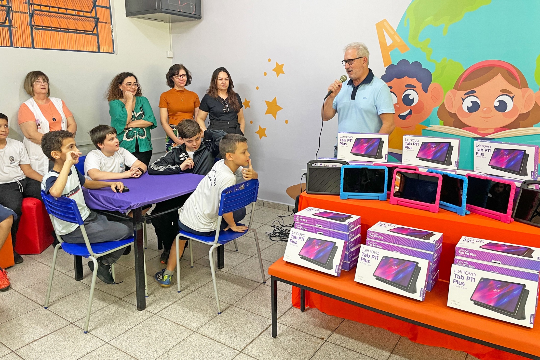 A secretária municipal de Educação, Jakeline Plácido Marcon, explicou que “a inserção de dispositivos e recursos multimídia na rotina escolar, tanto na aquisição do conhecimento, quanto na gestão, é muito positiva. Esses equipamentos poderão ser utilizados na disciplina Tecnologia e Inovação e também no apoio às demais, como ferramentas auxiliares da prática pedagógica”, ressaltou. A solenidade de entrega contou, ainda, com a presença da chefe de Gabinete, Daniele Lima Simão; da coordenadora Educacional e Pedagógica de Tecnologia e Inovação e Educação Integral, Cláudia Roberta Amorim; e da equipe e alunos da Escola Municipal Liomar Gomes.