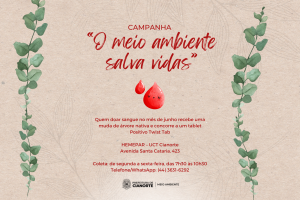 “O intuito desta campanha é ressaltar a importância da doação e incentivar que mais pessoas se tornem doadoras regulares. Uma única bolsa de sangue pode salvar até quatro vidas. Nada substitui o sangue. Assim como nada substitui o meio ambiente. Por isso, unimos forças para chamar a atenção e sensibilizar os cianortenses”, destaca o chefe da Divisão de Educação Ambiental, Michel Thomaz. Mais informações pelo telefone/WhatsApp (44) 3631-6292 ou pelo site https://www.saude.pr.gov.br/Pagina/Doacao-de-Sangue.