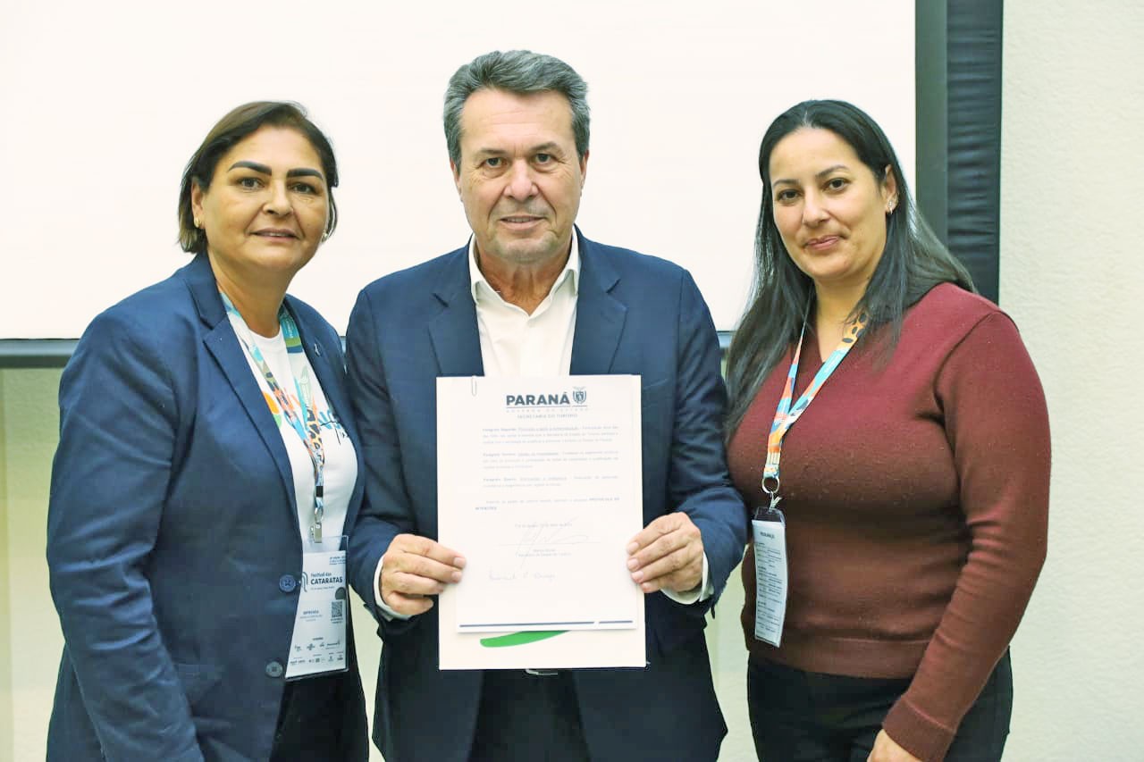 A Instância de Governança Regional (IGR) Cinturão Verde – órgão que coordena, planeja e executa ações para o desenvolvimento do turismo na região da Amenorte – esteve representada na reunião das 19 unidades que compõem o Paraná com a Secretaria de Estado do Turismo (SETU), realizada na última quarta-feira (31), em Foz do Iguaçu, durante o 18° Festival das Cataratas. A presidente, Francieli Luzia Briga, acompanhada da coordenadora de Turismo de Cianorte, Ângela Carvalho de Andrade, responsável pelos trâmites burocráticos da entidade, puderam apresentar as demandas regionais, bem como assinar um protocolo de intenções que ratifica o apoio do Governo Estadual e viabiliza parcerias.
