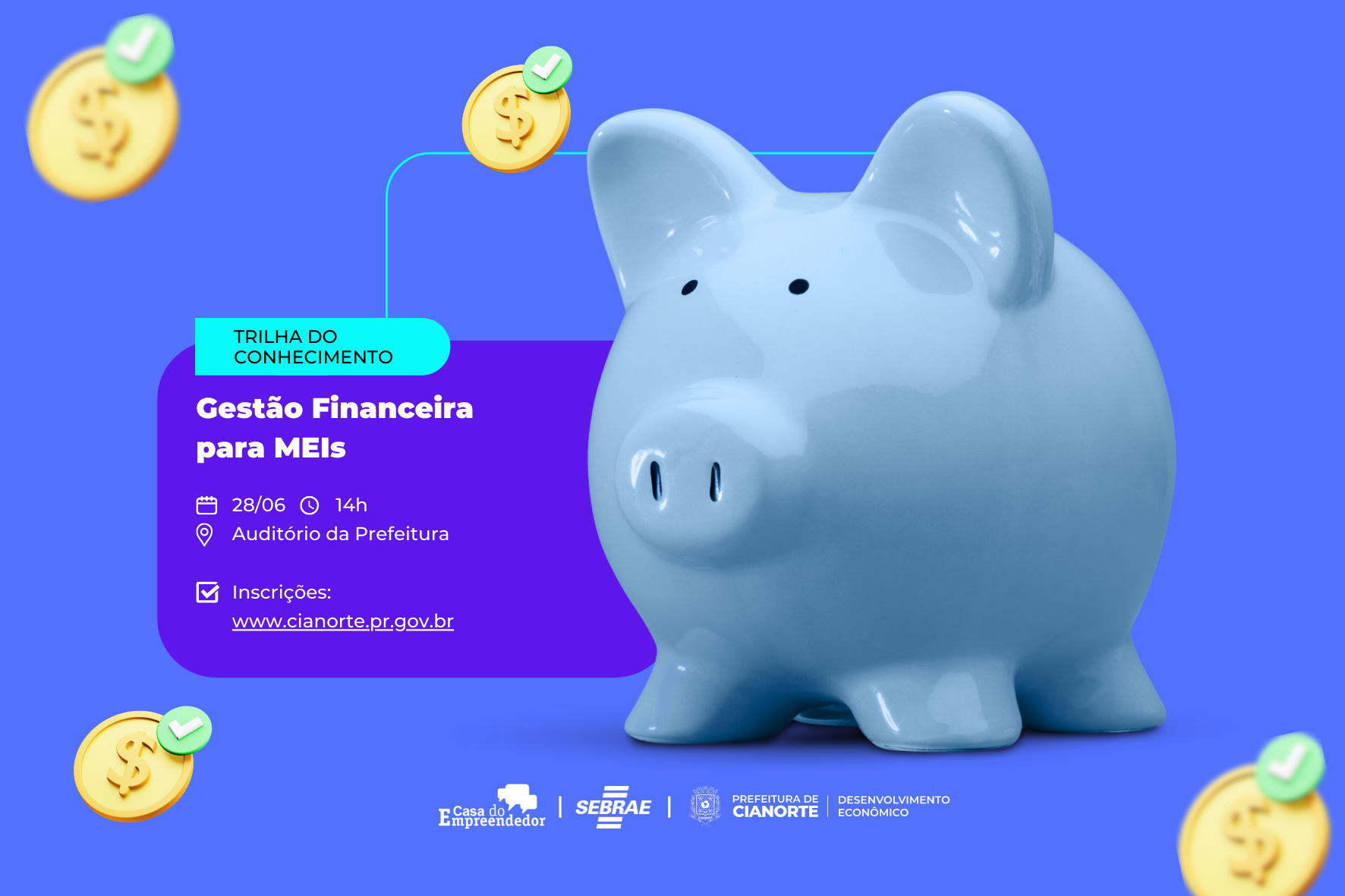 Os microempreendedores de Cianorte têm a oportunidade de aprender sobre planejamento e controle financeiro com a Trilha do Conhecimento, ofertada pelo Sebrae, em parceria com a Casa do Empreendedor, marcada para o dia 28 de junho, às 14h, no auditório da Prefeitura. Para participar, basta preencher o formulário on-line: https://l1nk.dev/gestaofinanceira.