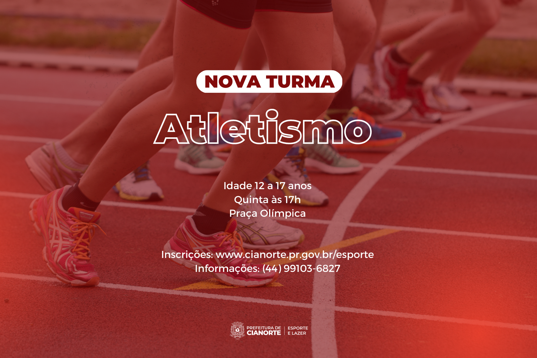 A Prefeitura de Cianorte, por meio da Secretaria Municipal de Esporte e Lazer (SMEL), abriu, nessa quarta-feira (07), as inscrições para as atividades gratuitas de atletismo das Escolinhas de Iniciação Esportiva. As vagas são para adolescentes de 12 a 17 anos, de ambos os sexos, e a participação é gratuita. Os treinamentos ocorrerão nas quintas-feiras, às 17h, na pista da Praça Olímpica.