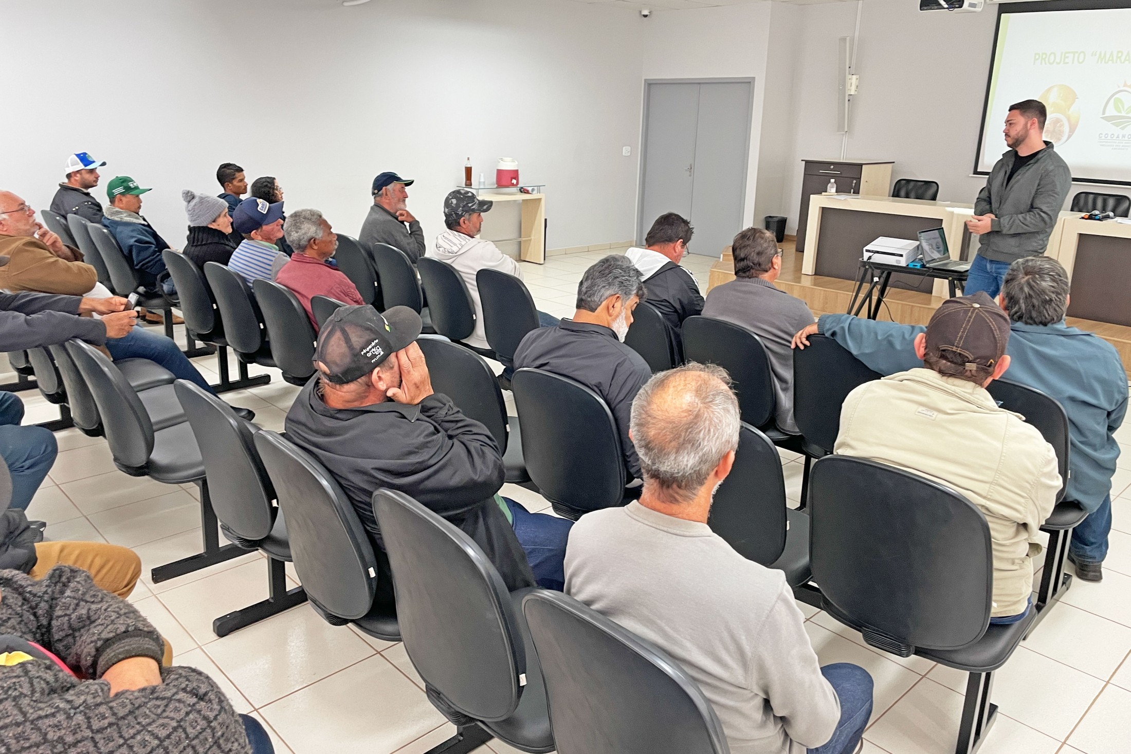 Na tarde desta sexta-feira (16), no auditório do Paço Municipal, a Secretaria Municipal de Agricultura, juntamente com o Instituto de Desenvolvimento Rural (IDR – Paraná), a Cooperativa dos Agricultores Familiares dos Municípios da Amenorte (Cooanorte) e a Indústria PolpaNorte, promoveu uma reunião com os 22 agricultores interessados em participar do Projeto Maracujá, que incentiva a cultura. O objetivo foi apresentar informações sobre o andamento dos trabalhos, bem como levantar a quantidade de mudas que serão cultivadas por produtor rural.