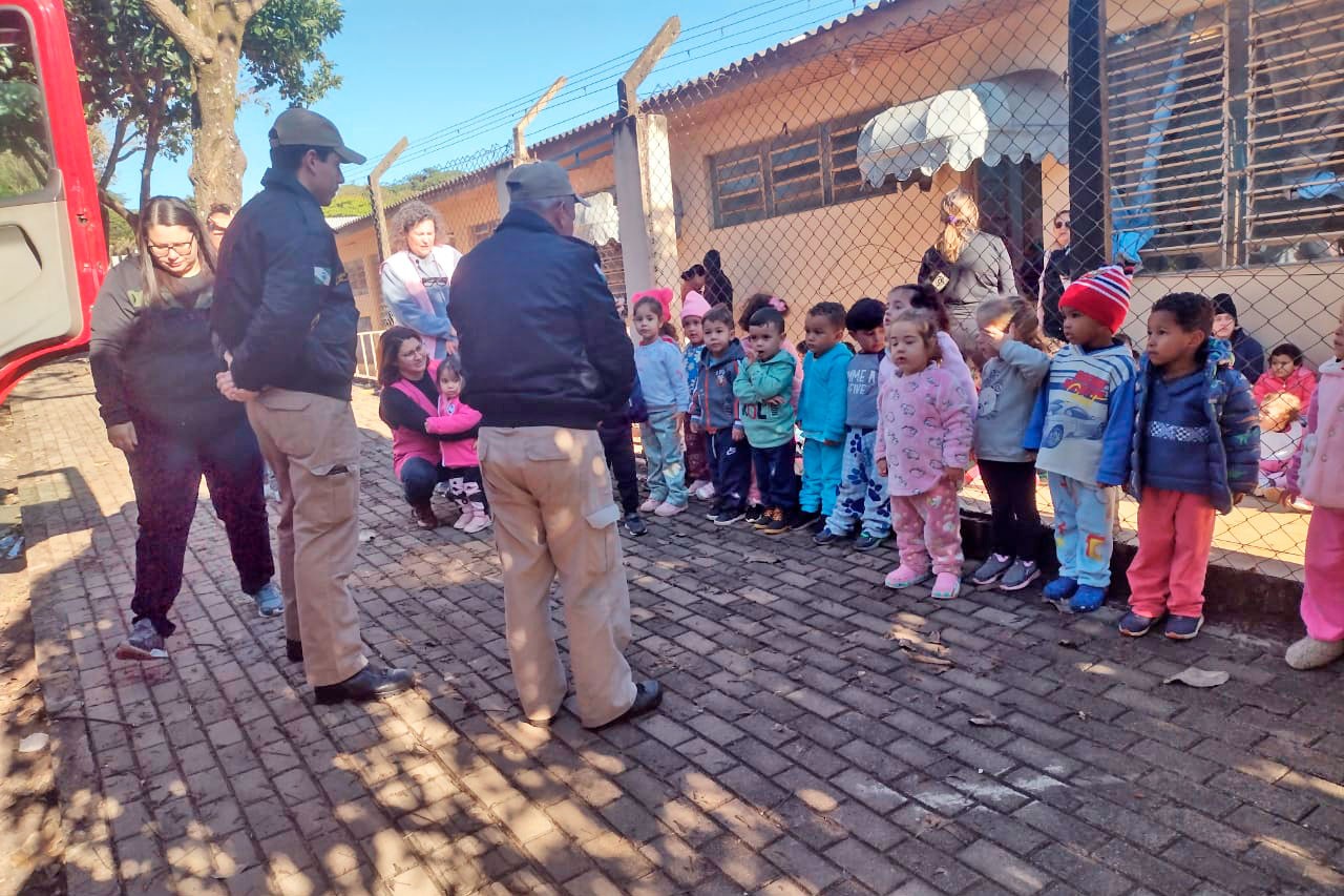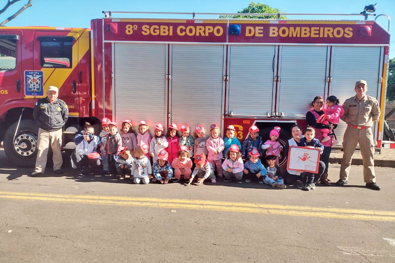 A semana começou diferente para os alunos do Centro Municipal de Educação Infantil João e Maria (Seis Conjuntos). Na manhã desta segunda-feira (19), os pequenos receberam a visita dos bombeiros, Subtenente Barroco e Soldado Maio, que mostraram o funcionamento do caminhão e relataram como é o seu dia a dia. A ação integra o projeto “Viva a vida com valorização das profissões”, desenvolvido pelas profissionais Jane Valensola de Oliveira, Edilaine Aparecida Jordão de Avelar, Caroline Calefe Pereira da Silva e Mariana de Oliveira Muniz, todas do Maternal IB.