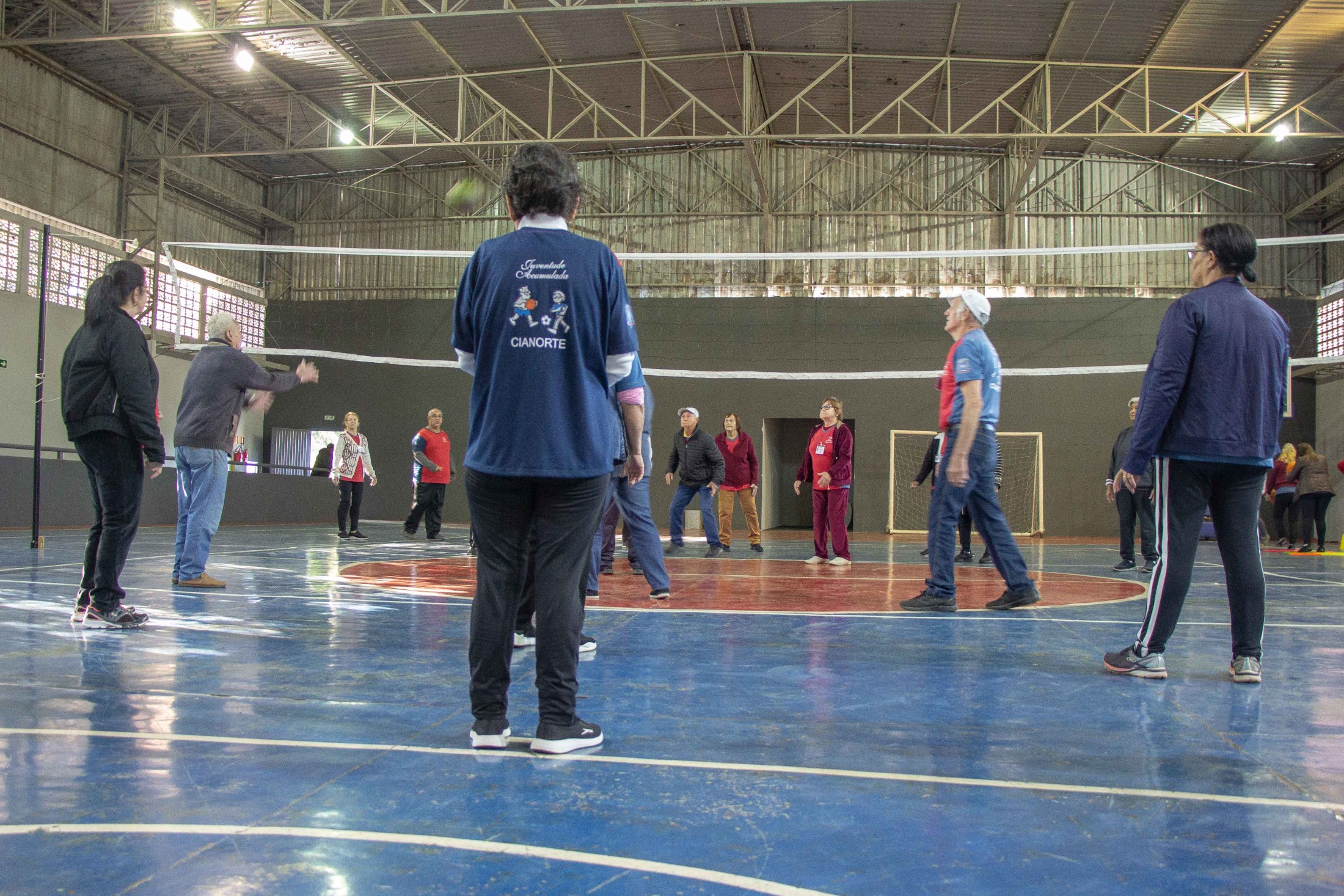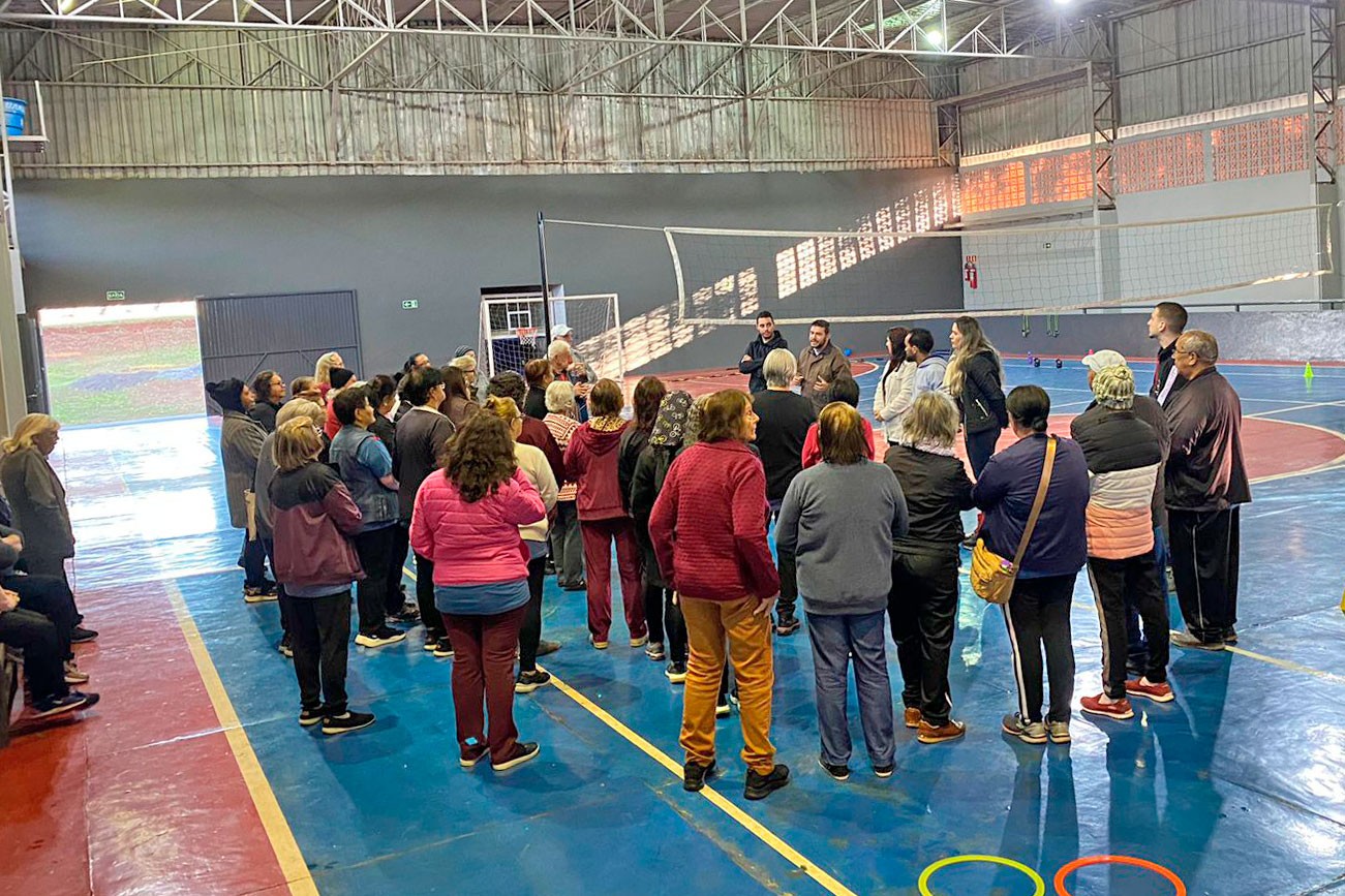 O Complexo Desportivo Vereador Benedito Rotta (Vila 7) passou por obras de revitalização. O espaço, utilizado por praticantes de futsal, basquete, vôlei e dança, recebeu, nesta terça-feira (20), pela primeira vez, o novo grupo do Juventude Acumulada. Os idosos puderam desfrutar das benfeitorias, enquanto praticavam atividades físicas.