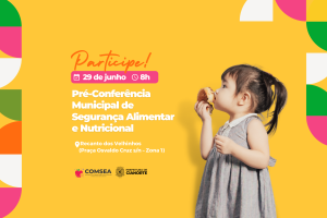 Com o objetivo de ampliar o debate em torno do tema “Erradicar a fome e garantir direitos com Comida de Verdade, Democracia e Equidade”, o Conselho Municipal de Segurança Alimentar e Nutricional (CONSEA) promove, nesta quinta-feira (29), sua pré-conferência municipal. A iniciativa será às 8h, no Recanto dos Velhinhos (Praça Osvaldo Cruz s/n – Zona 1), e aberta à população.