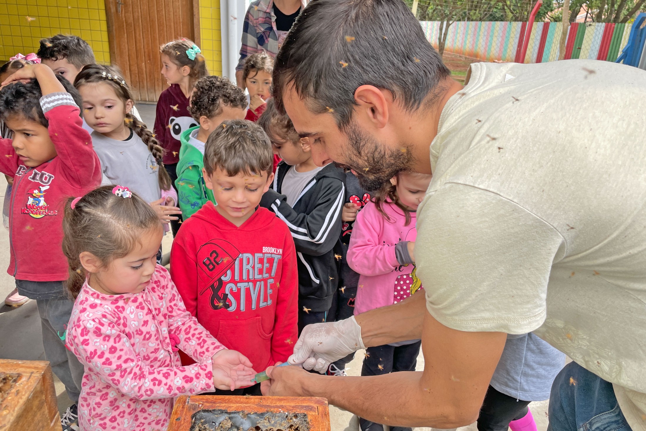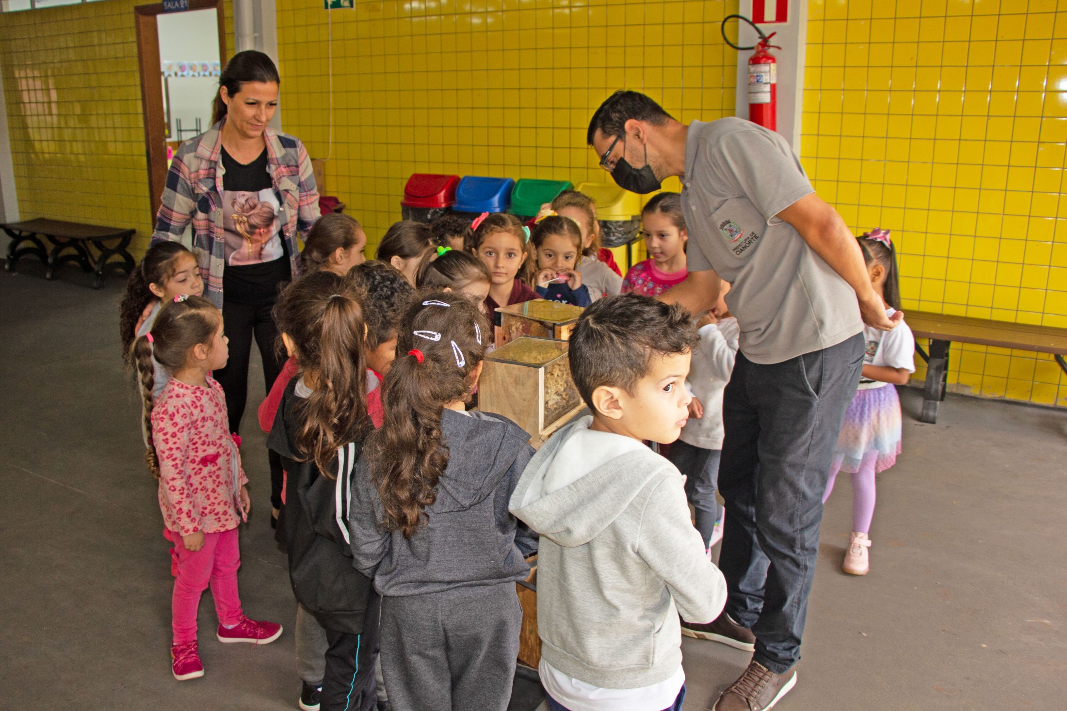 “Os principais objetivos desta iniciativa são demonstrar às crianças a importância da abelha na natureza, na manutenção e promoção da biodiversidade, desmistificar a sua criação, ensinar os alunos a manejá-las, para que ocorra a polinização das plantas nos arredores da escola e a comunidade escolar possa usufruir do mel ali produzido”, explicou o chefe da Divisão de Fomento Agropecuário, Adenir Volpato, lembrando que a Secretaria Municipal de Agricultura pretende, a curto prazo, disseminar a criação de abelhas como alternativa de renda para agricultores familiares.