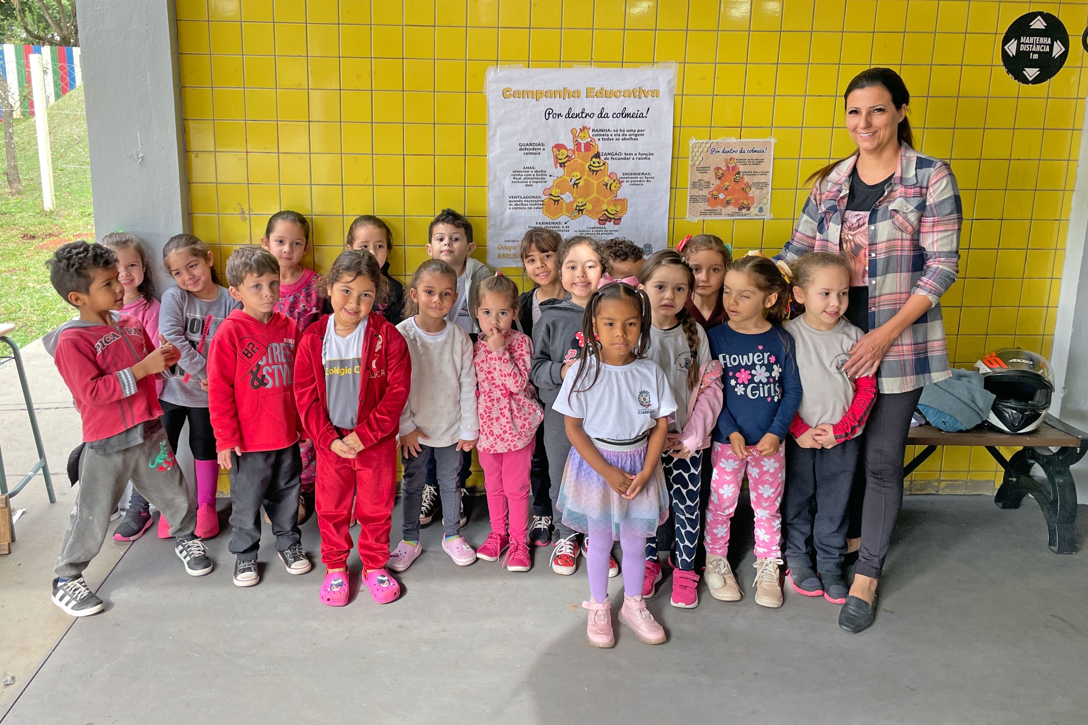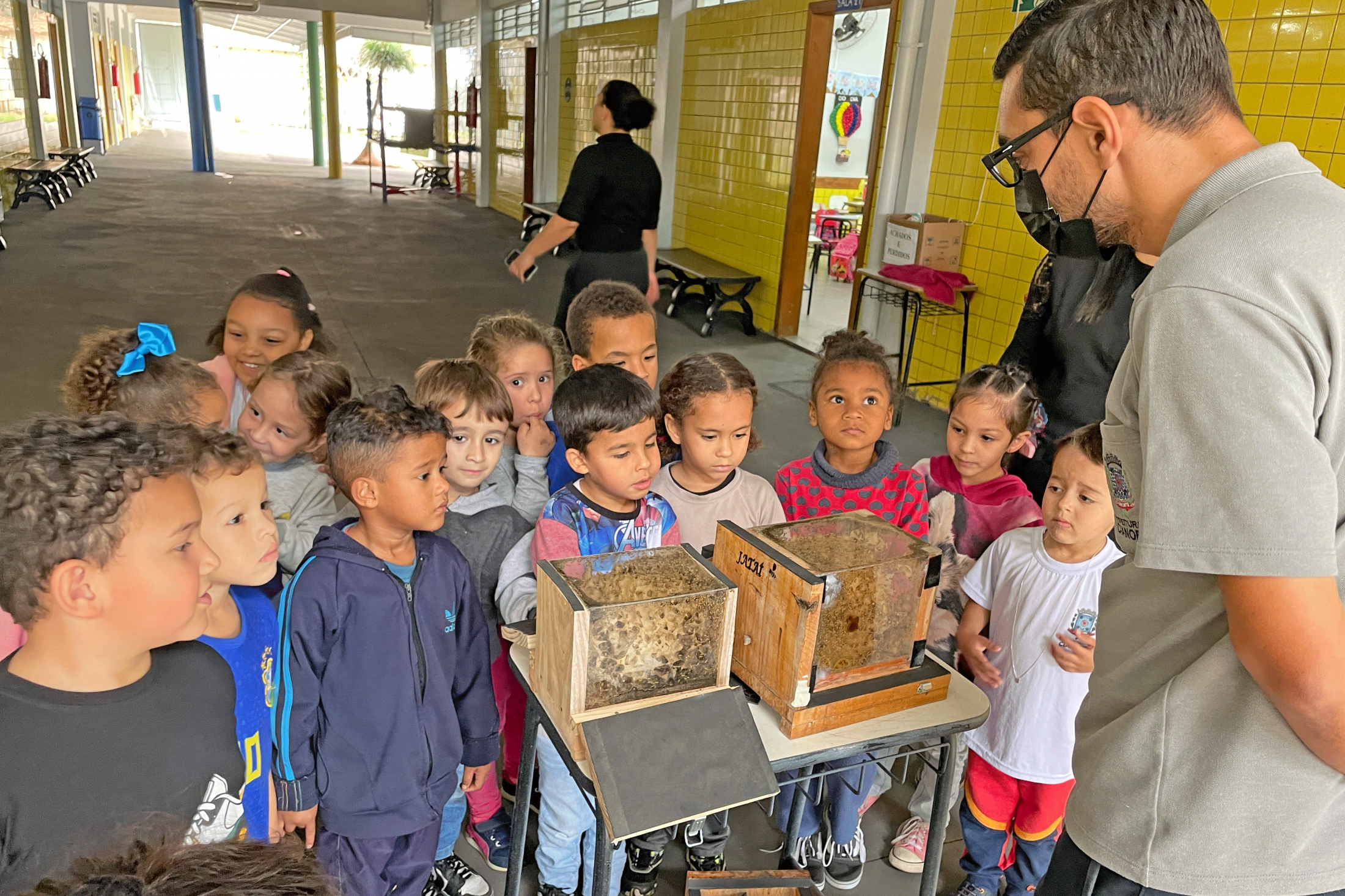 “Enquanto escola, estamos muito felizes em receber o projeto. As colmeias são grandes ferramentas de educação ambiental, pois demonstram os benefícios dos serviços ecossistêmicos prestados pelos insetos. No início do século XX, Albert Einstein, um dos maiores físicos de todos os tempos, disse que se as abelhas desaparecessem da Terra, a humanidade teria apenas mais quatro anos de existência, uma vez que sem elas não há polinização e, consequentemente, não há reprodução da flora. Sem flora não há animais, e sem animais não haverá raça humana”, ressaltou a secretária municipal de Educação, Jakeline Plácido Marcon.