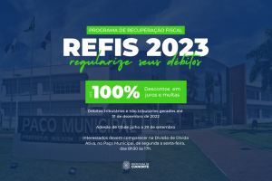 A partir desta segunda-feira (03), os interessados em quitar débitos tributários e não tributários, inscritos em dívida ativa, ajuizados ou não, já podem aderir à edição de 2023 do Programa de Recuperação Fiscal (REFIS). Para tanto, os contribuintes devem procurar pela Divisão de Dívida Ativa, localizada no primeiro piso do Paço Municipal e que atende de segunda a sexta-feira, das 8h30 às 17h.