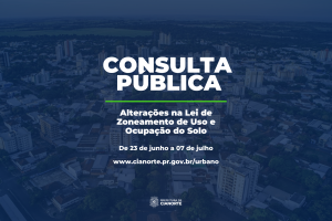 A Lei de Zoneamento de Uso e Ocupação do Solo (Lei Complementar nº 177/2022) precisa receber alterações e, para tanto, a Secretaria Municipal de Desenvolvimento Urbano convida a população a opinar sobre os seus mapas. A Consulta Pública é on-line, com acesso pelo banner localizado na página da secretaria no site da Prefeitura (www.cianorte.pr.gov.br/urbano), e termina nesta sexta-feira (07). No local, é possível visualizar a proposta de mapa de zoneamento e também o formulário para requerer/sugerir alterações.