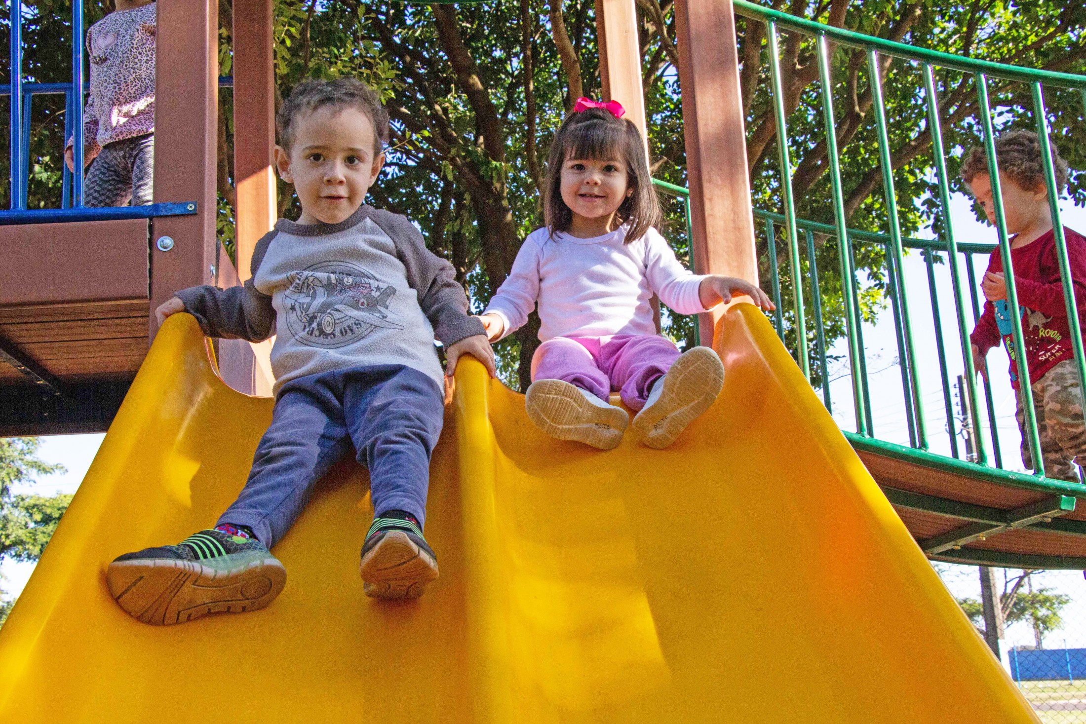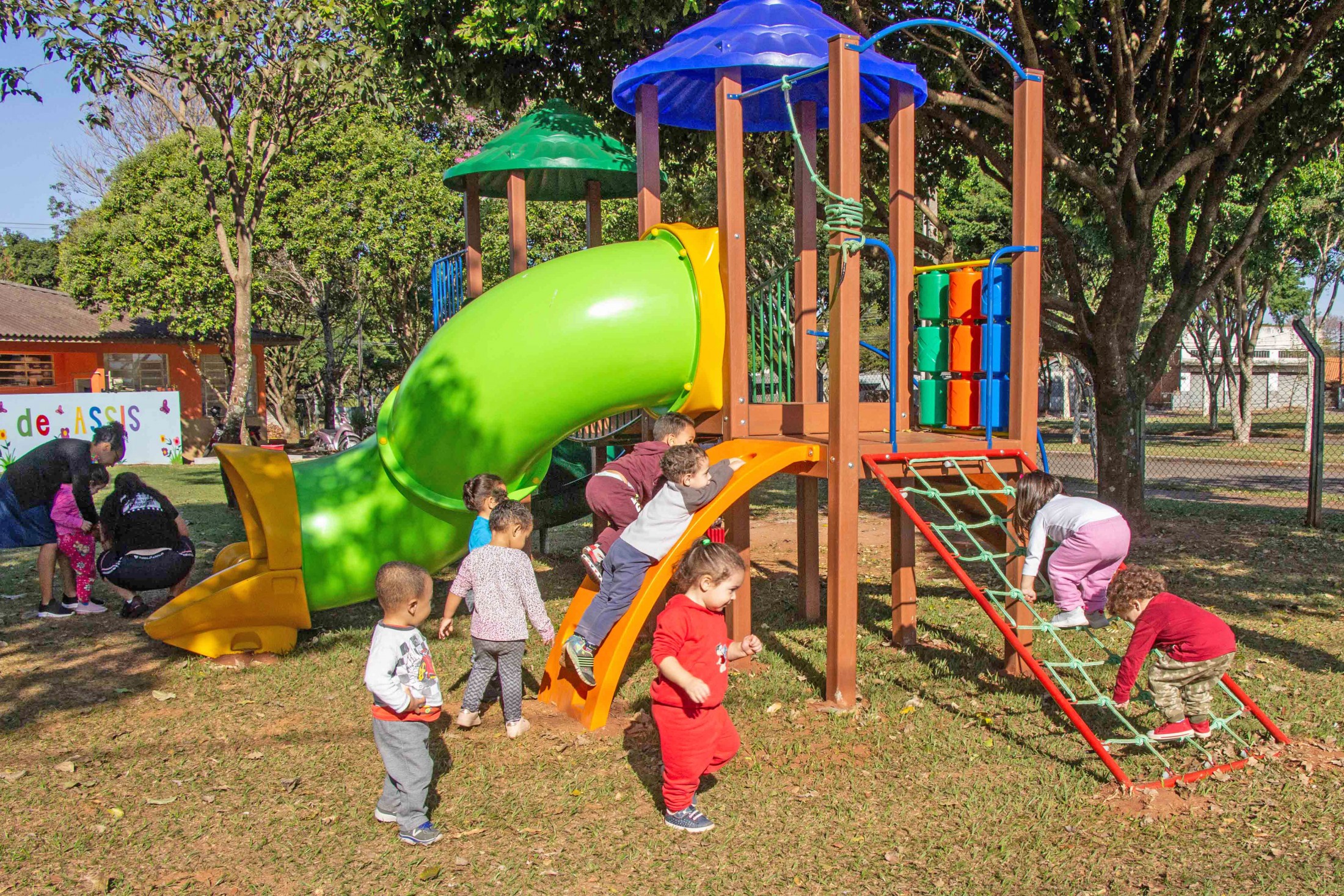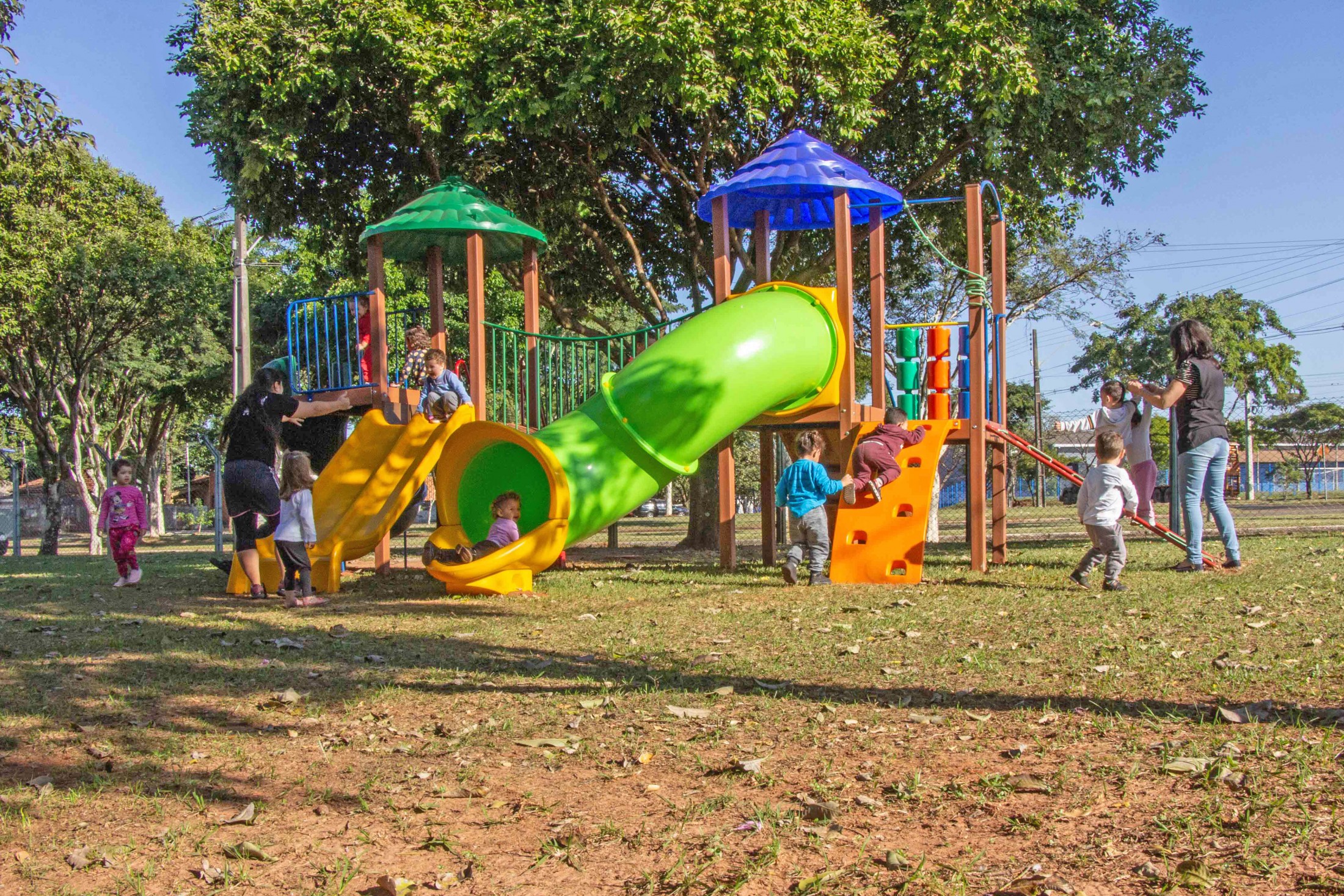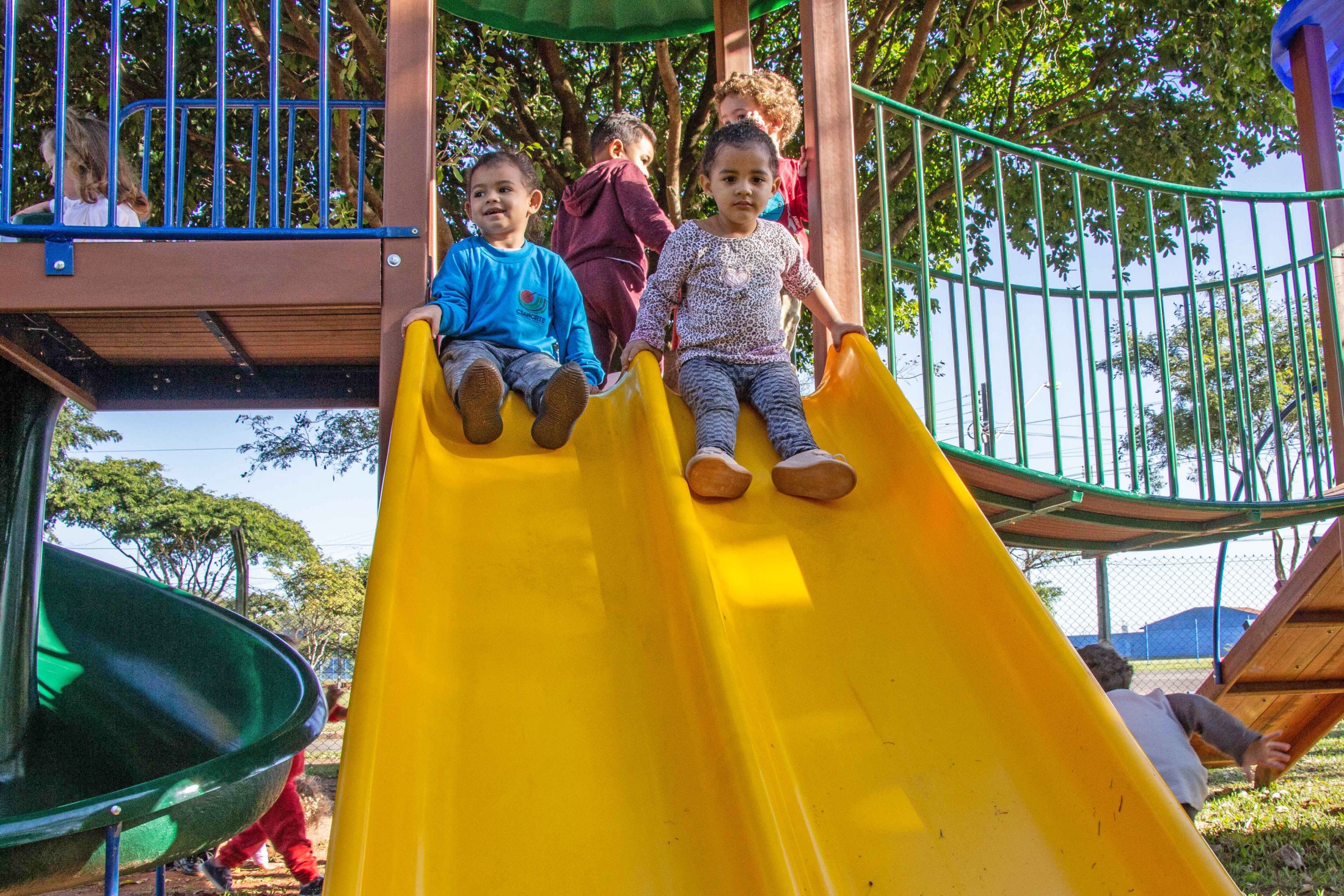 A permanência nas escolas municipais Castro Alves e Ovídio Luiz Franzoni, bem como nos centros municipais de educação infantil (CMEIs) São Francisco de Assis, Lúcia Reschetti Cerqueira e Aidê Eugênio Biazzi, está muito mais divertida. Isso, porque, a Secretaria Municipal de Educação instalou, nas cinco instituições de ensino, novos parques infantis.