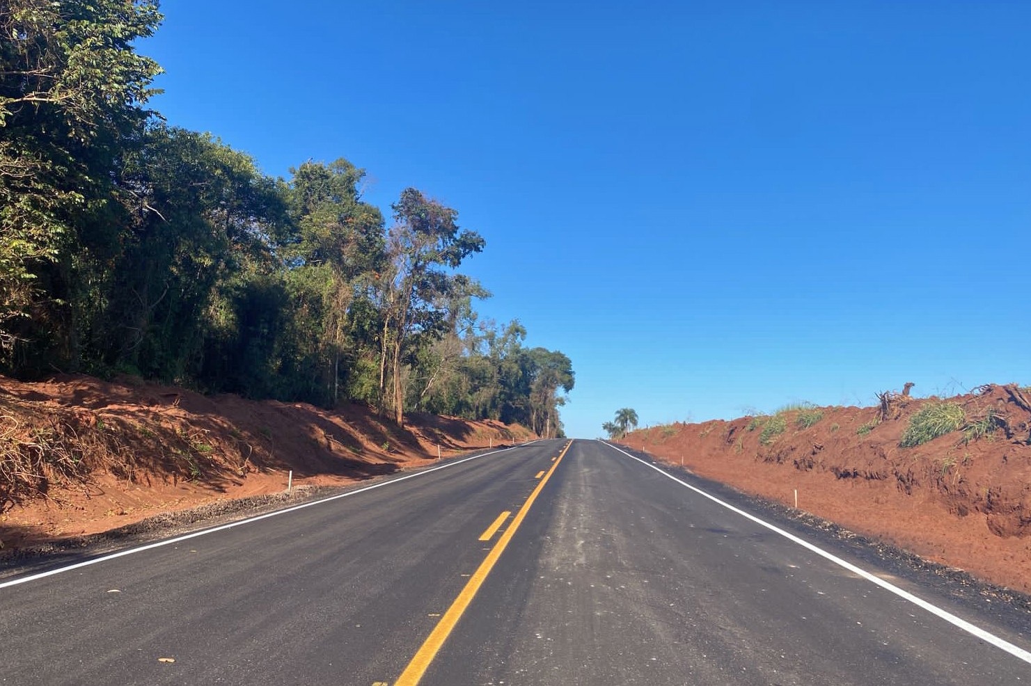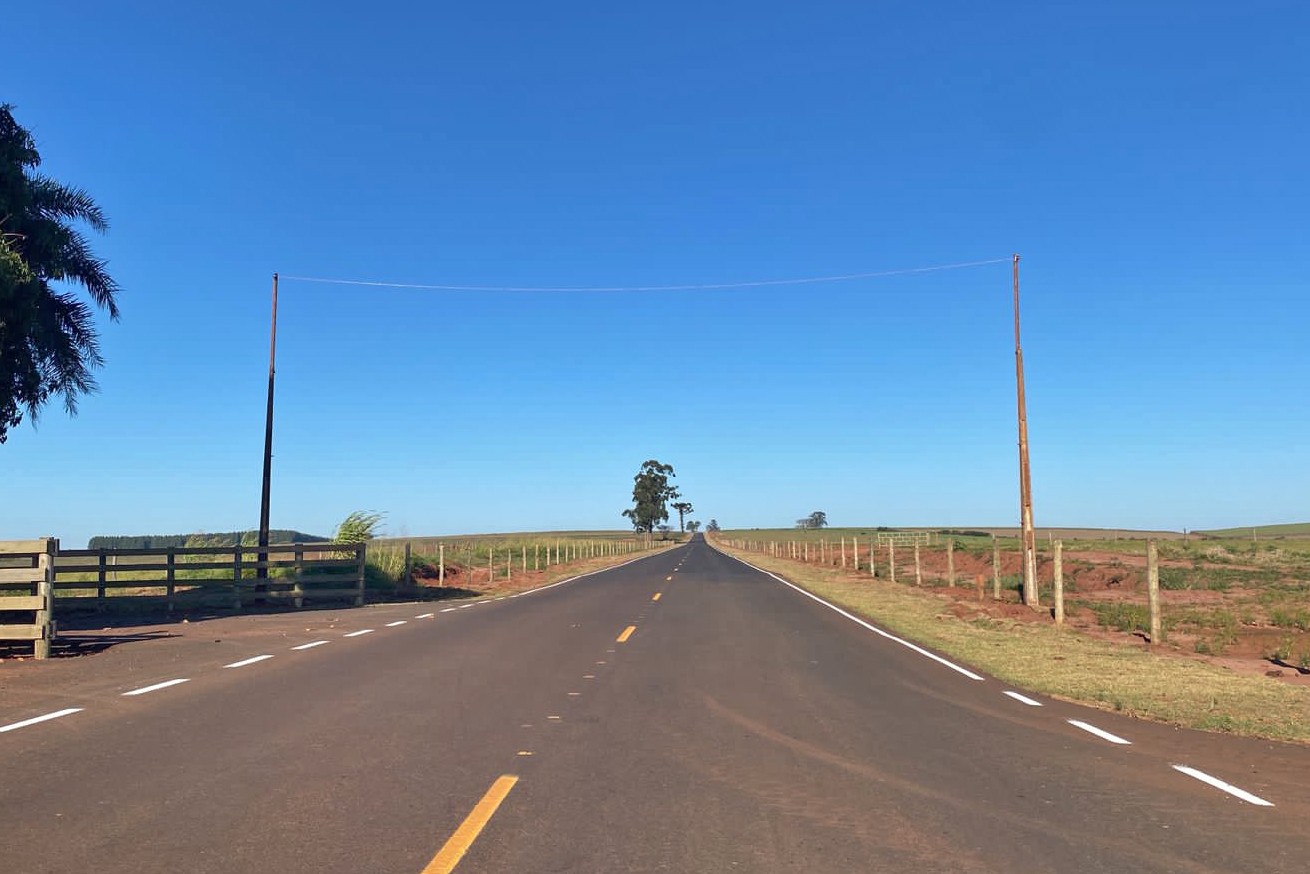 Importante via de ligação entre o distrito de São Lourenço e a Boiadeira, a Estrada Imbarié está pavimentada em toda sua extensão. O trecho final a receber o asfalto, com pouco mais de 5 km, entre a Estrada Timboré e a BR-487, foi liberado para o trânsito na última sexta-feira (7). O investimento é de aproximadamente R$ 7 milhões, com recursos municipais.