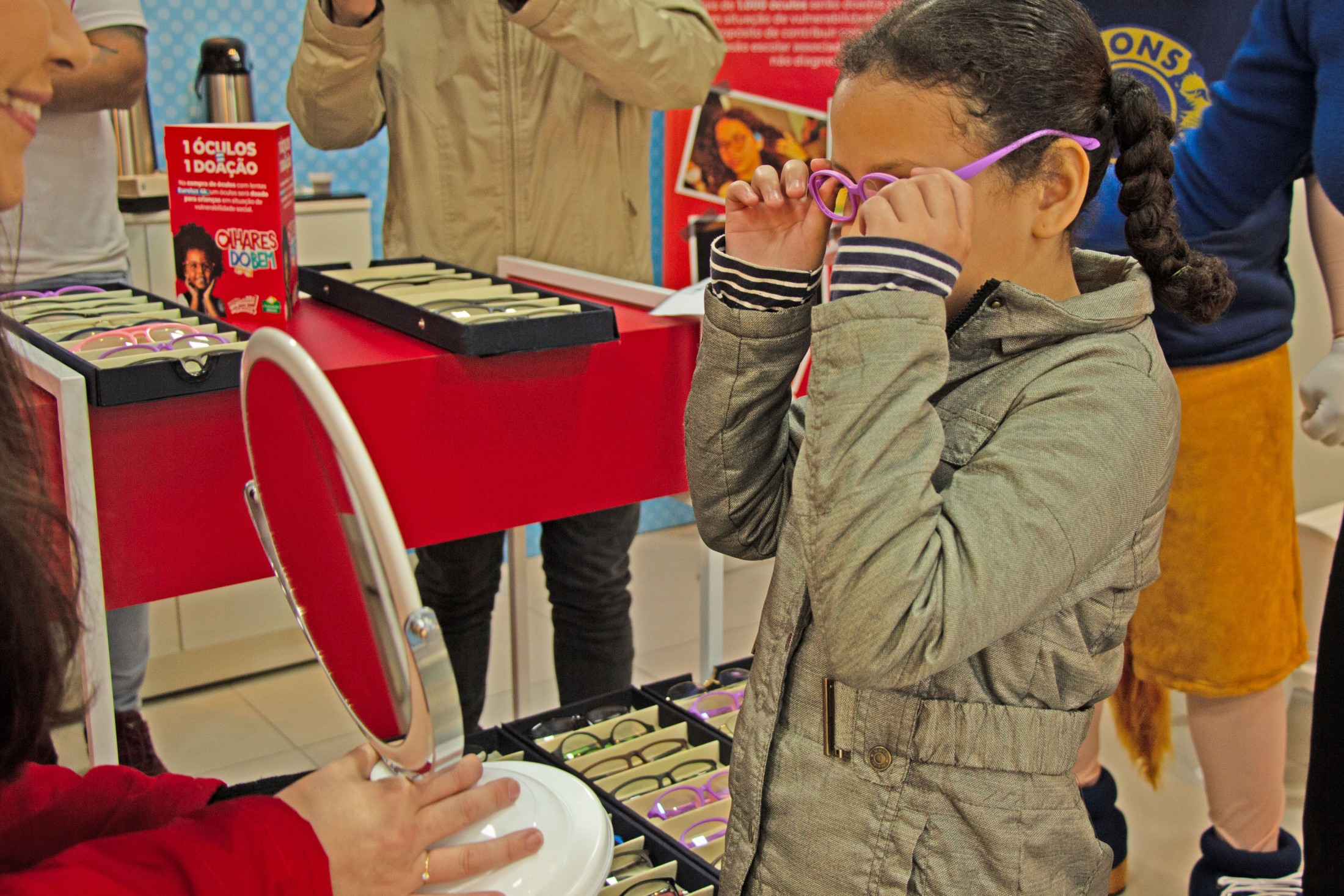 “Estou muito feliz por minha filha ser uma das beneficiadas. Ela vinha sofrendo desde o início do ano de dor de cabeça e coceira e vermelhidão nos olhos. Porém, não tínhamos condições de pagar uma consulta, nem os óculos. Agora ela poderá voltar a frequentar as aulas de informática”, comemorou a mãe de Sophia, Andressa Andreia Moreira. “É muito gratificante participar do Saúde Visual e saber que estamos contribuindo para a educação dessas crianças”, completou o presidente imediato do Lions Clube Cianorte, Josafat Carlos, citando o “Visão para Crianças”, programa de saúde oftalmológica do clube.