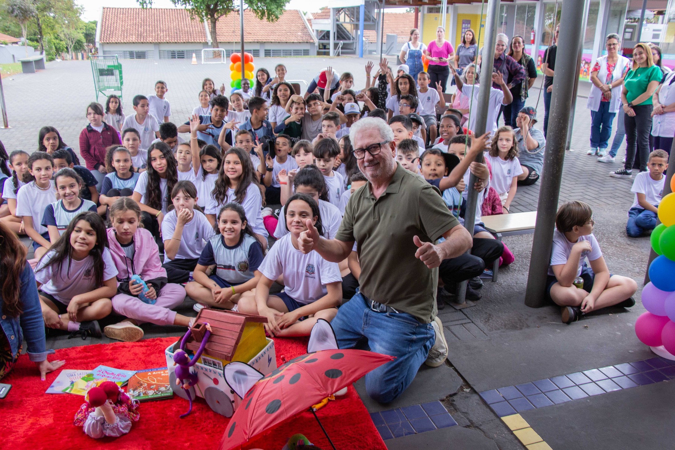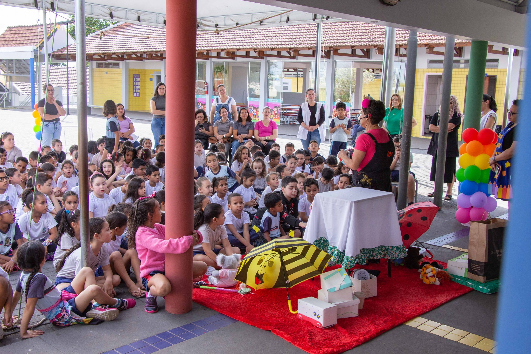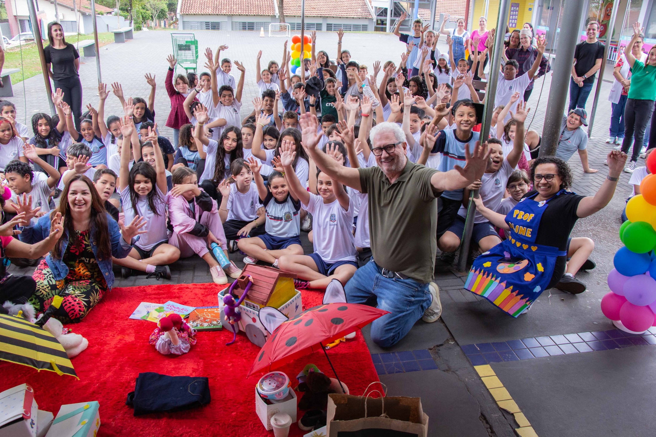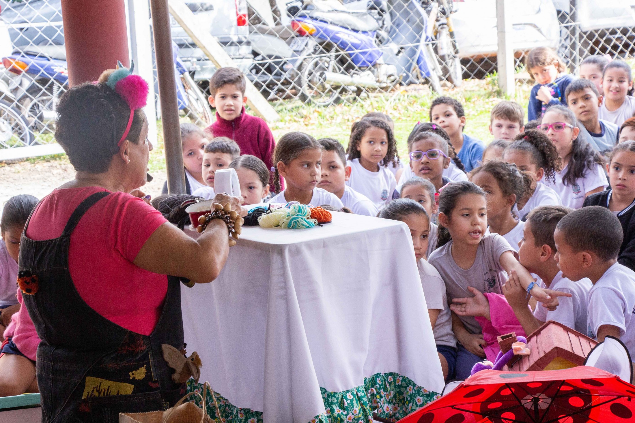 CONTAÇÃO DE HISTÓRIAS - Os estudantes da Escola Municipal Jardim Aeroporto também puderam prestigiar a contação de histórias que encerra a 6ª Festa Literária de Cianorte (FLICIA).Com apresentações às 9h e às 15h, artistas locais estão visitando as escolas municipais, levando narrativas com o objetivo principal de exercitar a fantasia e a imaginação. O cronograma segue até sexta-feira (28). “A criança que escuta histórias tem grande probabilidade de adquirir o hábito da leitura. Nosso objetivo é estimular nas crianças esse desejo de conhecer outros mundos através dos livros, pois sabemos que este é o caminho para transformá-los em cidadãos mais conscientes no futuro”, explicou o secretário municipal de Cultura, Evandro de Castro.