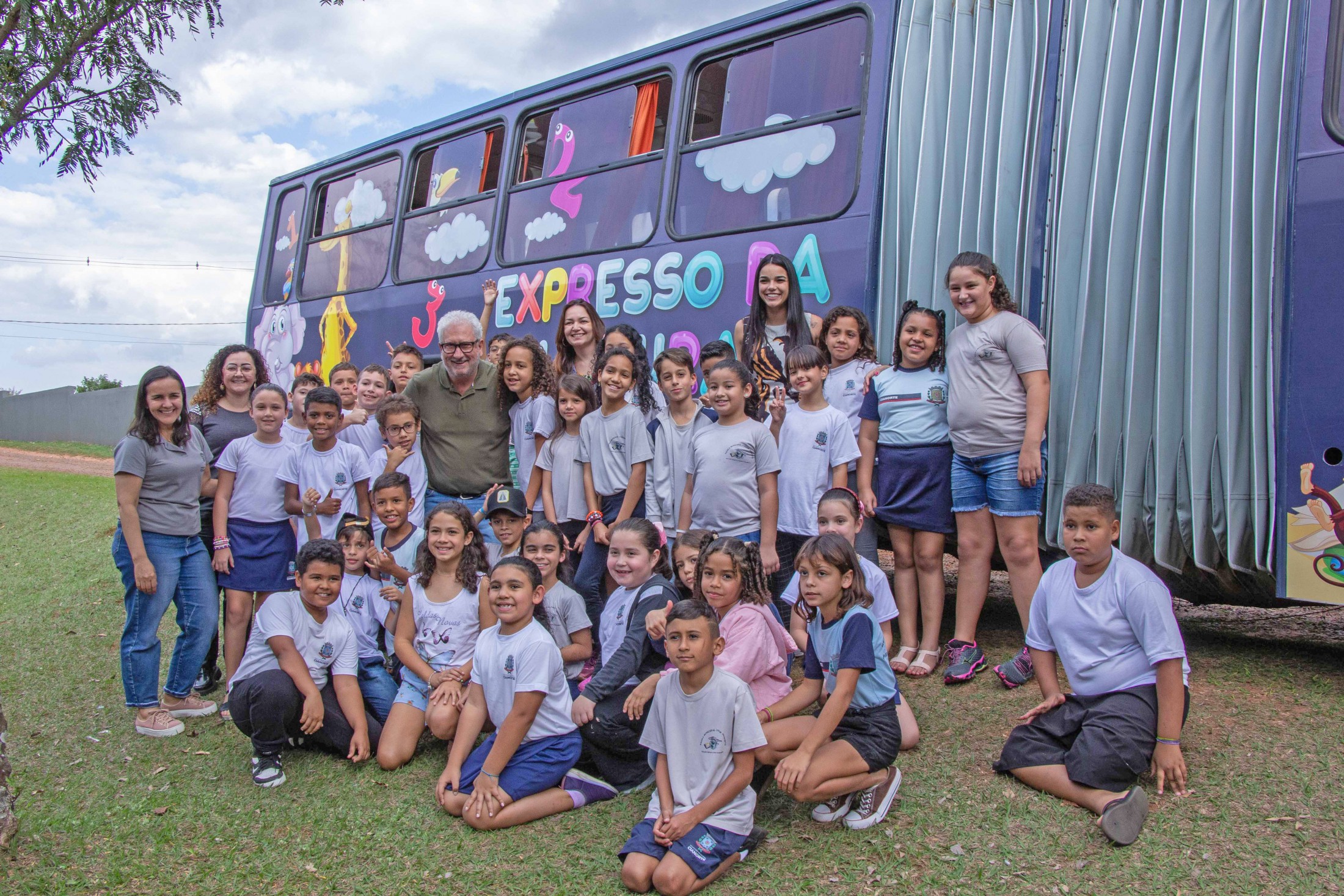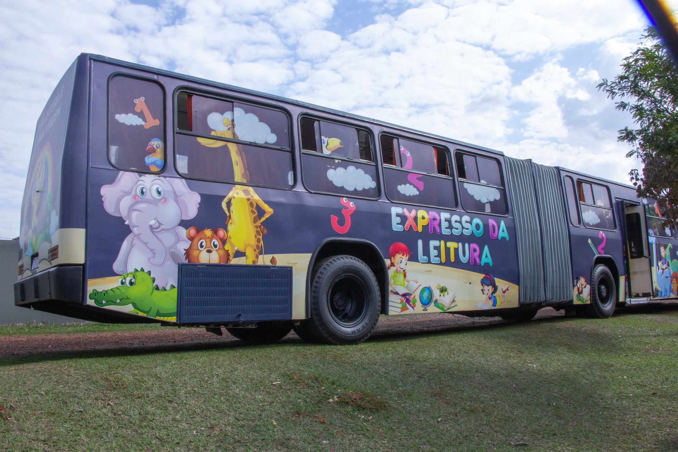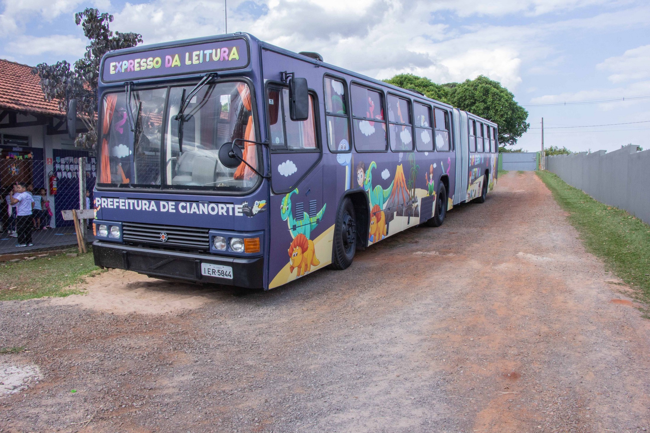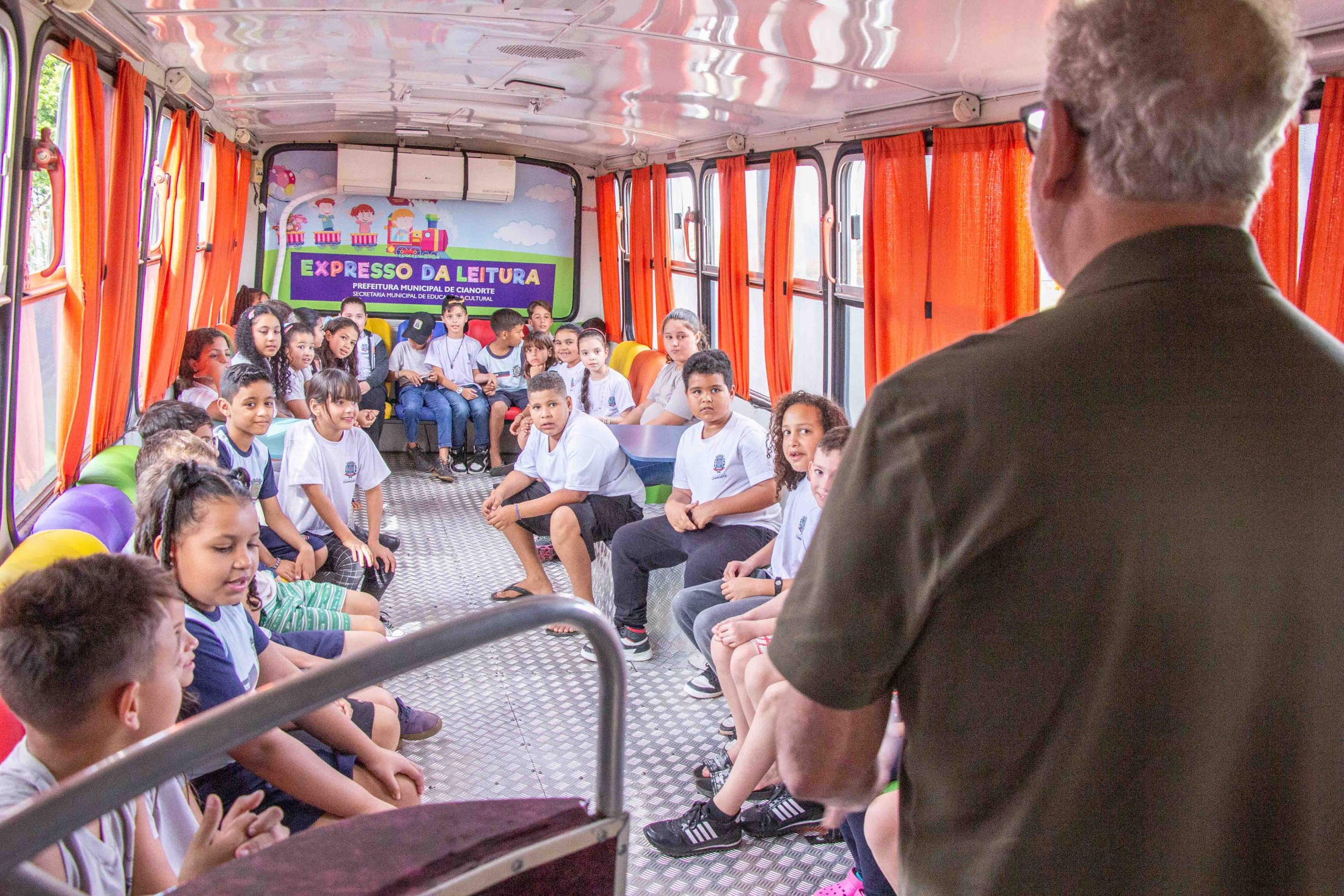 A tarde da última segunda-feira (24) foi marcante para os alunos da Escola Municipal Jardim Aeroporto, em Cianorte. Isto porque, eles foram os primeiros a conferir a nova identidade visual do Expresso da Leitura, ônibus articulado que funciona como uma biblioteca itinerante e disponibiliza centenas de obras literárias adequadas para suas faixas etárias. O veículo, que é de responsabilidade da Secretaria Municipal de Educação, recebeu um investimento aproximado de R$ 35 mil, com novo envelopamento e outras melhorias internas.