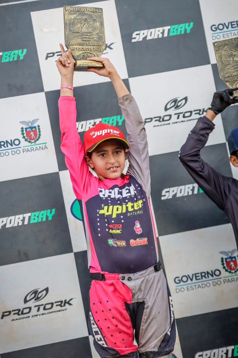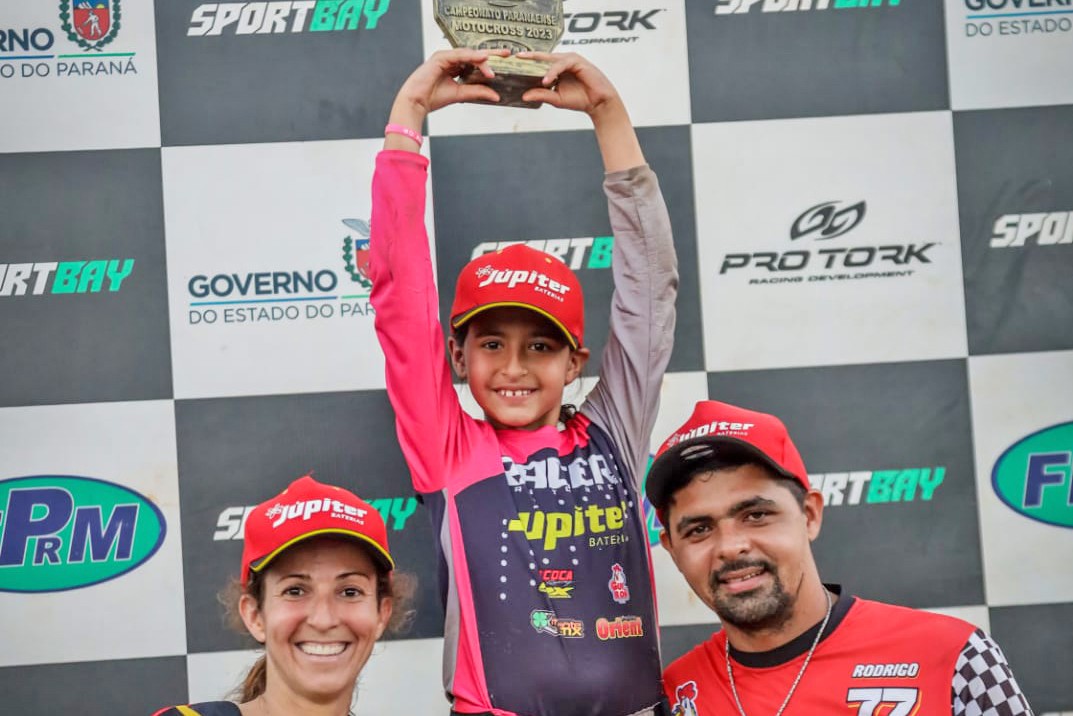 Com oito anos de idade, Ana Heloísa Tropaldi Hildebrand é sinônimo de velocidade sobre rodas. A pequena pilota, que faz parte da #familia77, ao lado dos pais, Rodrigo Hildebrand e Elisângela Cristina Tropaldi, já coleciona títulos. A mais nova conquista foi no último final de semana (22 e 23), ao participar da 5ª etapa do Campeonato Paranaense de Motocross, em Pontal do Paraná, no qual alcançou o 1º lugar na categoria minimotos.
