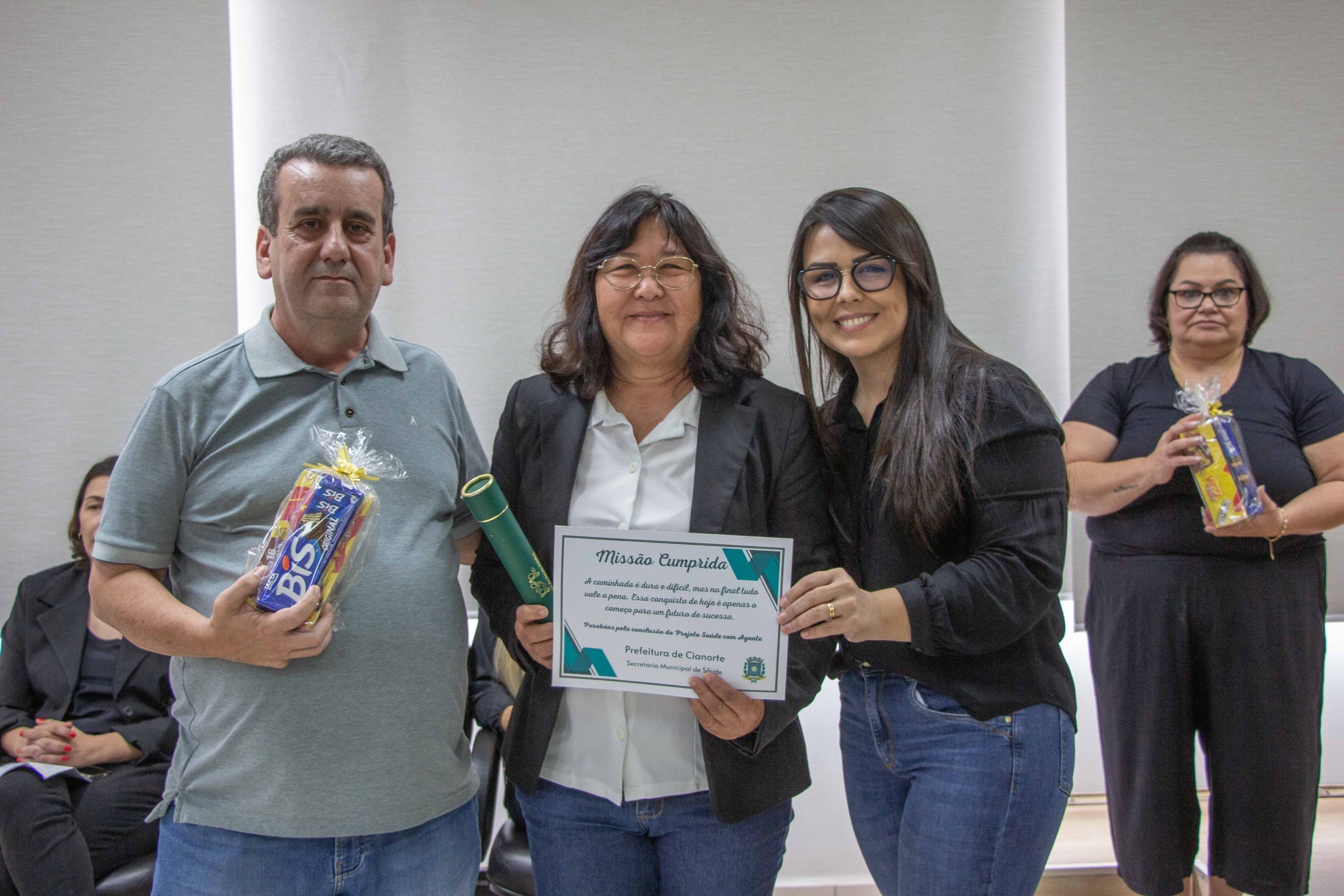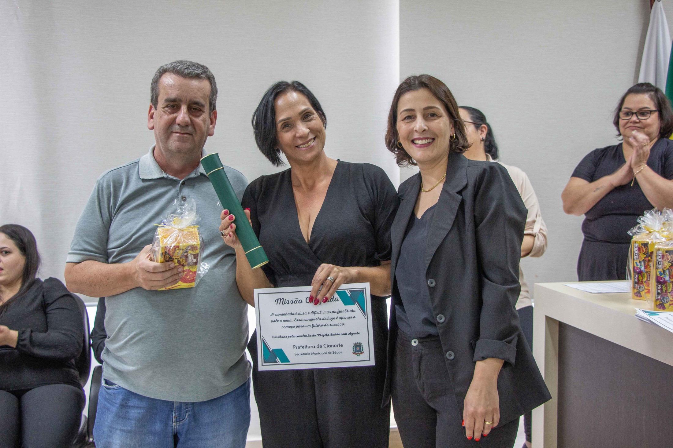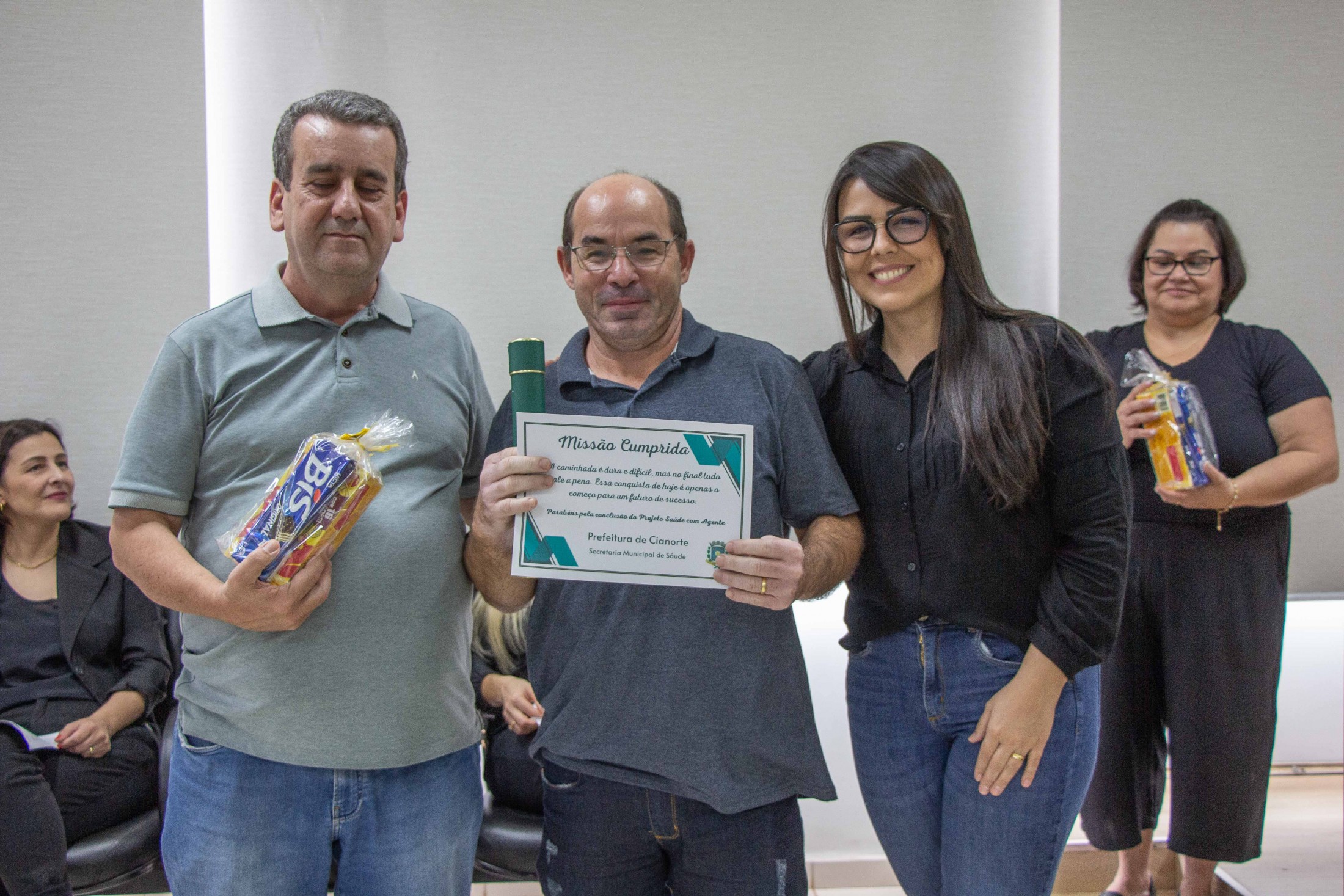 “Nossa gratidão àqueles que se propuseram a estudar, ampliar seus conhecimentos e aperfeiçoar o trabalho desenvolvido junto à população. Estamos certos de que o empenho de todos refletirá na melhora dos indicadores de saúde, na qualidade e na resolutividade dos serviços da Atenção Primária aos cianortenses”, afirmou o secretário da pasta, Neilson Etanio de Sousa. “Vocês são responsáveis pelo contato direto com os munícipes, conhecendo suas reais necessidades, orientando e encaminhando cada caso. Desejamos que o curso tenha sido uma oportunidade para aprimorar o olhar sobre as informações coletadas nas residências e que reconheçam seu importante papel na prevenção em Saúde e no cuidado das pessoas”, afirmou o diretor da 13ª Regional de Saúde, Carlos Destéfano.