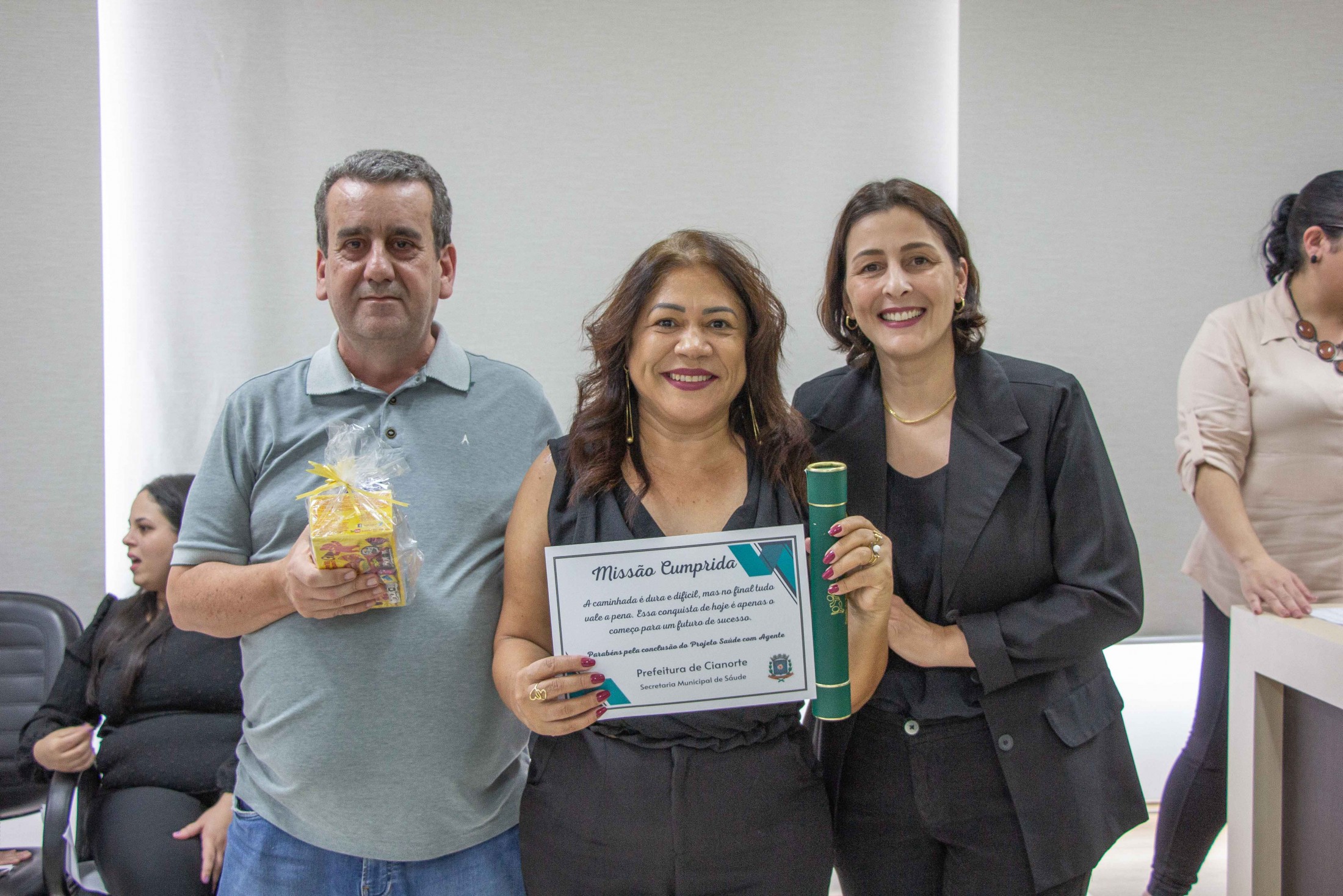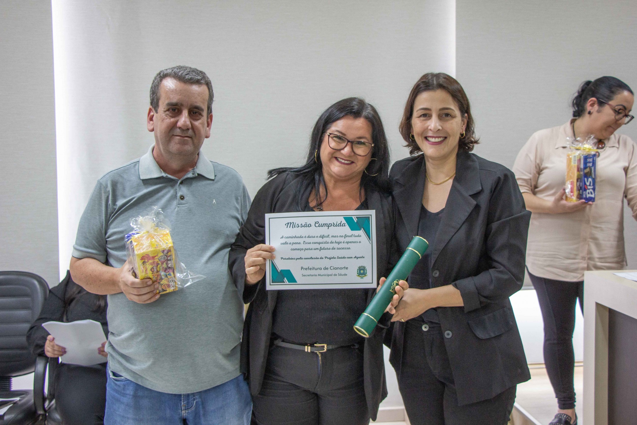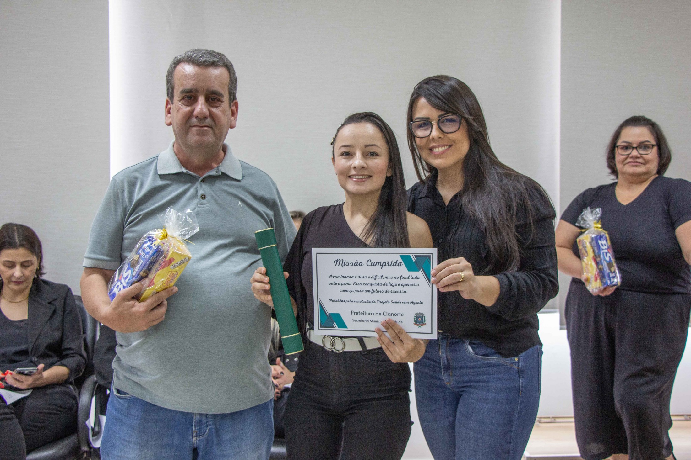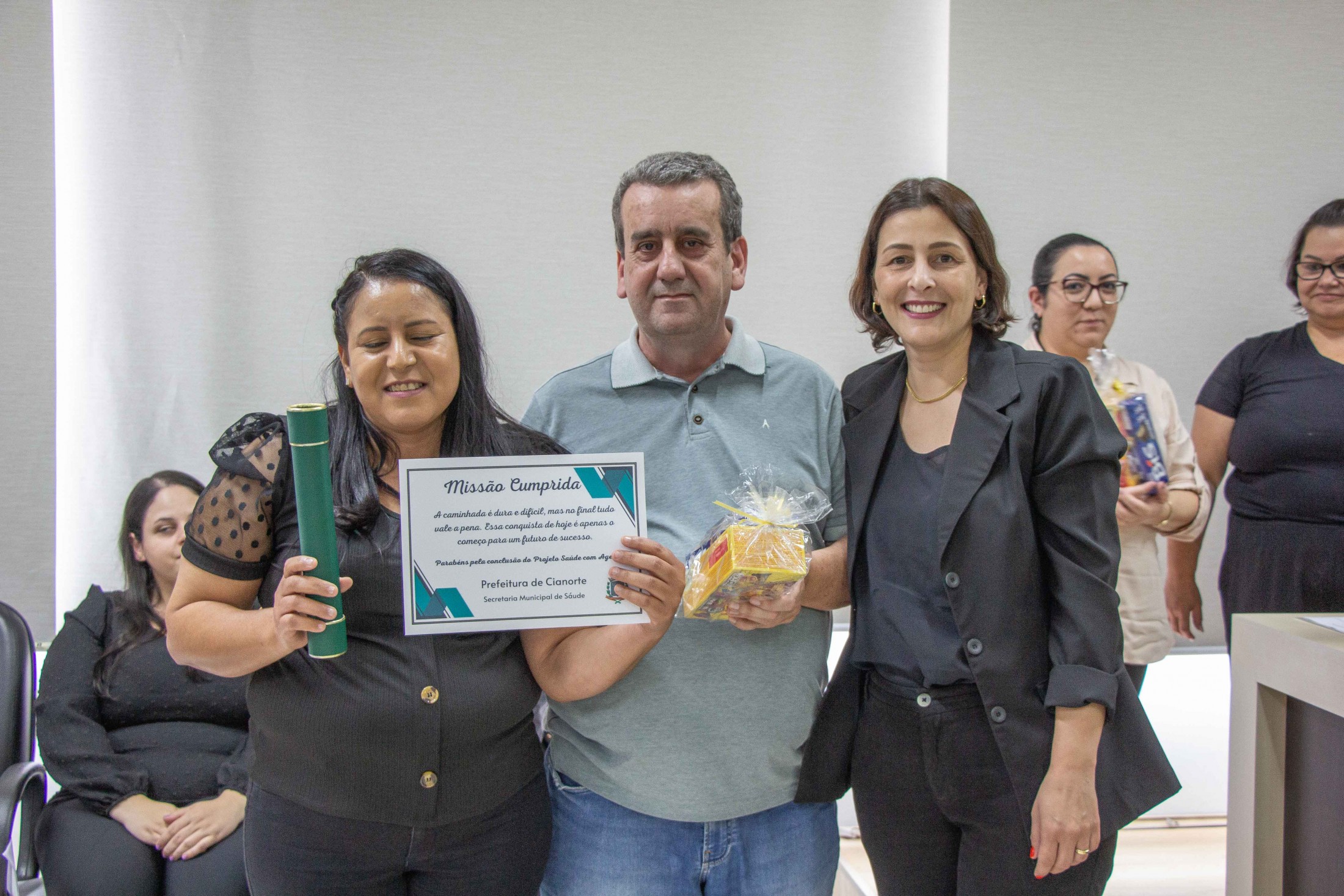 “Nossa gratidão àqueles que se propuseram a estudar, ampliar seus conhecimentos e aperfeiçoar o trabalho desenvolvido junto à população. Estamos certos de que o empenho de todos refletirá na melhora dos indicadores de saúde, na qualidade e na resolutividade dos serviços da Atenção Primária aos cianortenses”, afirmou o secretário da pasta, Neilson Etanio de Sousa. “Vocês são responsáveis pelo contato direto com os munícipes, conhecendo suas reais necessidades, orientando e encaminhando cada caso. Desejamos que o curso tenha sido uma oportunidade para aprimorar o olhar sobre as informações coletadas nas residências e que reconheçam seu importante papel na prevenção em Saúde e no cuidado das pessoas”, afirmou o diretor da 13ª Regional de Saúde, Carlos Destéfano.