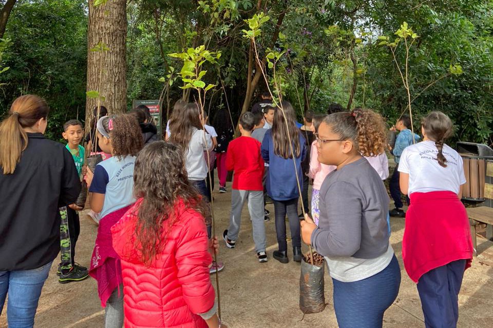 Os alunos do 4º ano A da Escola Municipal Paula Dreer Nogueira tiveram uma aula diferente na manhã desta terça-feira (15). Acompanhados pela professora, Maria Furlan, estiveram no Ecomuseu do Cinturão Verde, onde conheceram a estrutura e participaram de uma palestra, com o tema de preservação das matas ciliares, ministrada pelos chefes de divisão, Leandro Conti (Meio Ambiente) e Michel Thomaz (Educação Ambiental). A programação também contou com visita à Trilha do Arboreto e o plantio de 30 mudas de árvores nativas nas proximidades do Rio São Tomé.