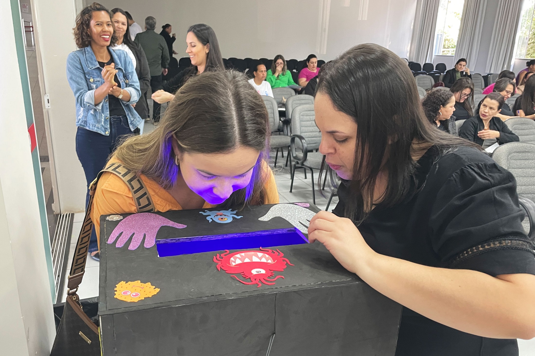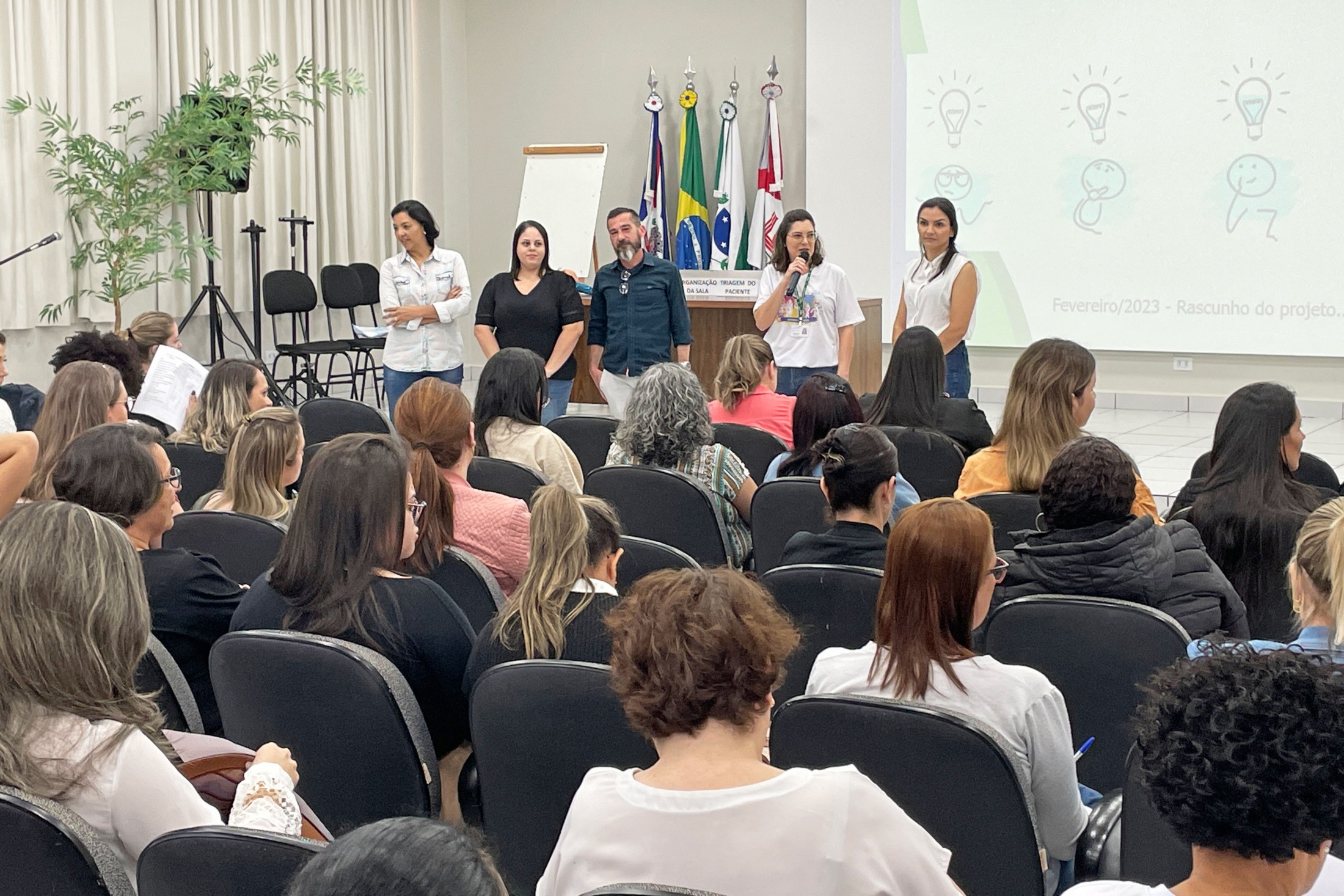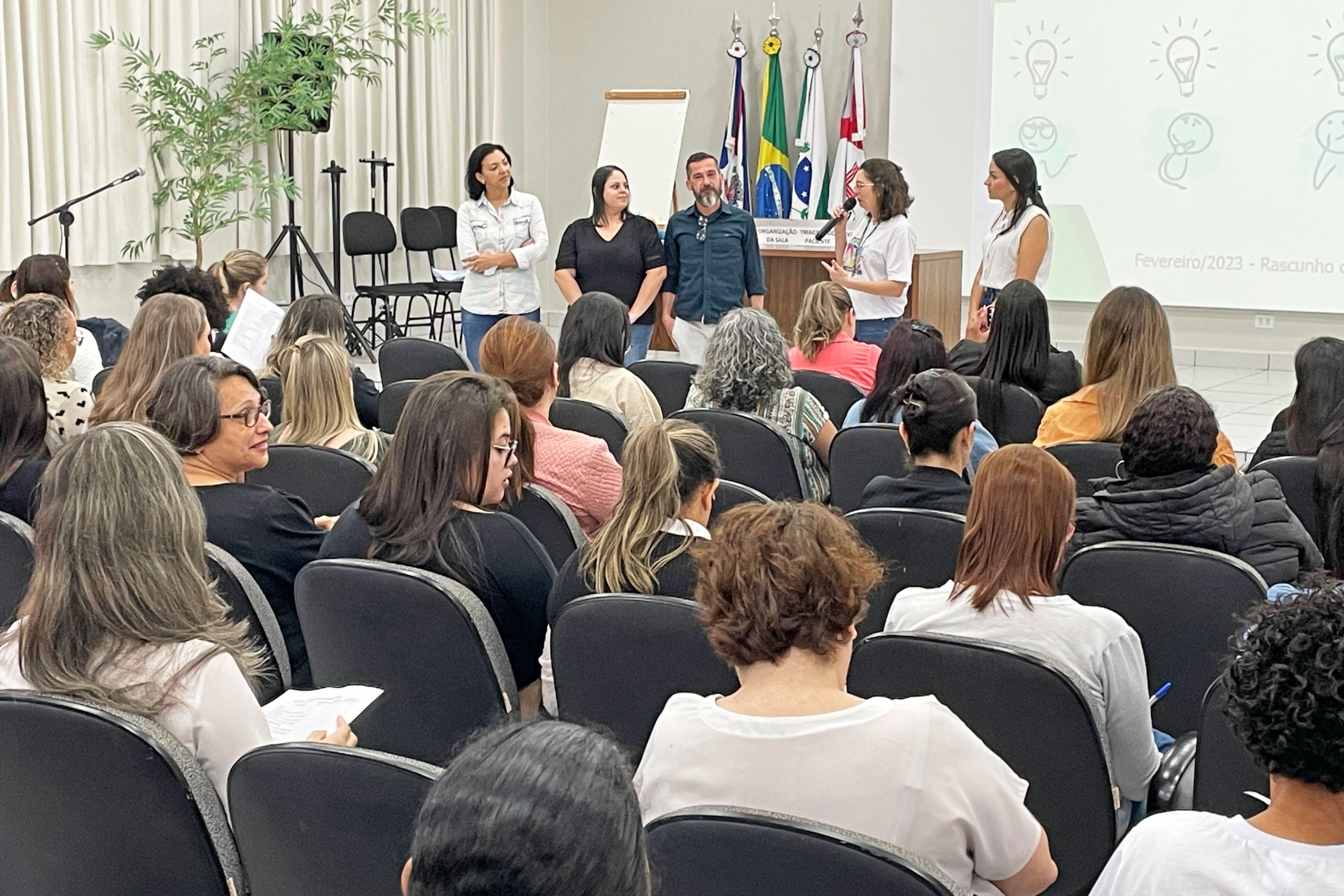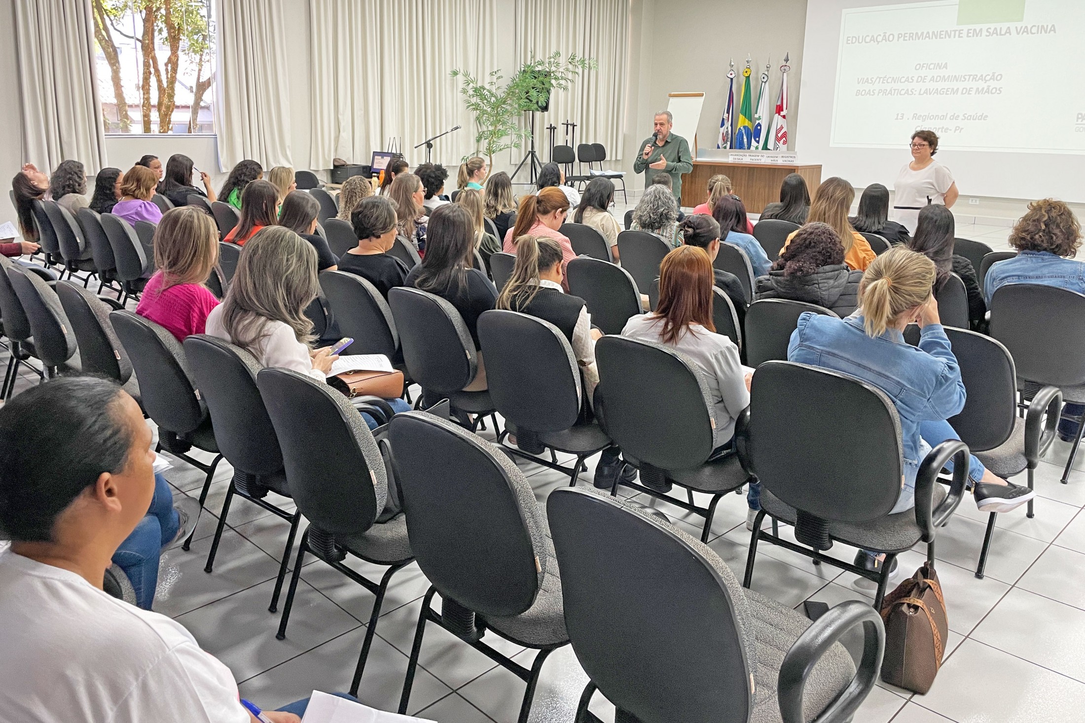Os profissionais que atuam nas salas de vacinas nos 11 municípios pertencentes à 13ª Regional de Saúde estiveram reunidos, nesta quinta-feira (17), no auditório da Unipar, na “Educação Permanente para Sala de Vacina e Rede de Frio”. Com o tema “Vias/Técnicas de Administração - Boas práticas de lavagem de mãos”, o encontro foi conduzido pelos profissionais de Cianorte, Tânia Mara de Almeida, Dalila Pereira da Silva, Sabrina Vasconcelos Mendes e Bazani Albanezi.