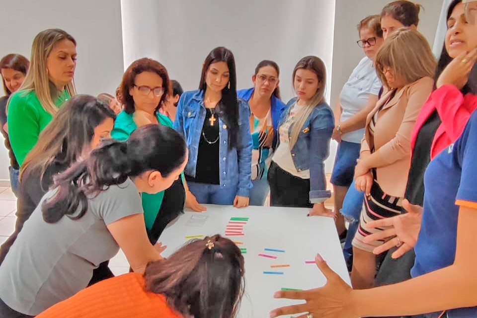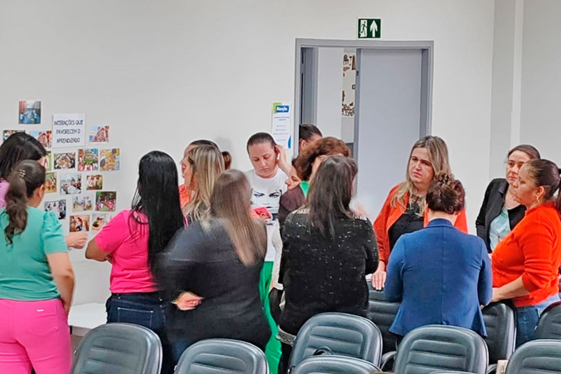 Assim, a formadora, Liliane Padilha, trabalhou com os docentes o tema “Interações e brincadeiras na educação infantil - o papel do professor como referência brincante para as crianças”. Já a formadora, Márcia Ribeiro, tratou com a equipe gestora das instituições o tema “Acolhimento e escuta sensível como cultura escolar - o papel da equipe gestora nesse processo”. Cerca de 200 pessoas, divididas em grupos, participaram das ocasiões.