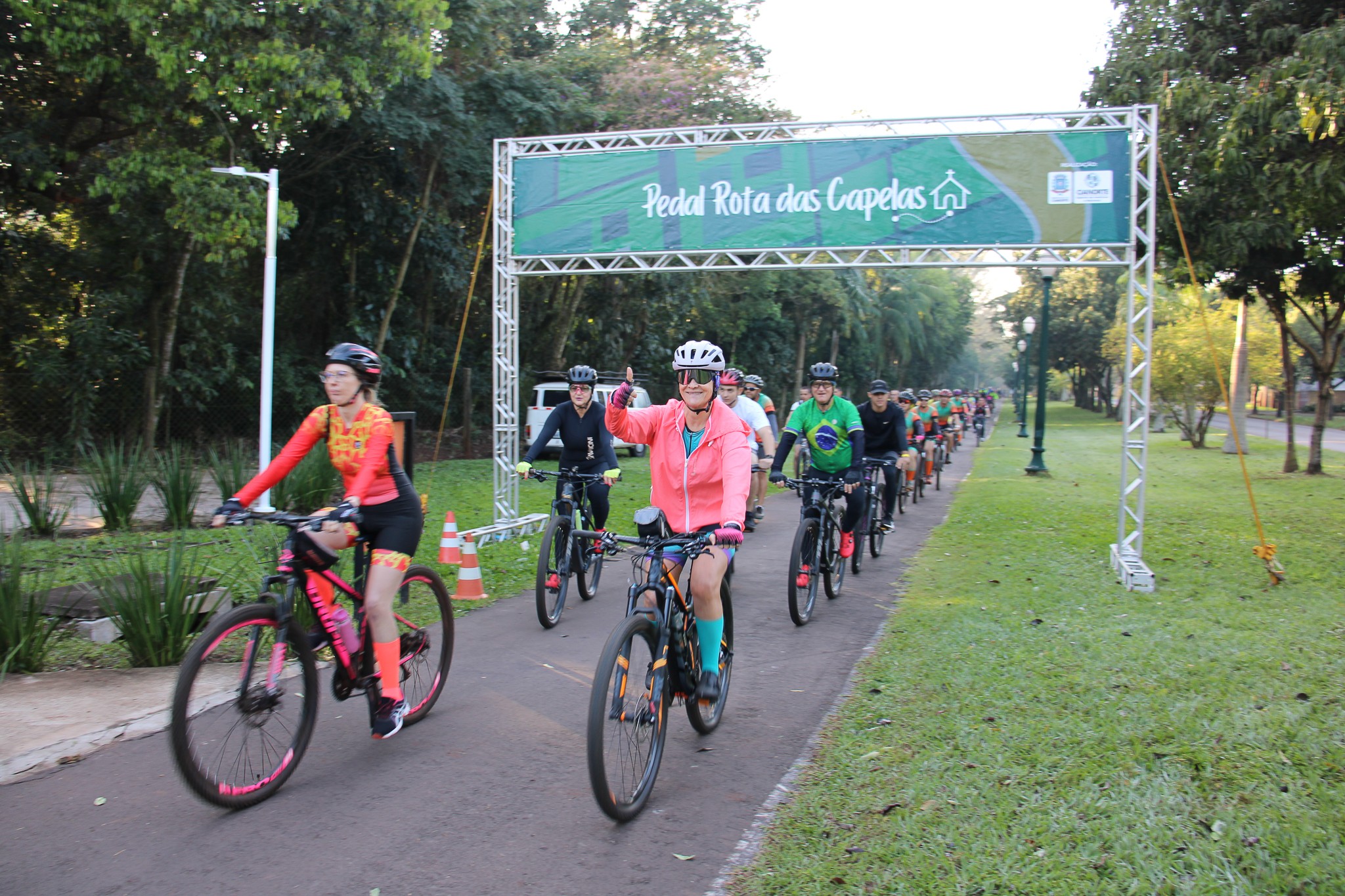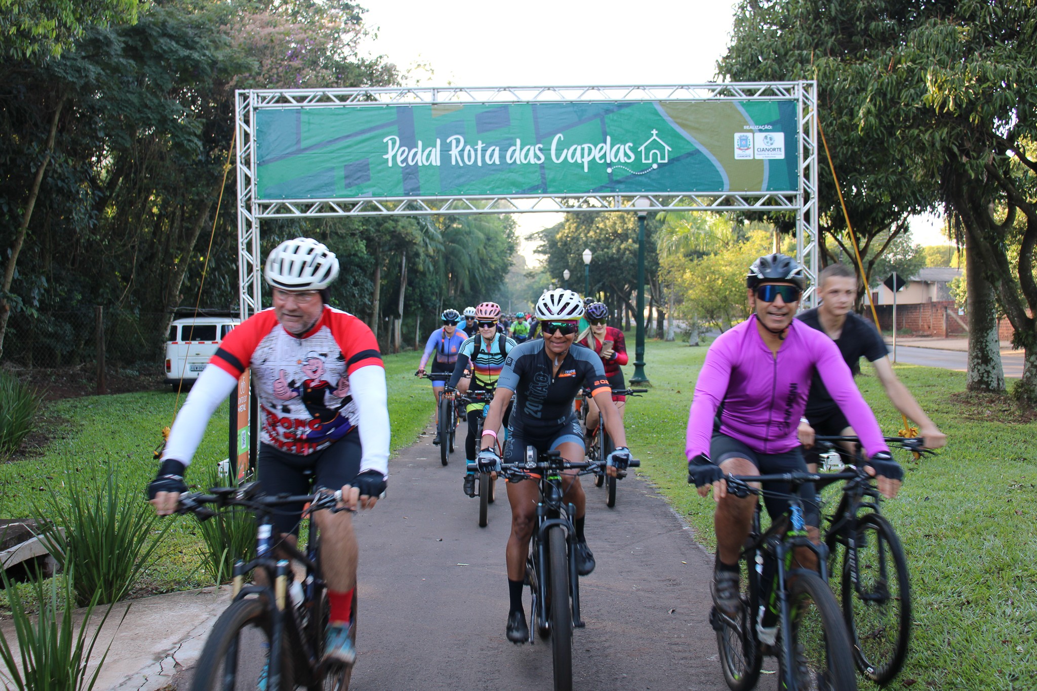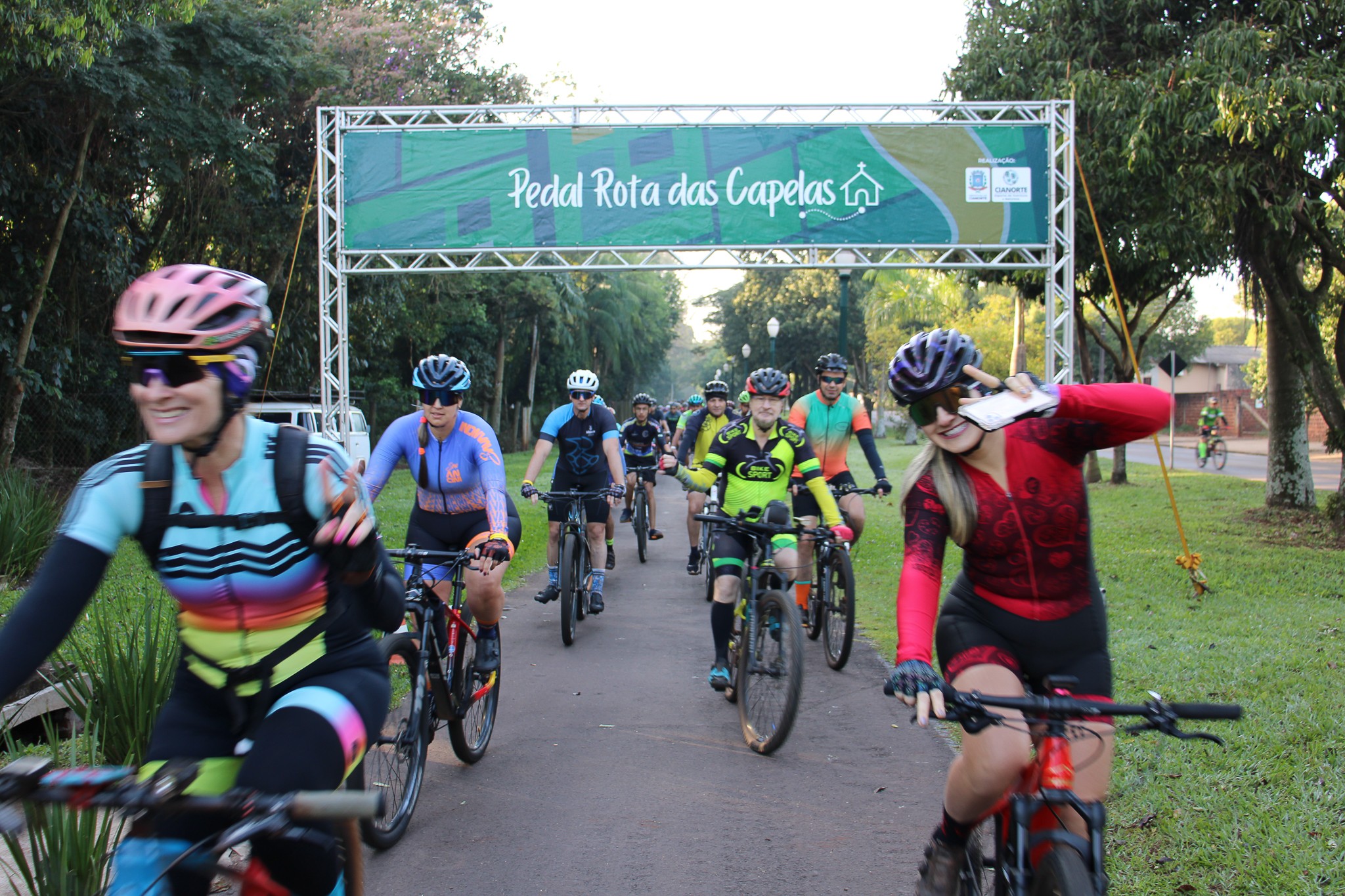 Com um formato inovador, o 5º Pedal Rota das Capelas movimentou o cenário de esporte e aventura na manhã do último domingo (20). Dois diferenciais foram destaque nessa edição: a concentração, realizada no Centro Poliesportivo Carlos Yoshito Mori, que contou com café da manhã gratuito, proporcionando a confraternização entre os participantes; e o retorno, que foi marcado pelo plantio de 600 mudas de ipês pela extensão da ciclovia entre Cianorte e Vidigal.