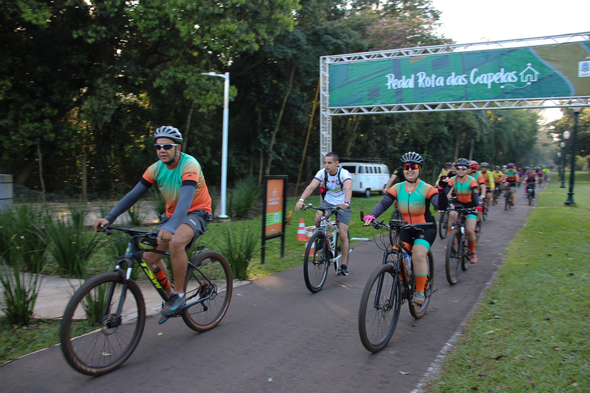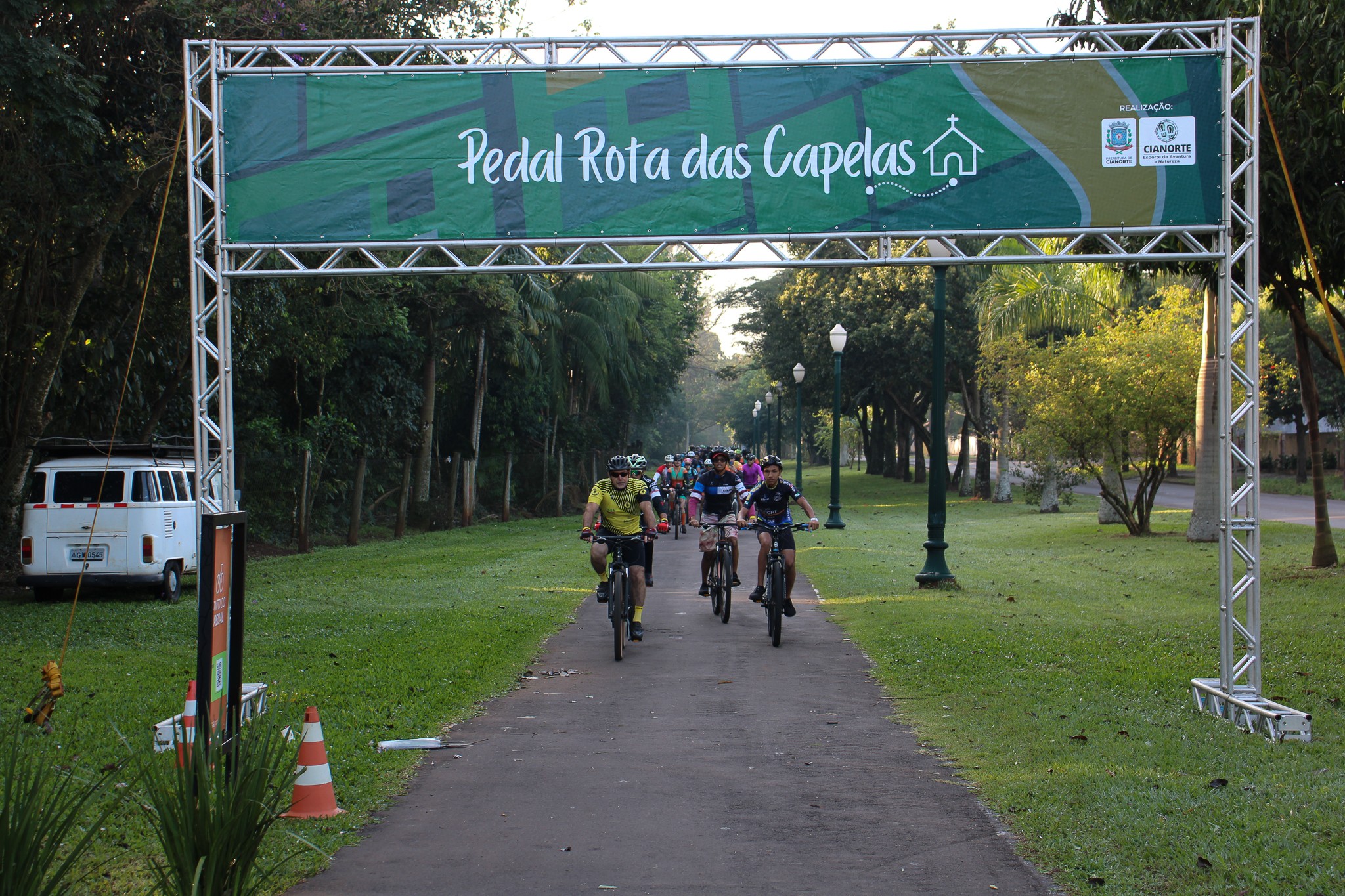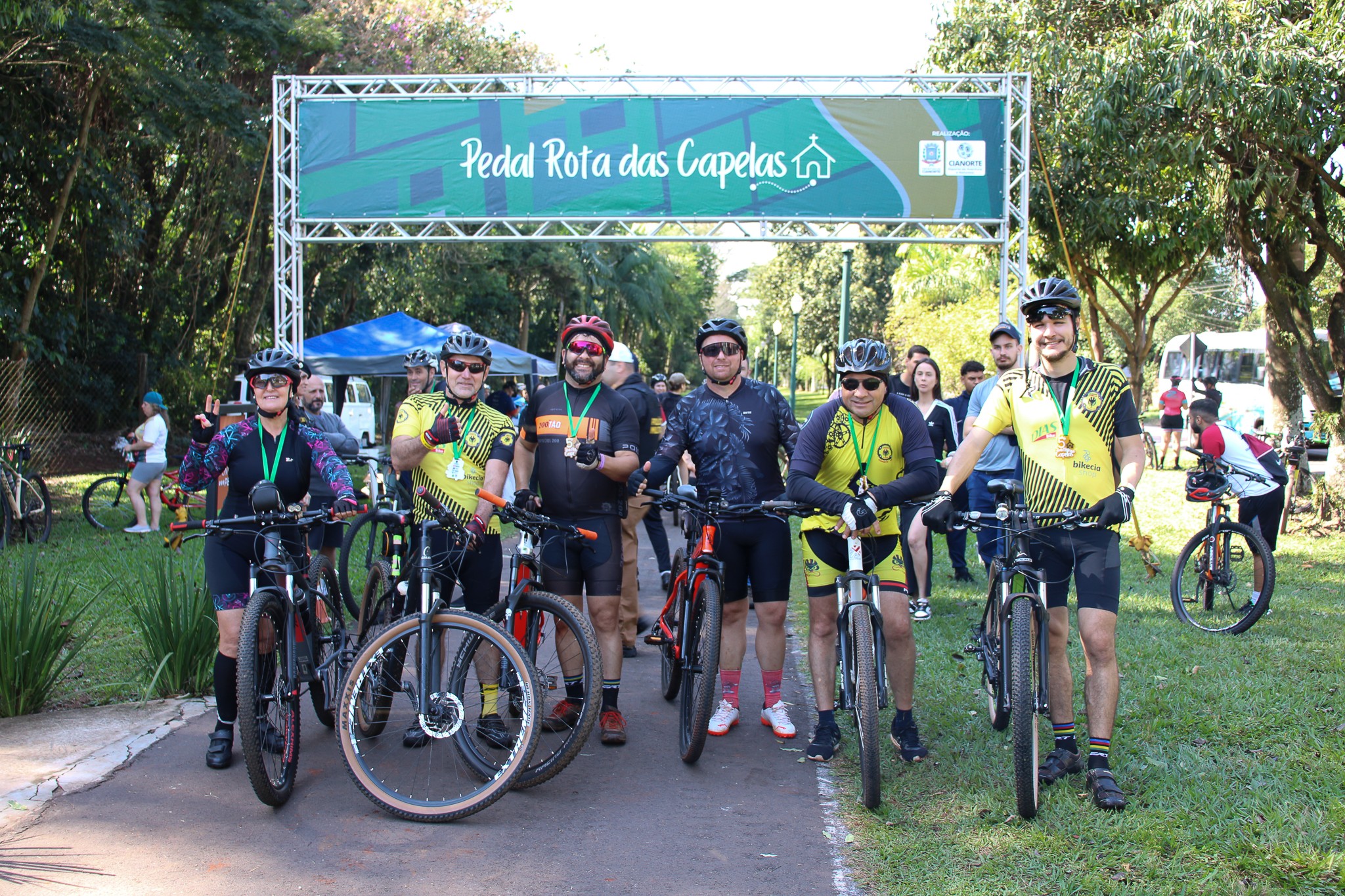 Com um formato inovador, o 5º Pedal Rota das Capelas movimentou o cenário de esporte e aventura na manhã do último domingo (20). Dois diferenciais foram destaque nessa edição: a concentração, realizada no Centro Poliesportivo Carlos Yoshito Mori, que contou com café da manhã gratuito, proporcionando a confraternização entre os participantes; e o retorno, que foi marcado pelo plantio de 600 mudas de ipês pela extensão da ciclovia entre Cianorte e Vidigal.