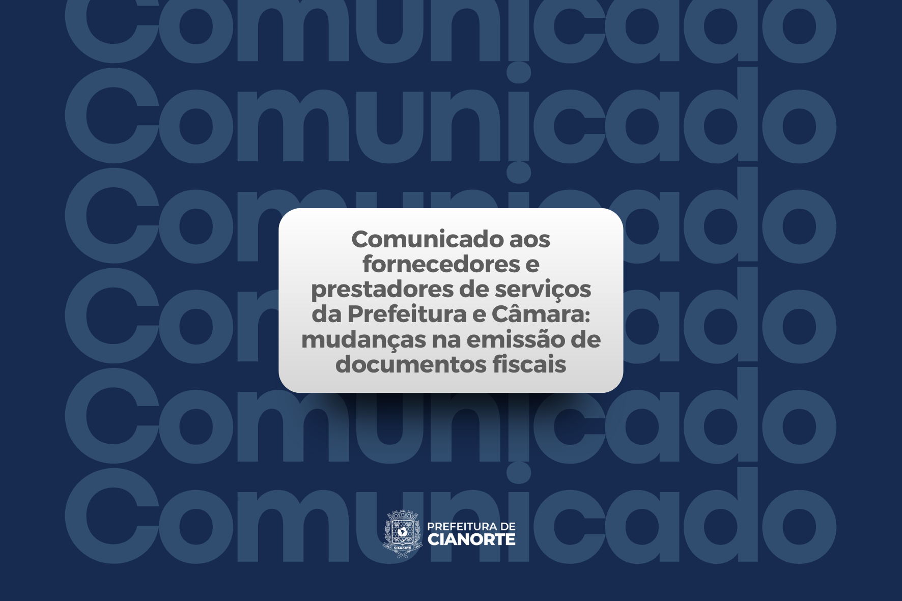 A partir do dia 10 de agosto de 2023, todos os fornecedores de bens e prestadores de serviços, tanto pessoas físicas quanto jurídicas, que contratarem com o Município de Cianorte e a Câmara Municipal de Cianorte, deverão atender às exigências do Decreto Municipal nº 144/2023 (com acesso pelo link: http://bit.ly/3OPgqcT), que dispõe sobre a retenção do Imposto de Renda (IR) sobre os valores das transações.