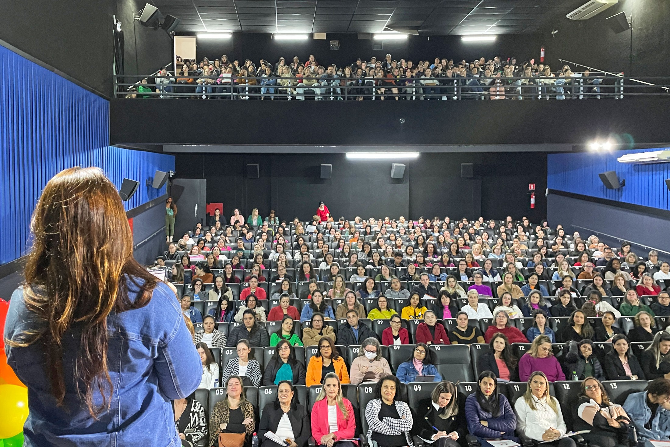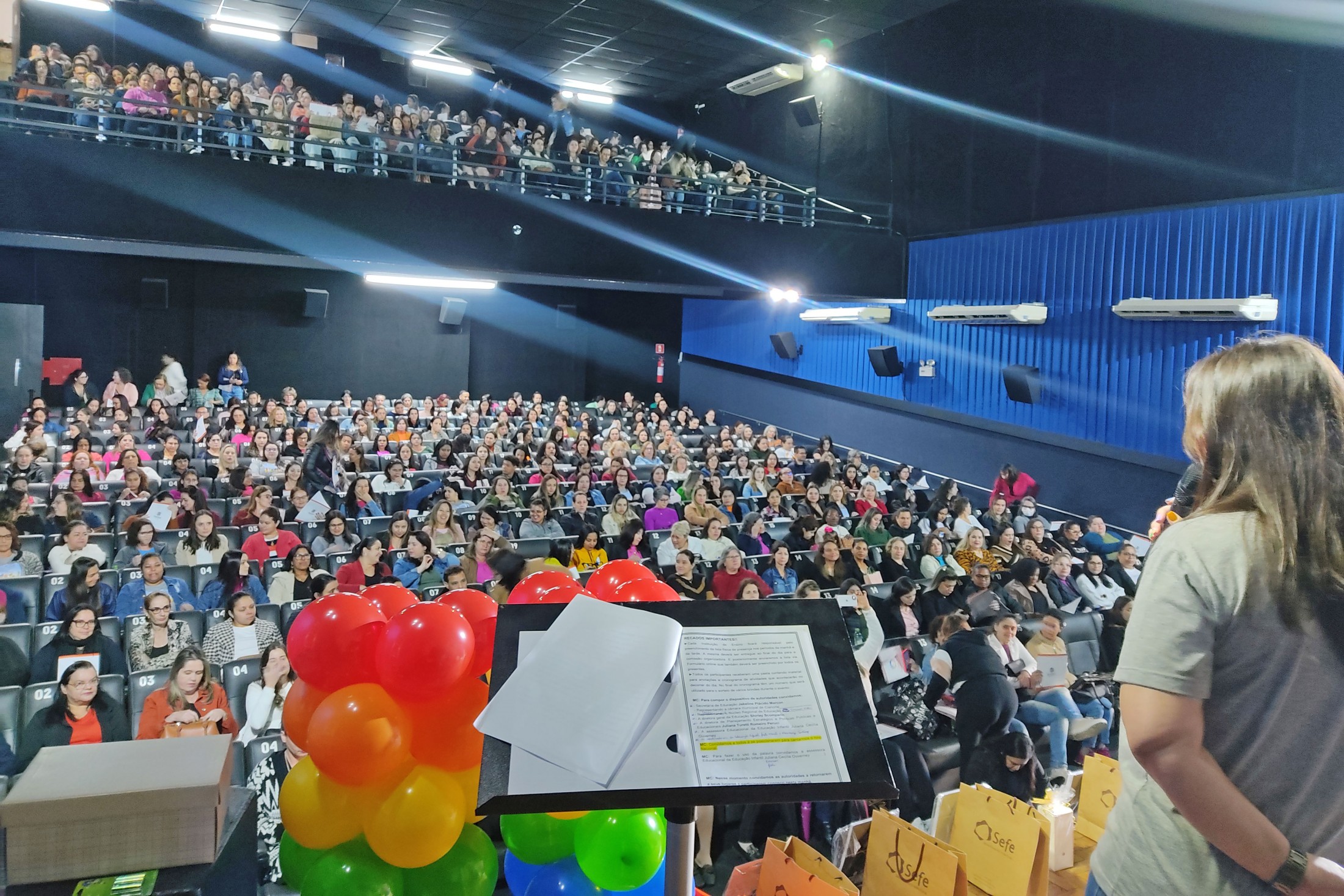 A segunda-feira (28) foi diferente para os profissionais da Rede Municipal de Ensino. Isso porque, o dia foi dedicado ao estudo e planejamento. No CineTeatro Cianorte, educadores e professores que atuam na Educação Infantil reuniram-se no VII Workshop da área, que contou com palestra e apresentação de trabalhos.