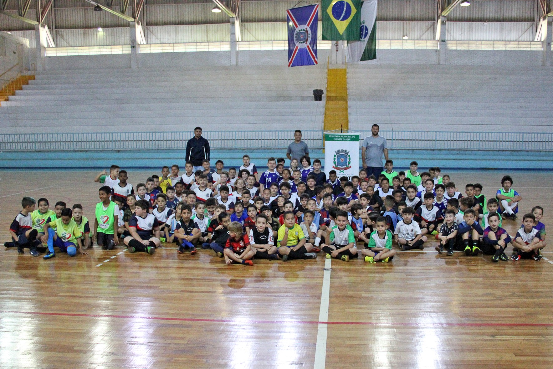 A confraternização pelo esporte tomou conta do Ginásio Tancredo Neves, no último sábado (16). Isto porque, a Prefeitura, por meio da Secretaria Municipal de Esporte e Lazer (SMEL), realizou a 3ª edição do Festival de Futsal Infantil. A ocasião, de caráter integrativo e não competitivo, reuniu os alunos das oito turmas de iniciação esportiva na modalidade, somando 160 participantes, com idade entre os seis e 13 anos.