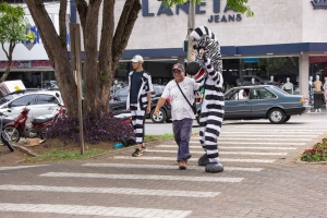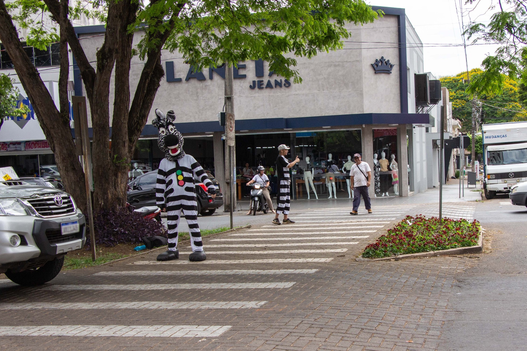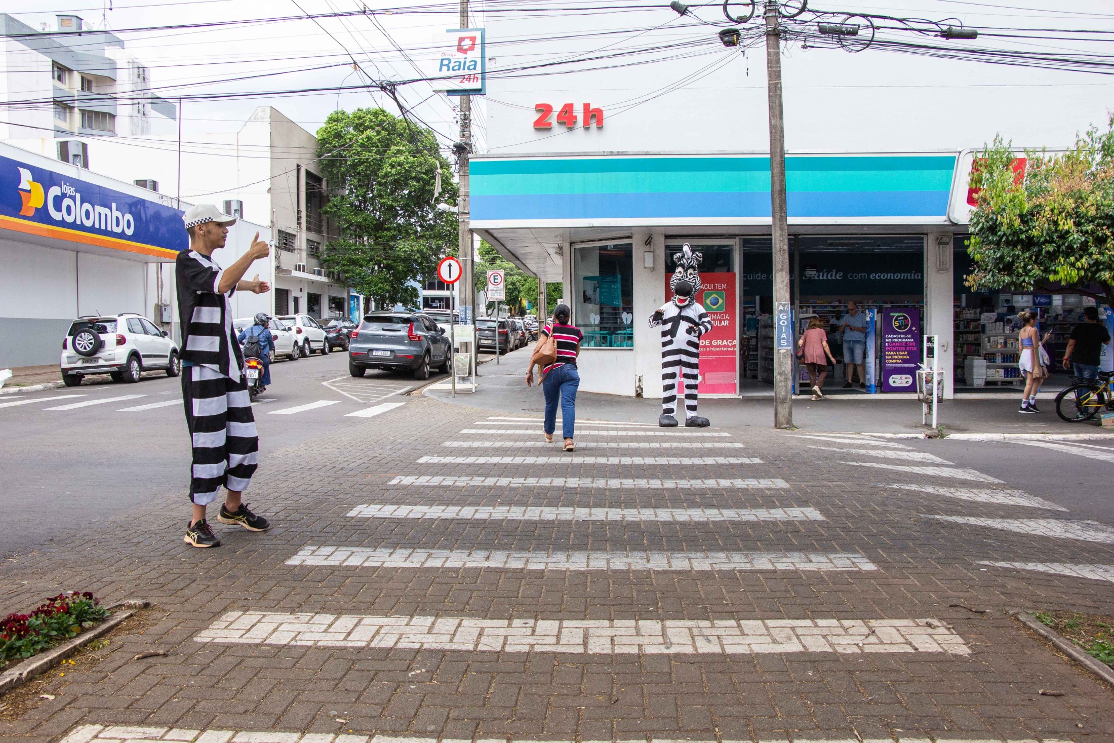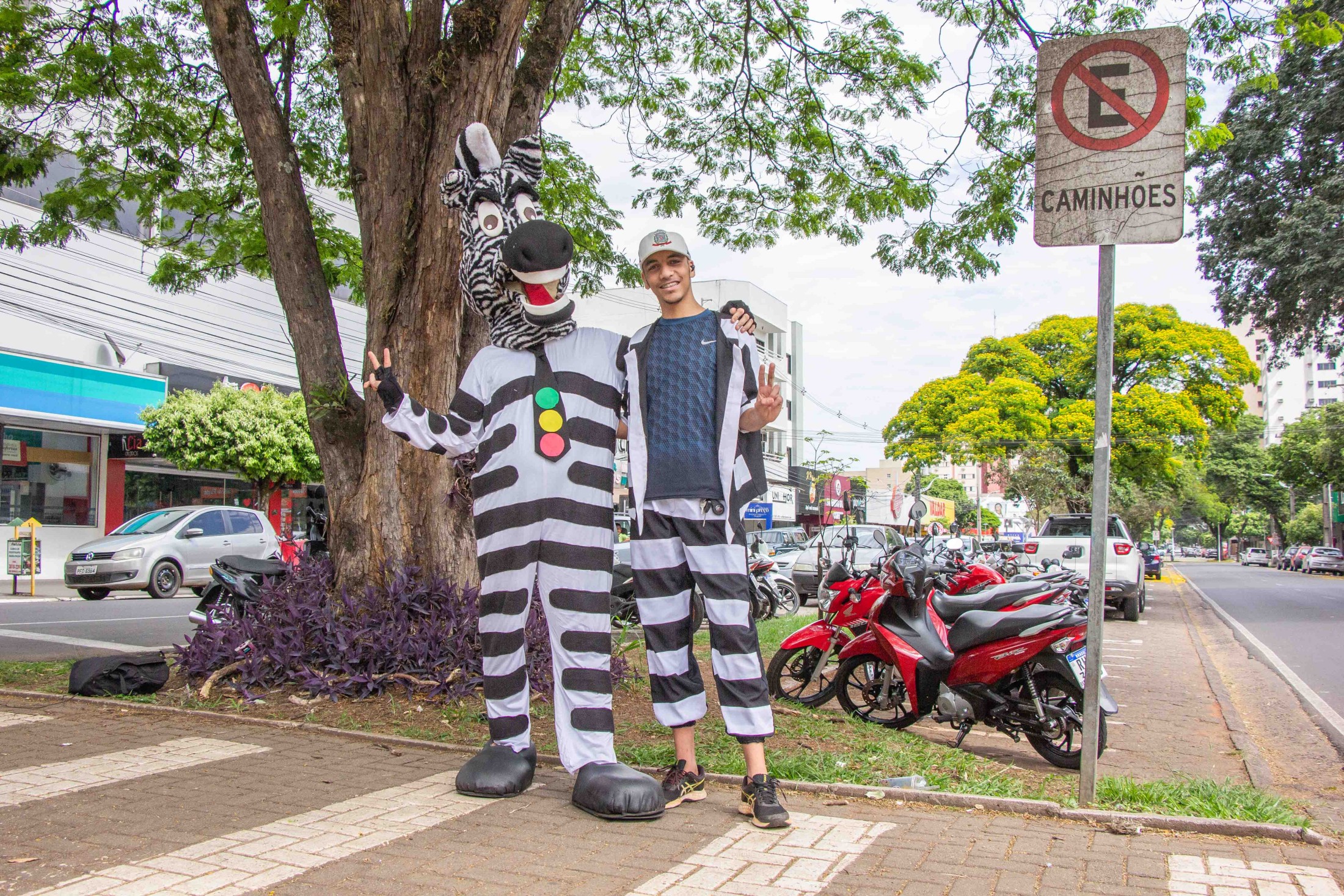 Com o slogan “No trânsito, escolha a vida!”, a Semana Nacional do Trânsito, celebrada de 18 a 25 de setembro, visa incentivar junto à sociedade um trânsito mais seguro. Em Cianorte, a Diretoria Municipal de Trânsito (Diretran) deu início à programação, nesta segunda-feira (18), com a apresentação de cenas rápidas nos semáforos e faixas de pedestres, pela Cia Deu Zebra de Teatro.