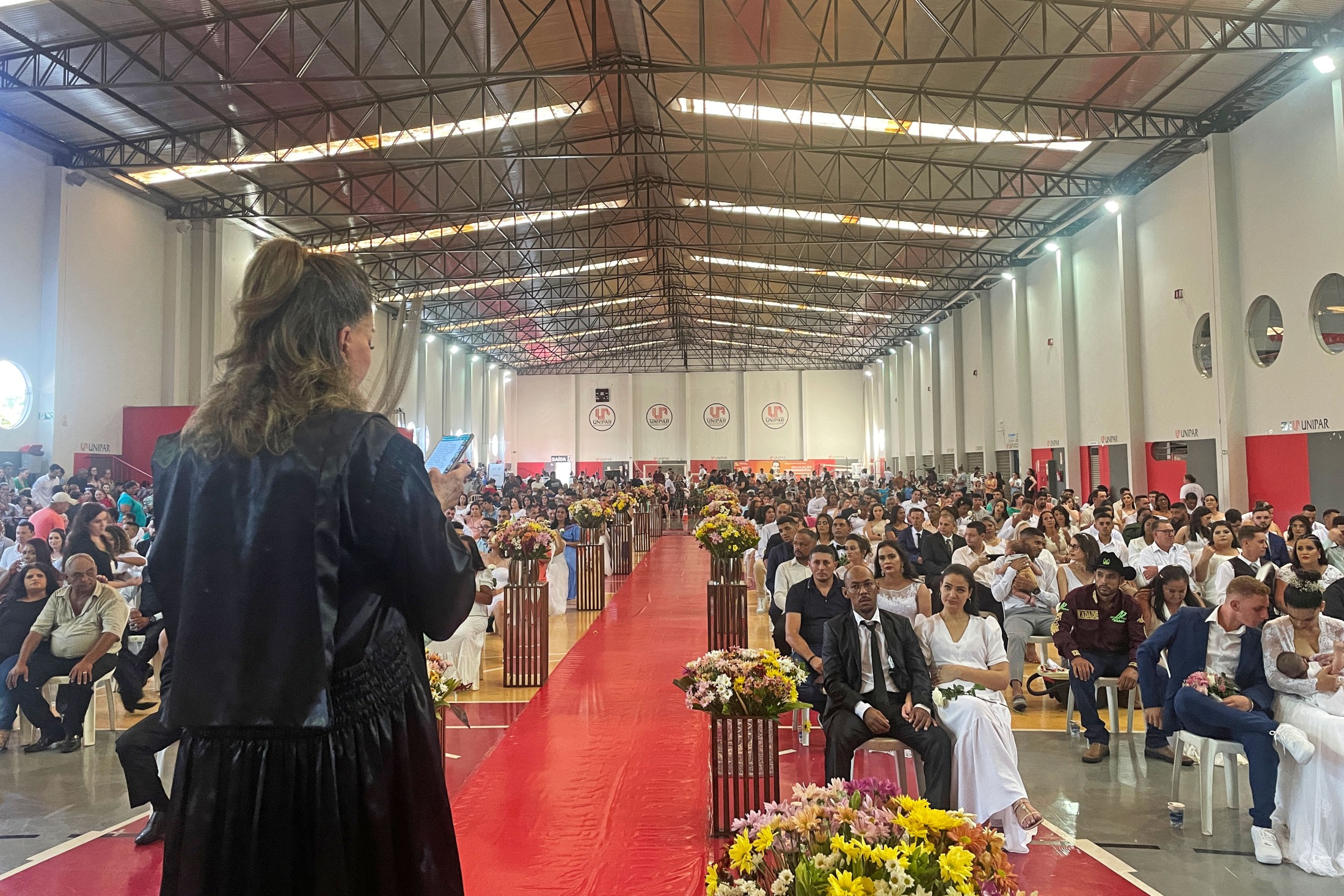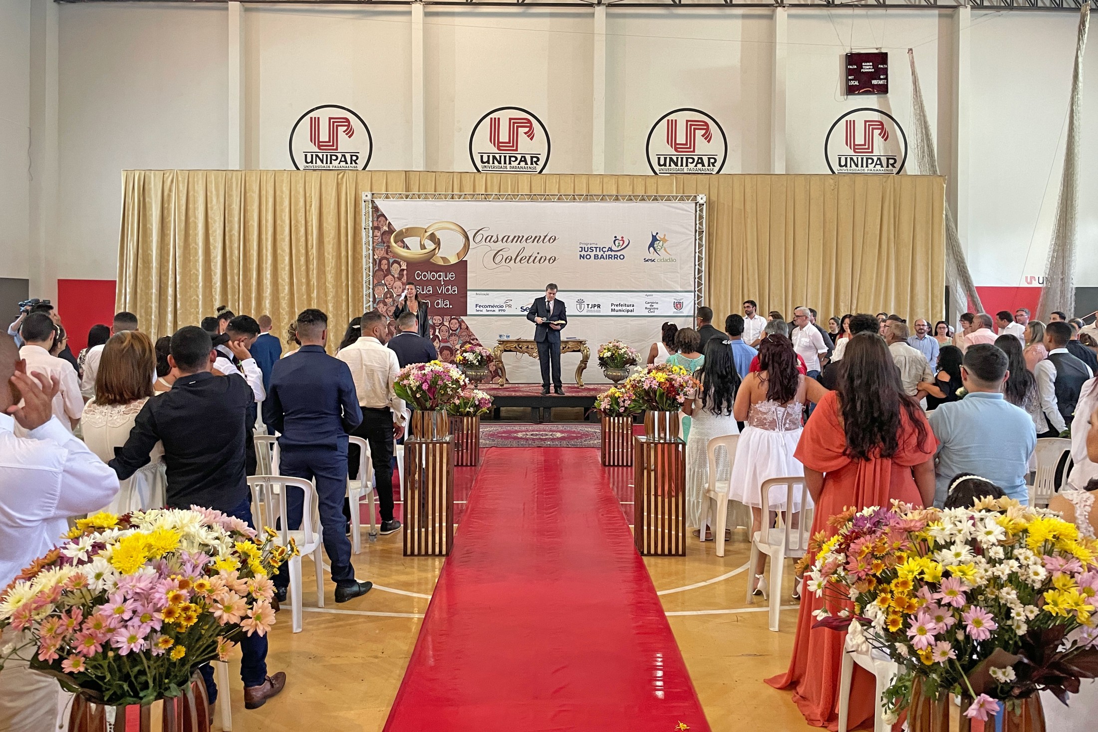 No último sábado (23) 136 casais, sendo 61 de Cianorte e os demais da Amenorte, disseram o tão esperado “SIM” no Casamento Civil Coletivo. Realizada no Complexo Esportivo da Unipar, a solenidade encerrou as atividades da 7ª edição do Programa Justiça no Bairro no município e contou com a presença de autoridades e familiares dos noivos.