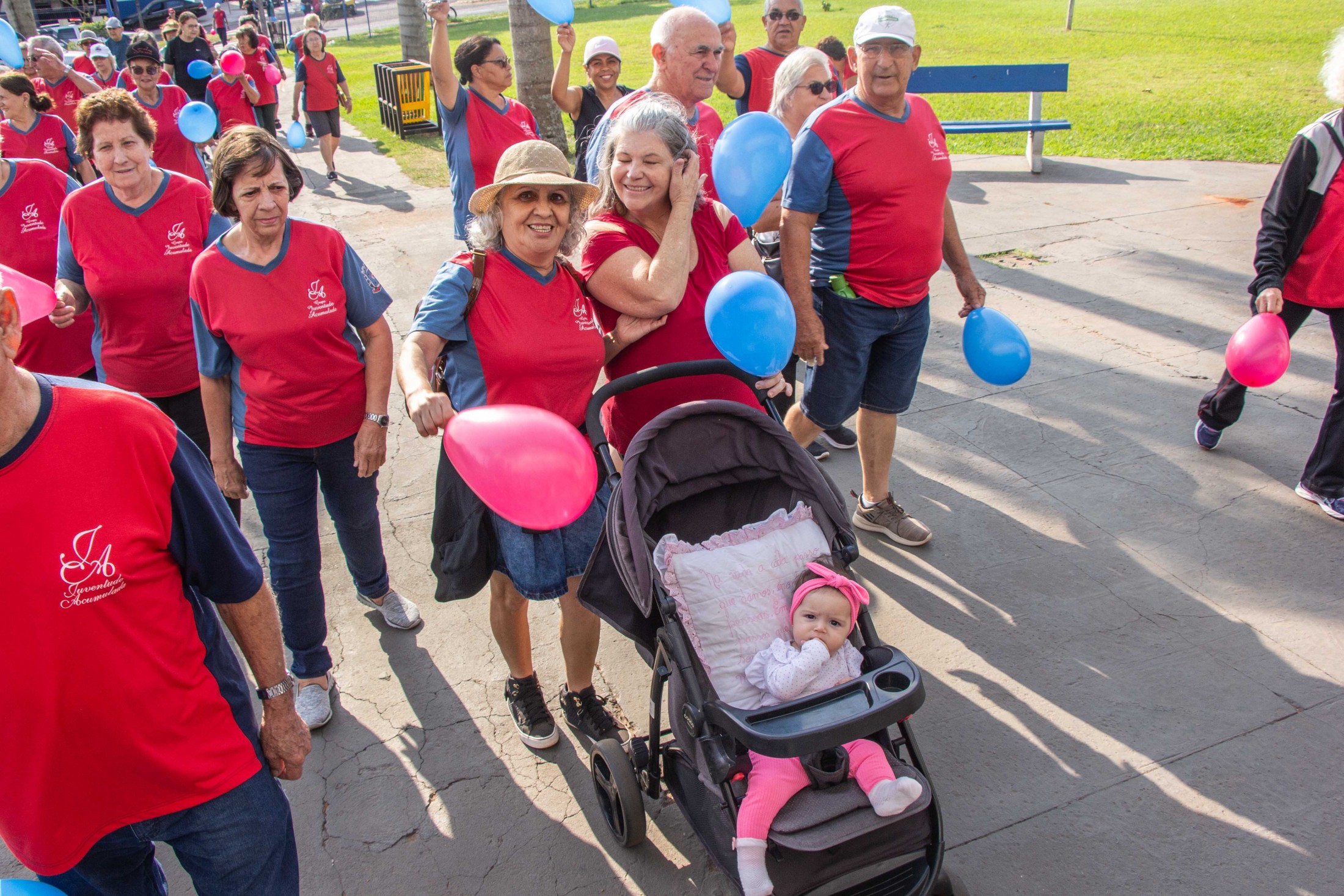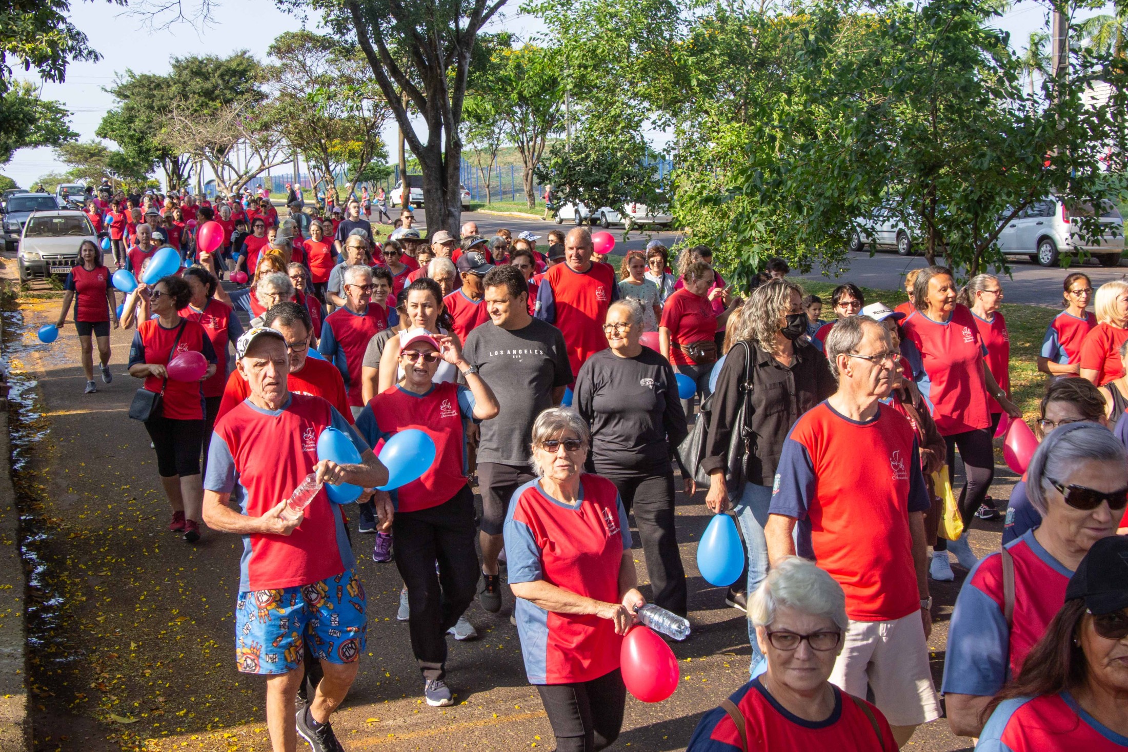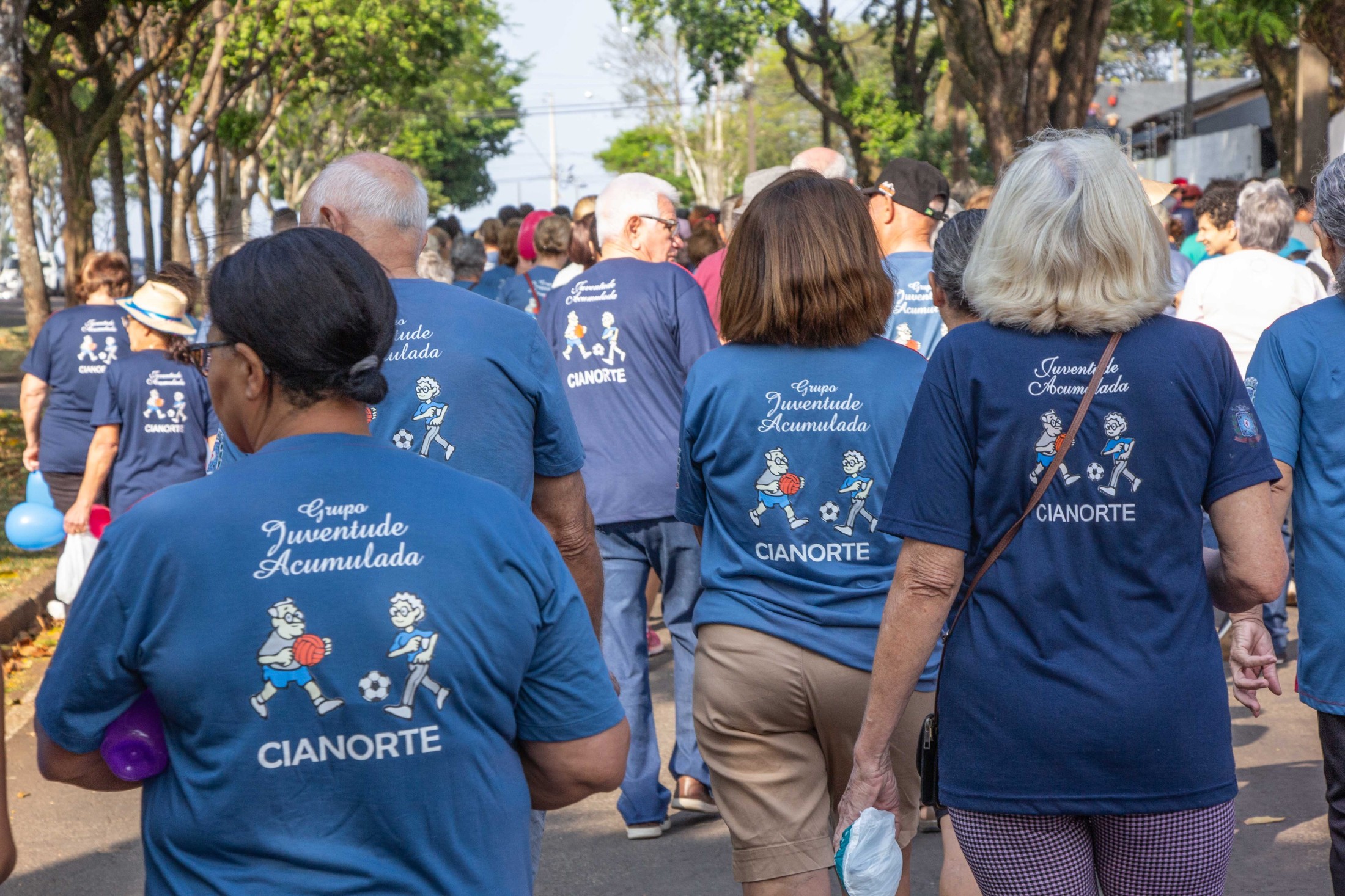 Em comemoração ao Dia Internacional da Pessoa Idosa, celebrado em 1º de outubro, o Juventude Acumulada, da Secretaria Municipal de Esporte e Lazer (SMEL), promoveu uma caminhada, na manhã desta quinta-feira (28). Cerca de 400 pessoas participaram, entre integrantes dos grupos desenvolvidos nos centros esportivos Carlos Yoshito Mori, Bendito Rotta e João Bola e seus familiares.