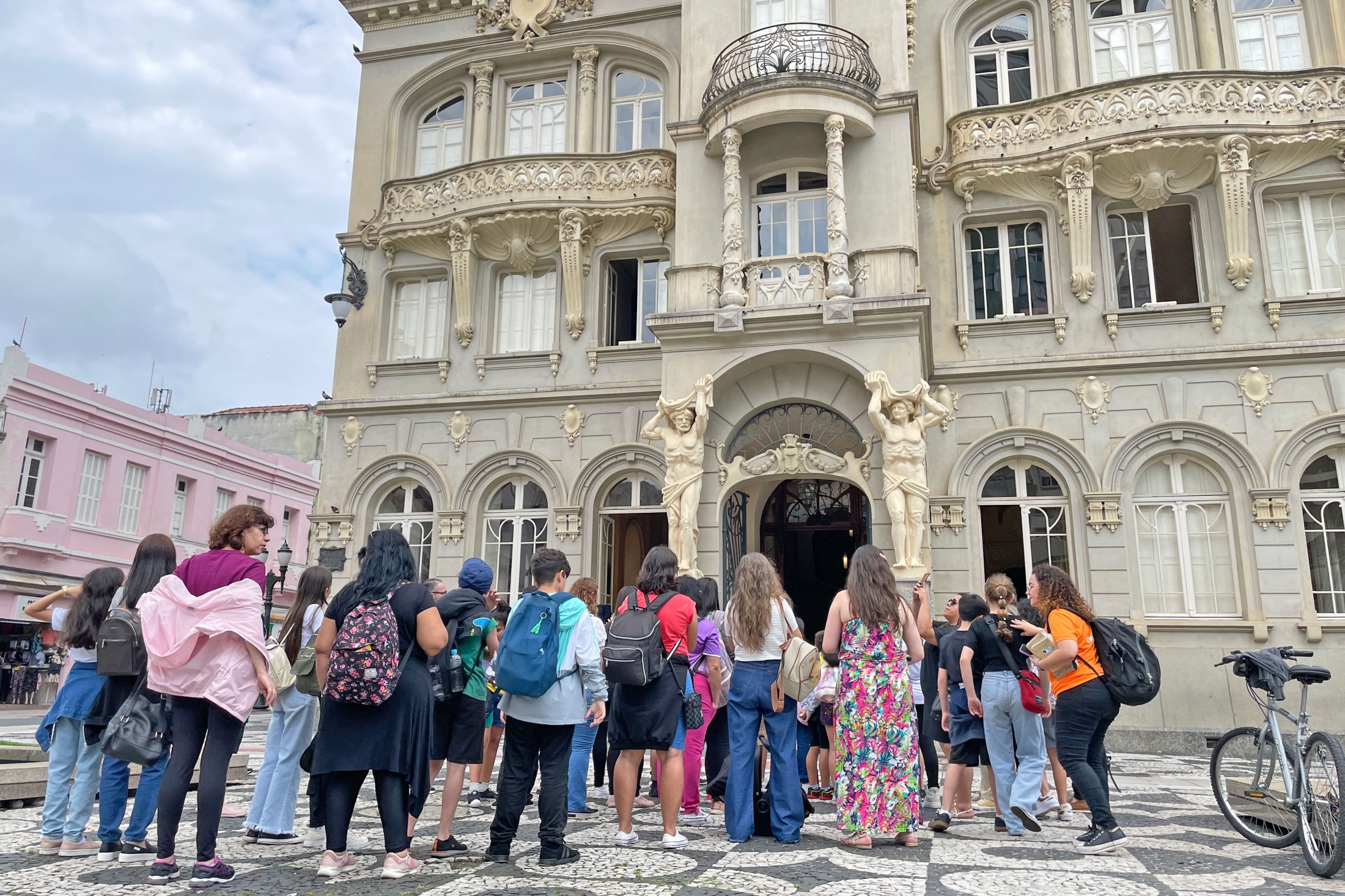 PASSEIO TURÍSTICO: Pela manhã da quarta-feira (27), os estudantes aproveitaram a viagem e fizeram visitas ao Jardim Botânico, onde puderam conhecer a “Galeria das Quatro Estações"; ao Museu de Arte da UFPR, em que apreciaram a exposição “Elas no MUSA”, com visita guiada pela museóloga, Lidiane Nascimento; e ao SESC Paço da Liberdade, onde apreciaram a exposição Duas Cadeiras no Deserto, com visita guiada por uma das artistas, Tatiana Adami.