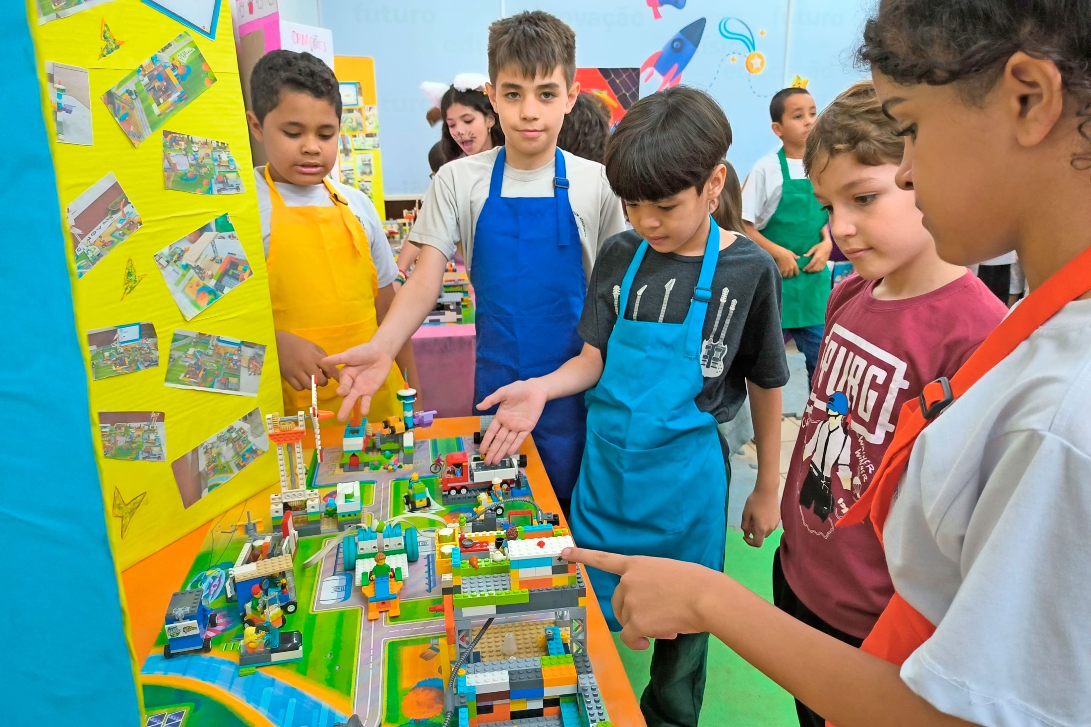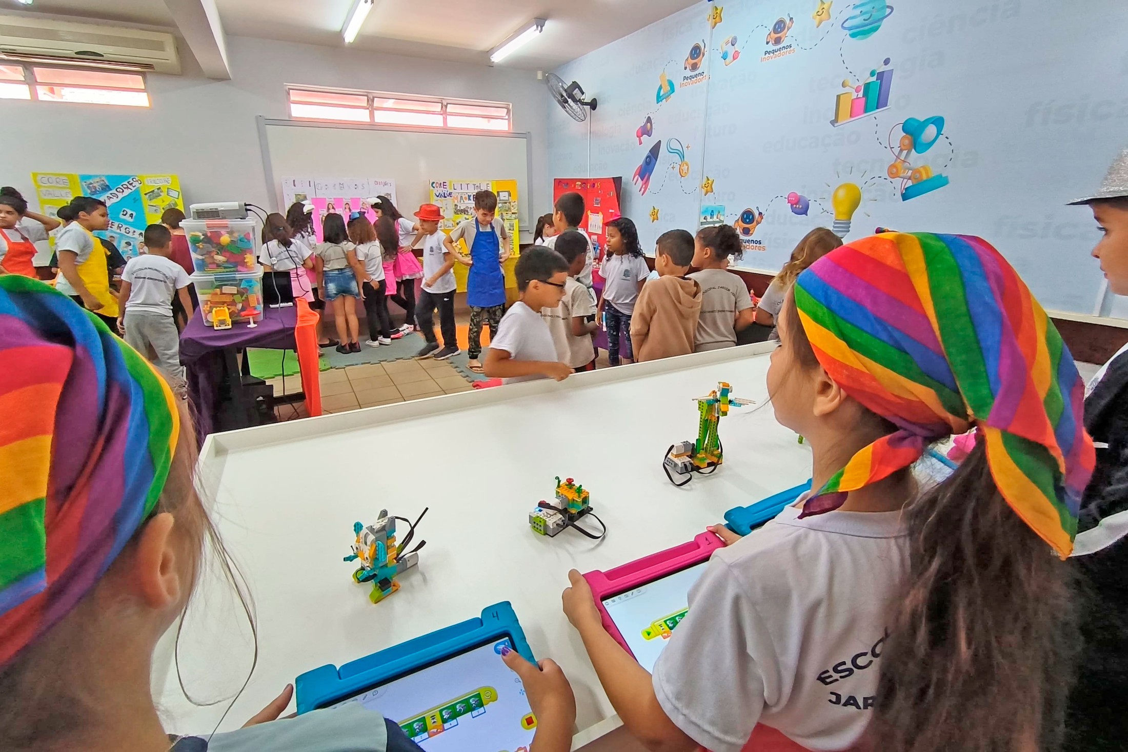 Nesta segunda e terça-feira (09 e 10), a Escola Municipal Jardim Aeroporto promoveu a sua 1ª Feira de Robótica, para apresentar à comunidade os resultados do projeto Pequenos Inovadores e das aulas regulares de Tecnologia e Inovação. Foram expostos os trabalhos desenvolvidos para o torneio First Lego League e também vídeos e produções de sala de aula.