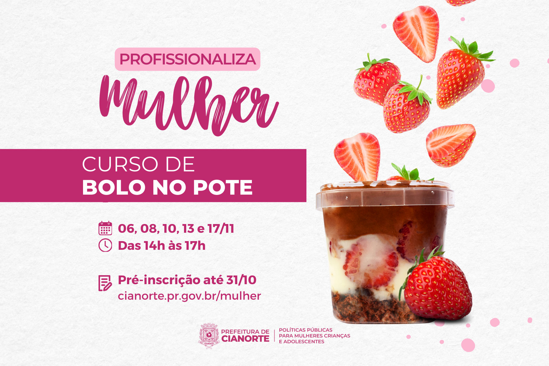 Dando sequência ao projeto Profissionaliza Mulher, a Secretaria Municipal de Políticas Públicas para Mulheres, Crianças e Adolescentes abre pré-inscrições para o curso de Bolo de Pote. Com 15 vagas, a qualificação profissional é gratuita e ensinará receitas campeãs de vendas como forma de transformar a confeitaria em um negócio.