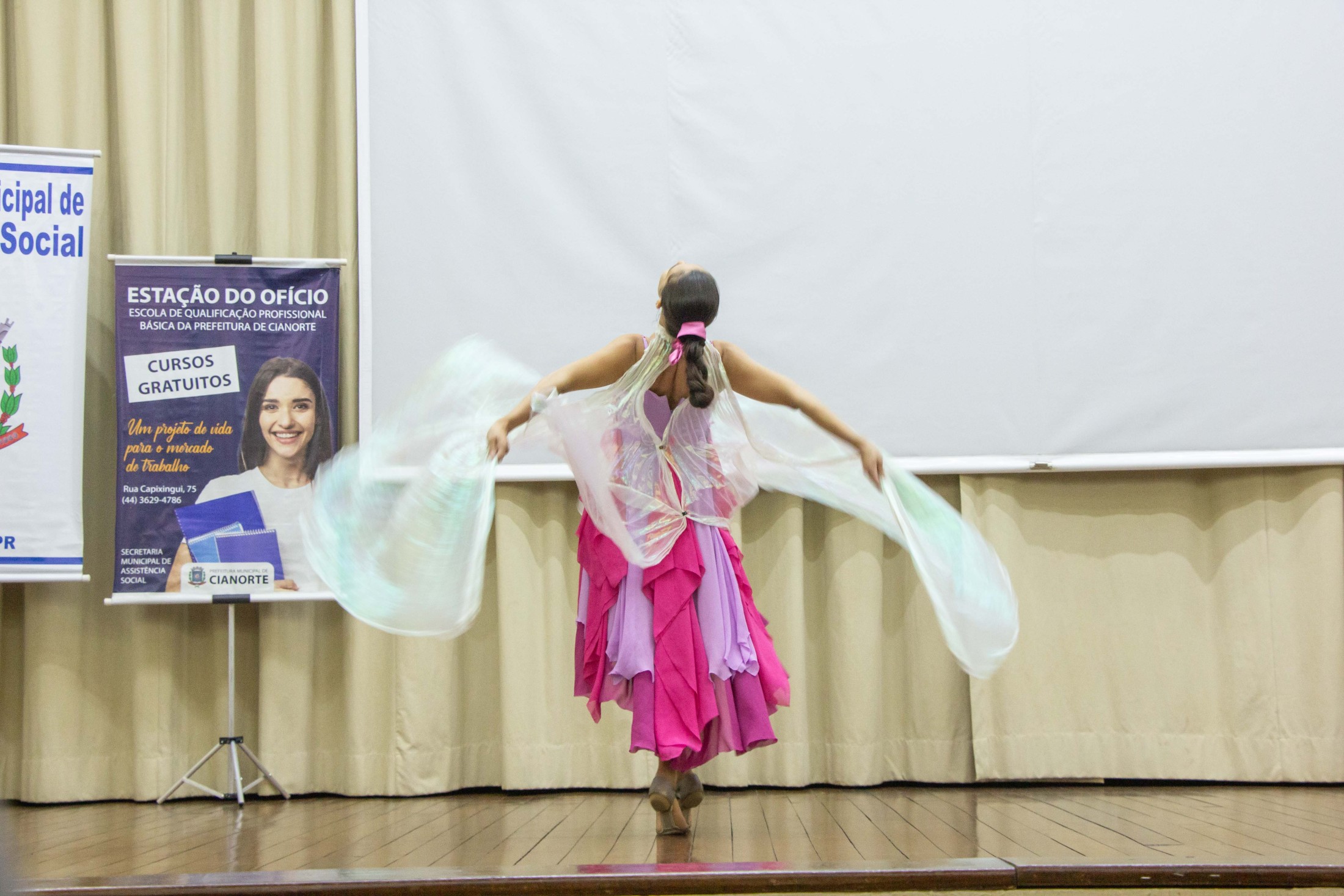 Na ocasião, a bailarina Larissa Bartmanovicz, do Centro Artístico Thays Pires, apresentou um solo. O evento contou, ainda, com a presença do presidente da Câmara de Vereadores, Wilson Pedrão; da representante do Escritório Regional da Secretaria de Estado da Justiça, Família e Trabalho, Rosa Maria Rodrigues de Souza; do gerente-executivo do Serviço Nacional de Aprendizagem Comercial (SENAC), Reginaldo Inácio Coelho; e do orientador pedagógico do Serviço Nacional de Aprendizagem Industrial (SENAI), Bruno Henrique Pereira Peternella.