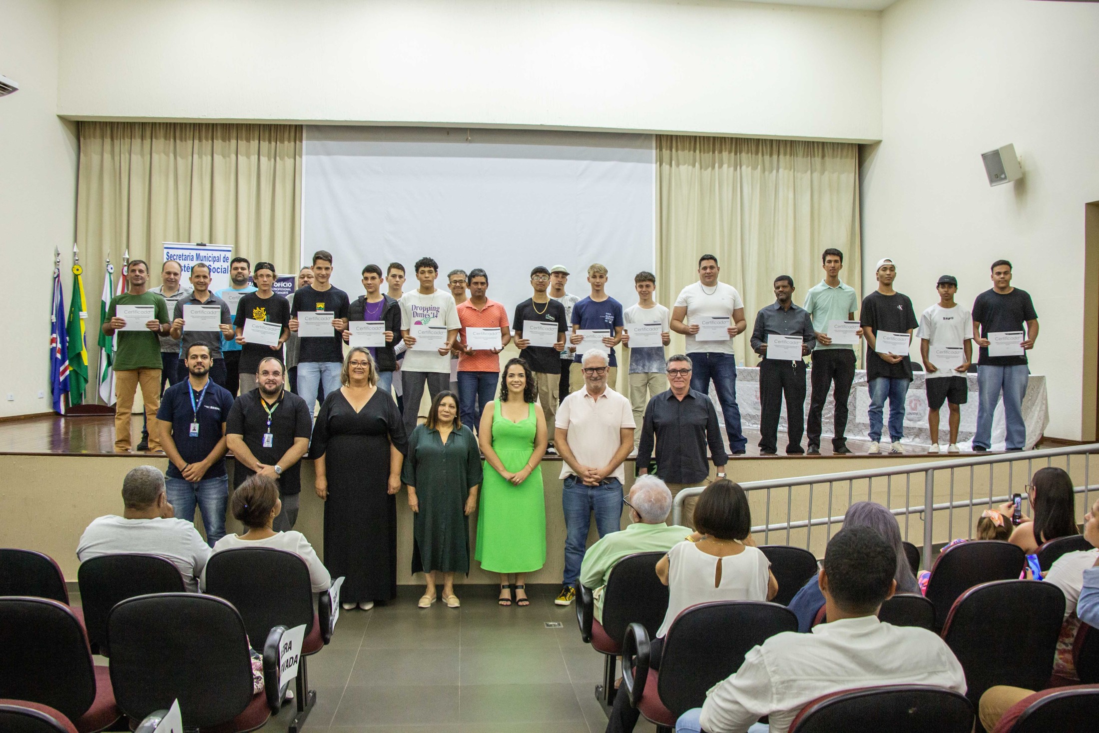 “Uma das nossas preocupações é a geração de emprego e renda para a comunidade, por isso estamos investindo na qualificação profissional. Hoje entregamos esses certificados com muita alegria, porque sabemos que essas pessoas estão aptas a buscar a realização de seus sonhos. O conhecimento é uma chave que abre muitas portas e possibilidades para quem quer se recolocar no mercado de trabalho ou até mesmo empreender”, destacou o prefeito, Marco Franzato.