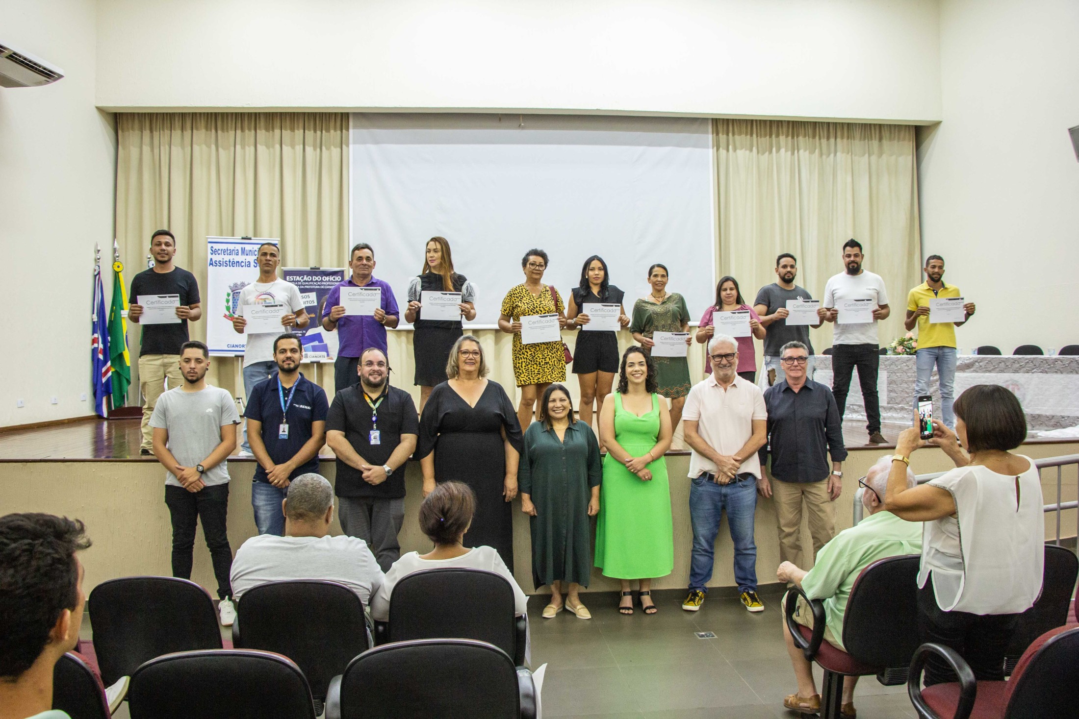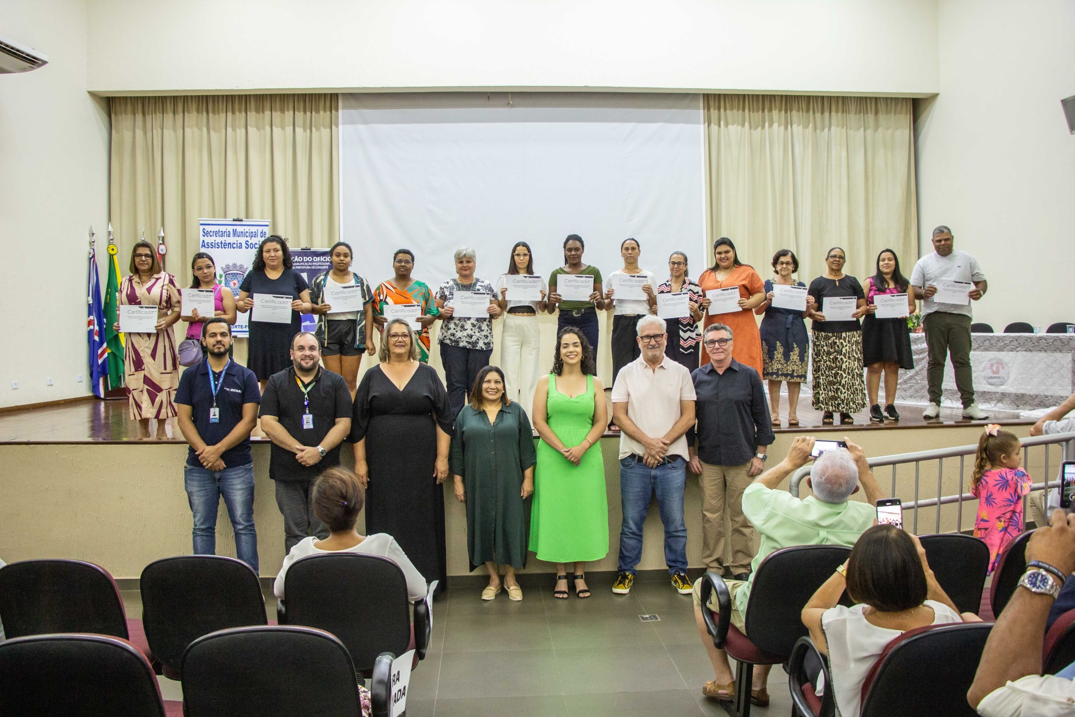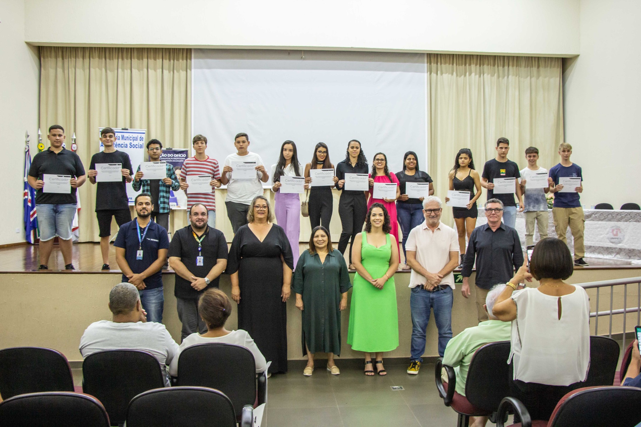 A noite da última quarta-feira (08) foi de muita alegria e satisfação para os concluintes dos cursos oferecidos pela Escola de Qualificação Profissional Básica da Prefeitura de Cianorte, mais conhecida como Estação do Ofício, junto com o SENAI e SENAC. Autoridades, professores, alunos e seus familiares reuniram-se no auditório da Unipar, em uma solenidade seguida por coquetel.