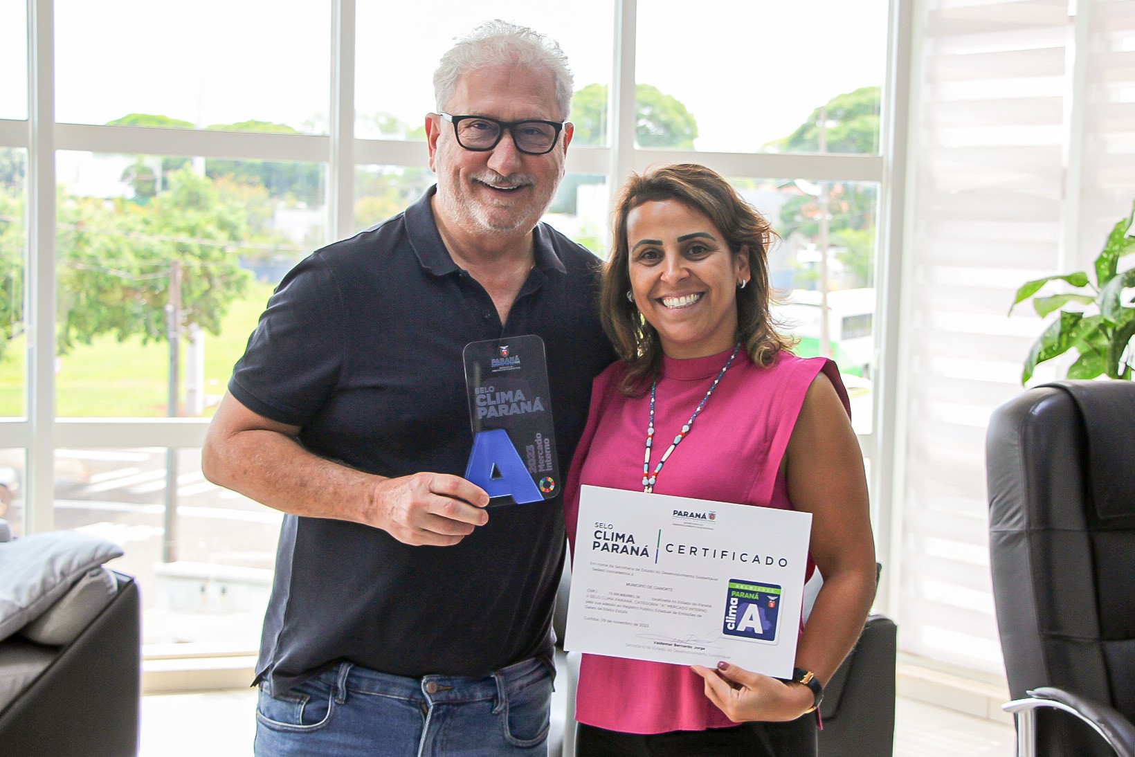 Nesta segunda-feira (13), a certificação chegou às mãos do prefeito, Marco Franzato. “O Selo Clima Paraná oficializa a adesão do município ao Registro Público Estadual de Emissões de Gases Estufa, que é mais uma prova do nosso compromisso com a construção de um futuro próspero, com base na inovação com sustentabilidade. Parabéns a cada cianortense que contribui com esse ideal”, afirmou.