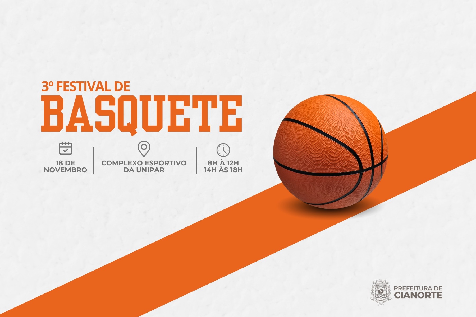 Dribles, arremessos e muita diversão. Esta é a combinação que vai tomar conta do Complexo Esportivo da Unipar neste sábado (18). Isto porque, o local sediará o Festival de Basquete das escolinhas da Secretaria Municipal de Esporte e Lazer (SMEL). Pela manhã, das 8h às 12h, os jogos serão com os alunos de 12 a 14 anos. Já no período da tarde, das 14h às 17h, com os de 15 a 17 anos. Ambas as ocasiões em categoria mista.