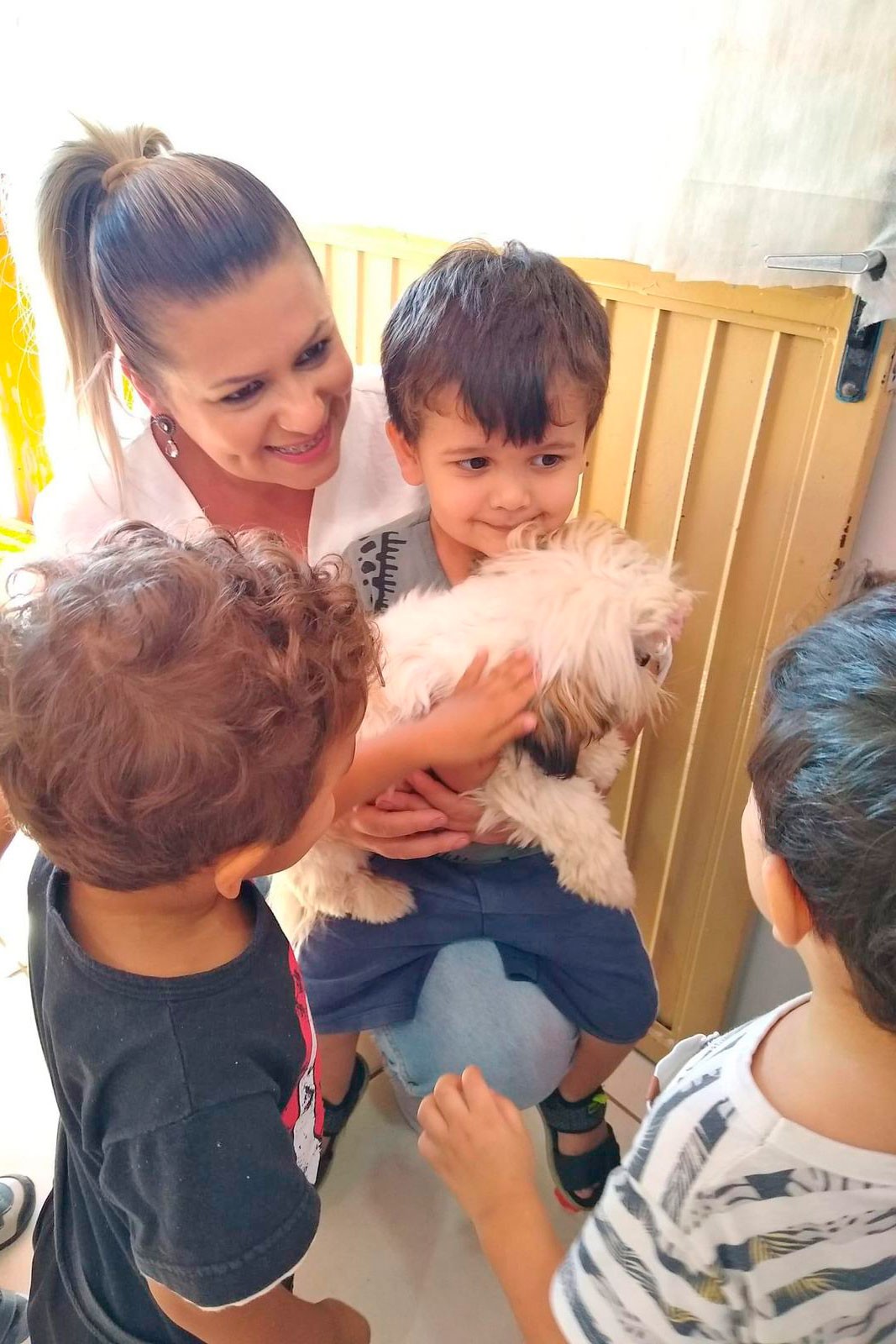 Uma das atividades mais marcantes foi a presença dos pets trazidos pelas famílias. As crianças puderam conhecer diferentes espécies, suas características e necessidades. A interação despertou momentos de aprendizado e diversão. Para enriquecer ainda mais o projeto, a veterinária, Lucélia Bassani, compartilhou de forma lúdica e educativa os cuidados essenciais com os animais, promovendo a importância de tratá-los com carinho e respeito. A equipe da cozinha também se envolveu, preparando refeições especiais.