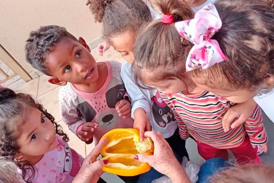 No último mês, as crianças do Maternal II, do Centro Municipal de Educação Infantil (CMEI) Maria Testa Rodrigues, tiveram a oportunidade de explorar os ambientes ao redor da escola e participar do Projeto Cores e Sabores. Durante essa jornada, elas plantaram, cultivaram, colheram e saborearam diversos legumes e verduras, contando com a participação ativa de suas famílias em todo o processo.