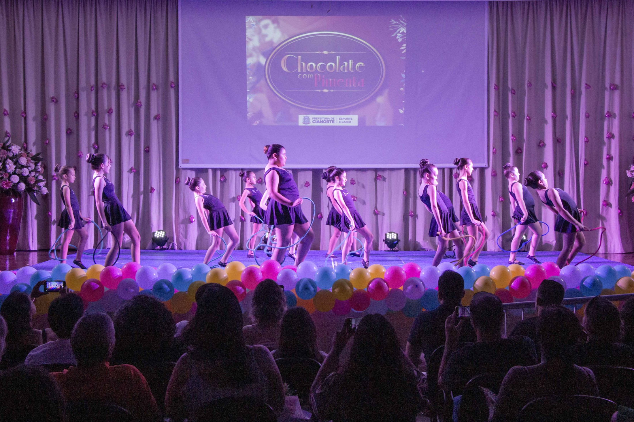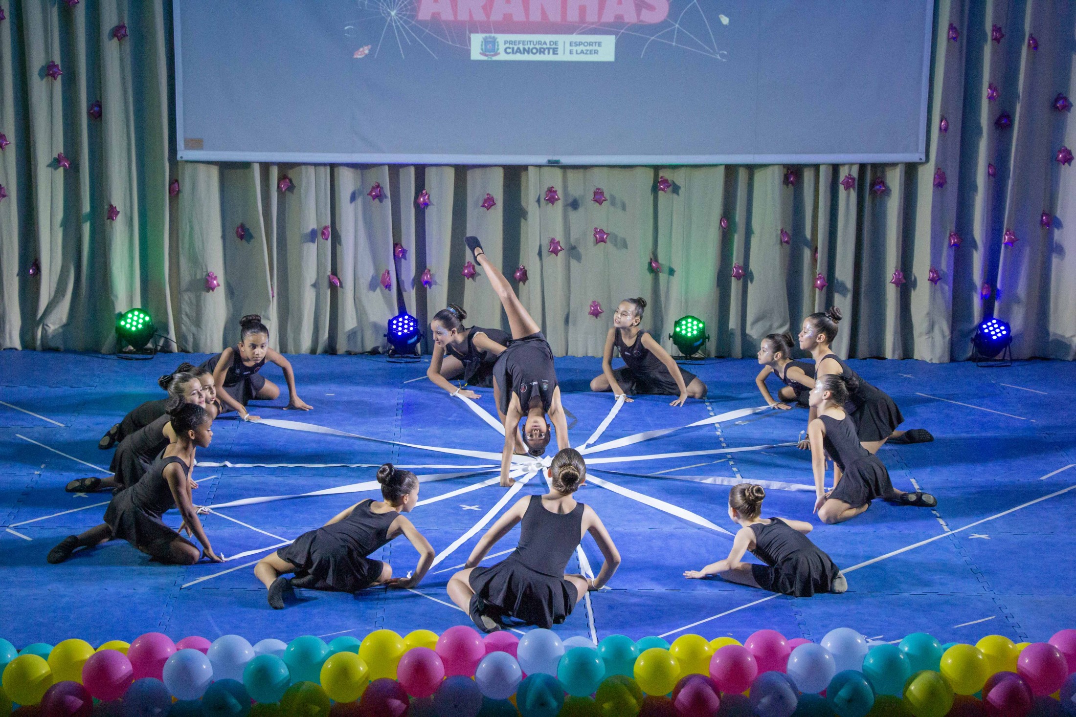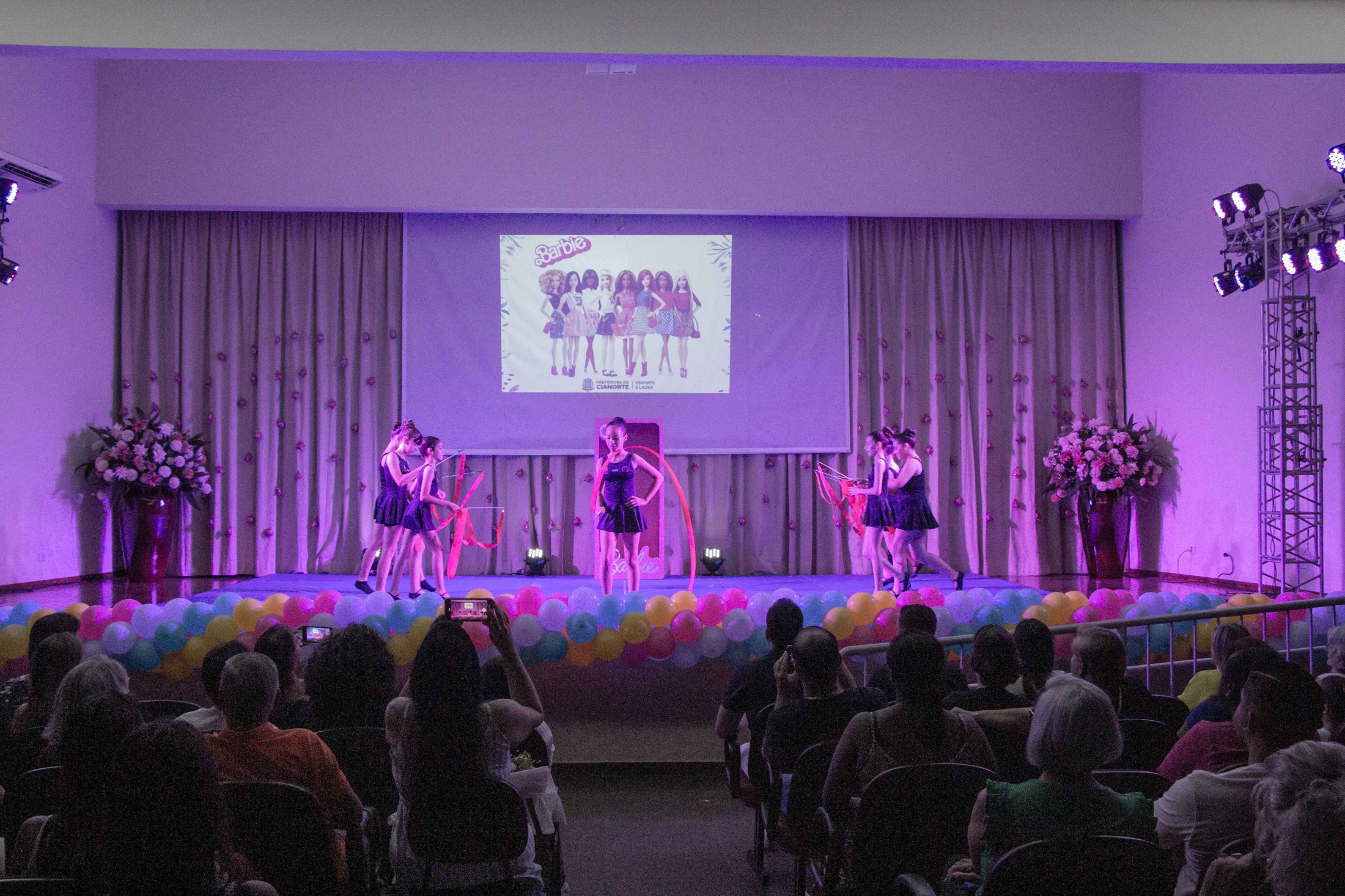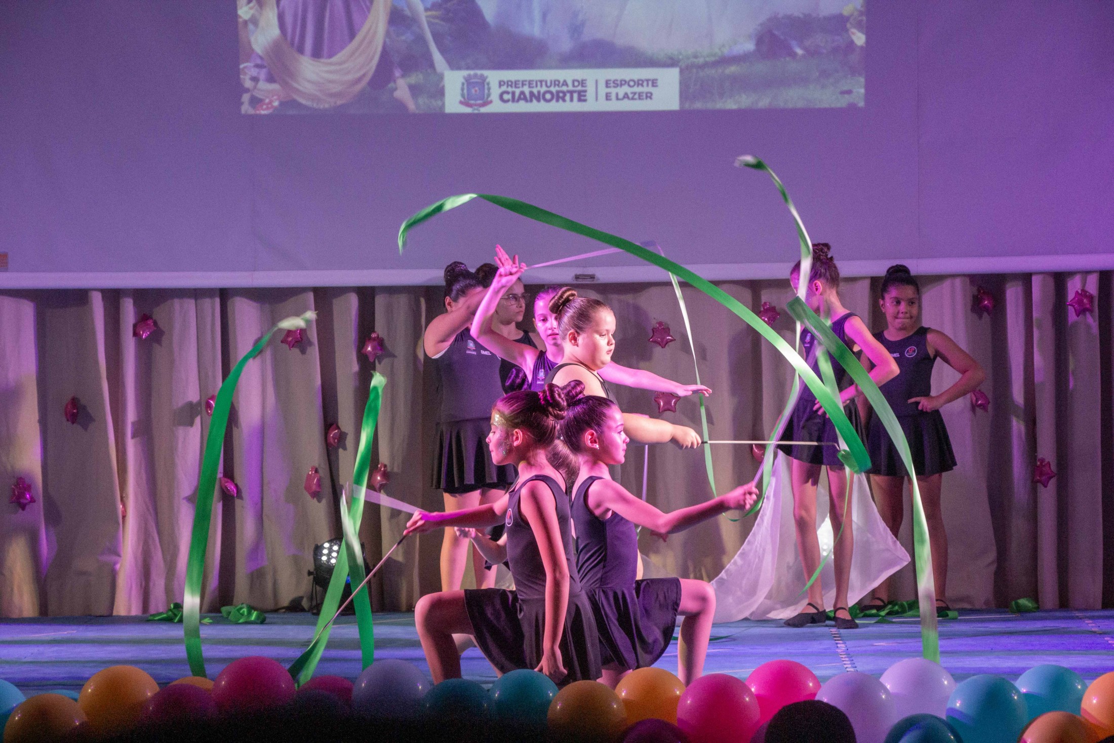 Na noite da última terça-feira (12), o Teatro Cândido Garcia ficou lotado com a realização do 3º Festival de Ginástica Rítmica, um projeto da Prefeitura, por meio da Secretaria Municipal de Esporte e Lazer (SMEL), em parceria com a Unipar, que promove aulas gratuitas da modalidade. O evento marcou o encerramento das atividades de 2023, reunindo as 110 alunas, com apresentações das habilidades desenvolvidas, que encantaram o público.
