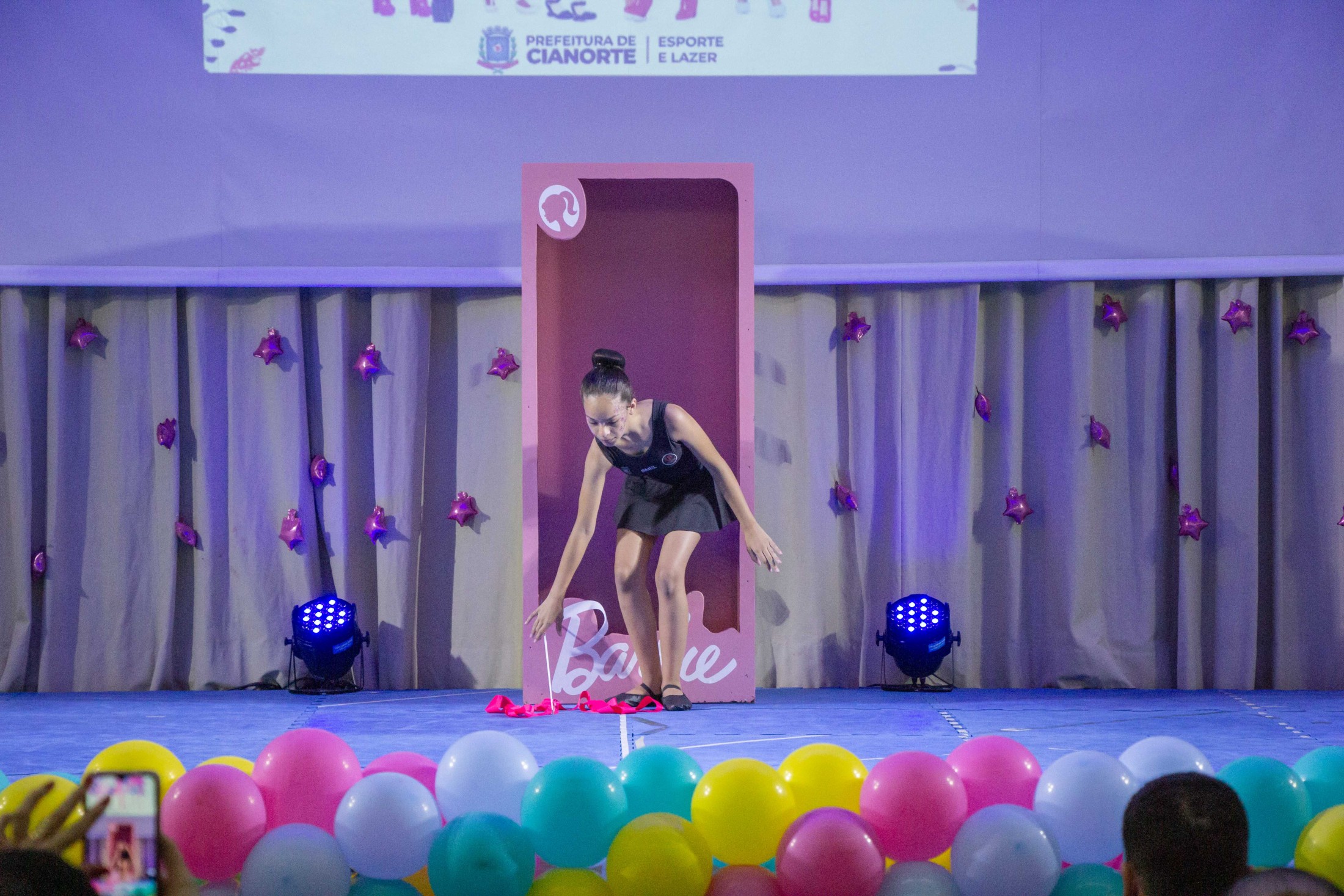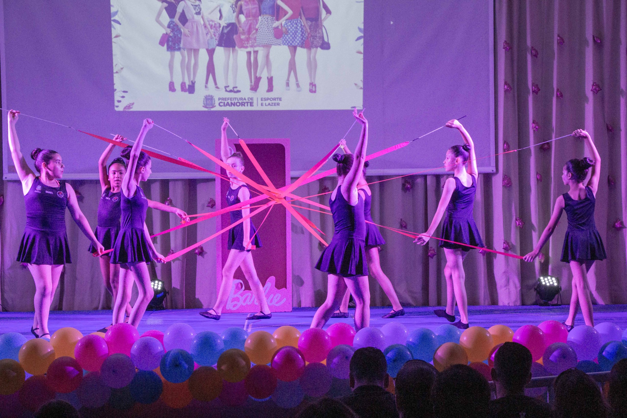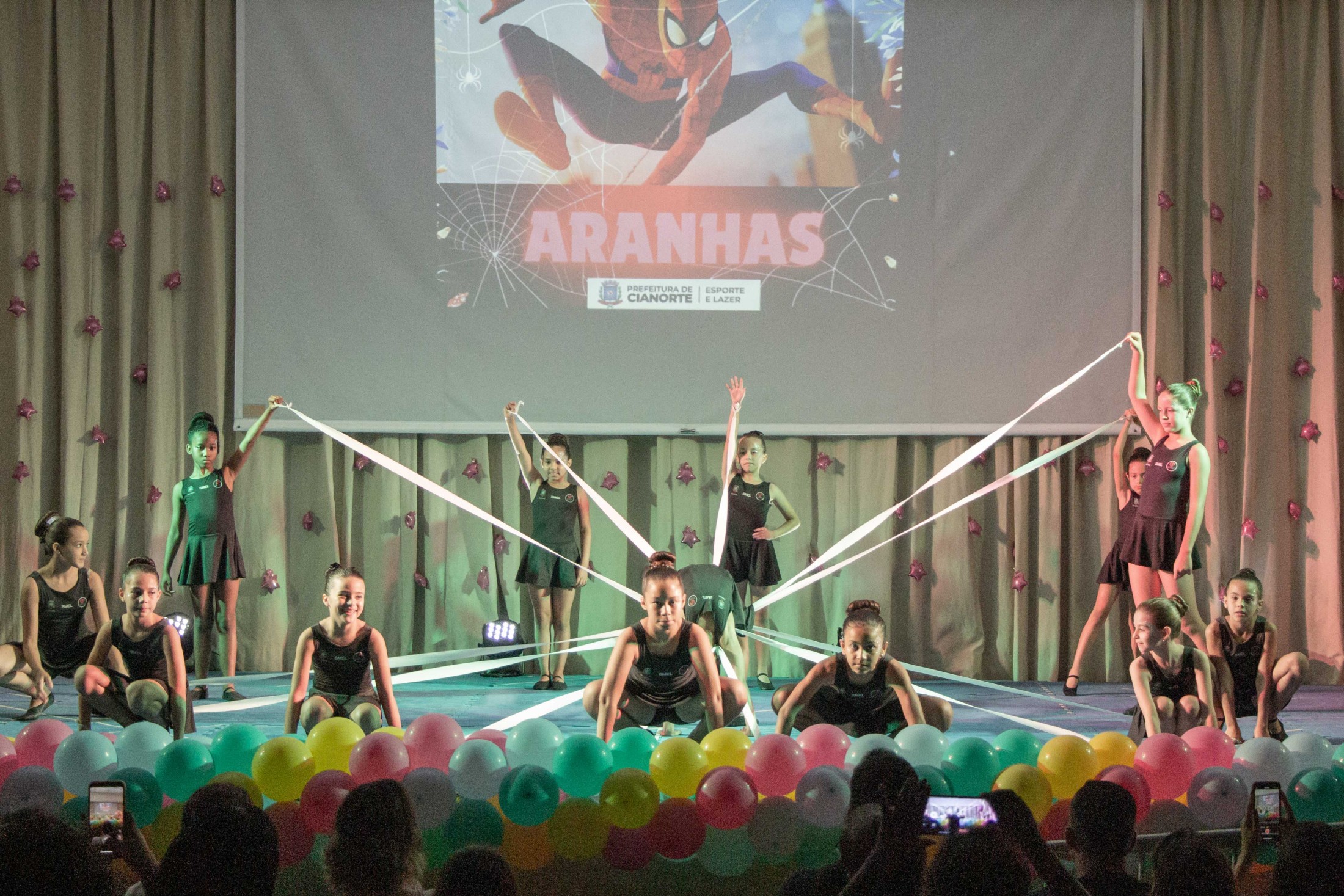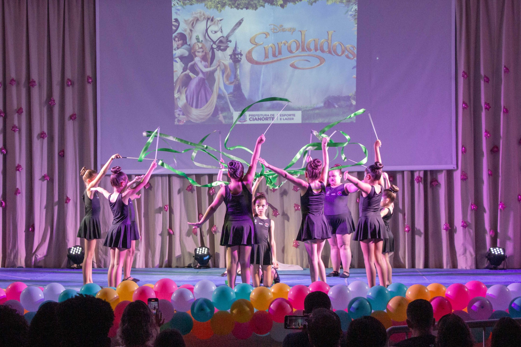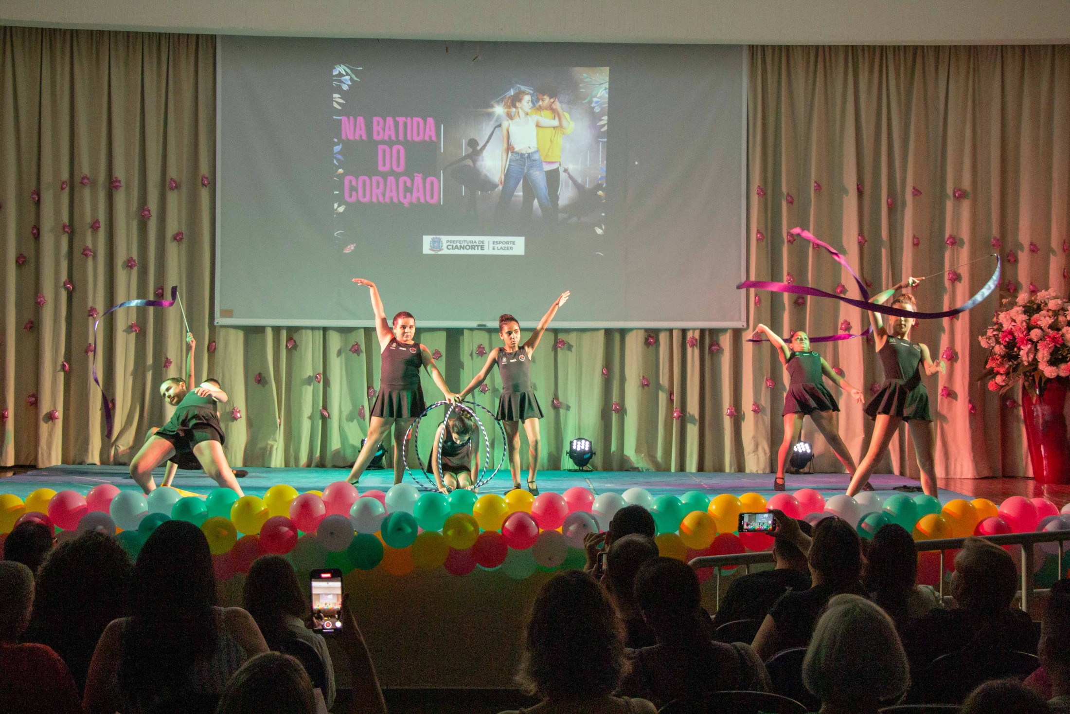 Na noite da última terça-feira (12), o Teatro Cândido Garcia ficou lotado com a realização do 3º Festival de Ginástica Rítmica, um projeto da Prefeitura, por meio da Secretaria Municipal de Esporte e Lazer (SMEL), em parceria com a Unipar, que promove aulas gratuitas da modalidade. O evento marcou o encerramento das atividades de 2023, reunindo as 110 alunas, com apresentações das habilidades desenvolvidas, que encantaram o público.
