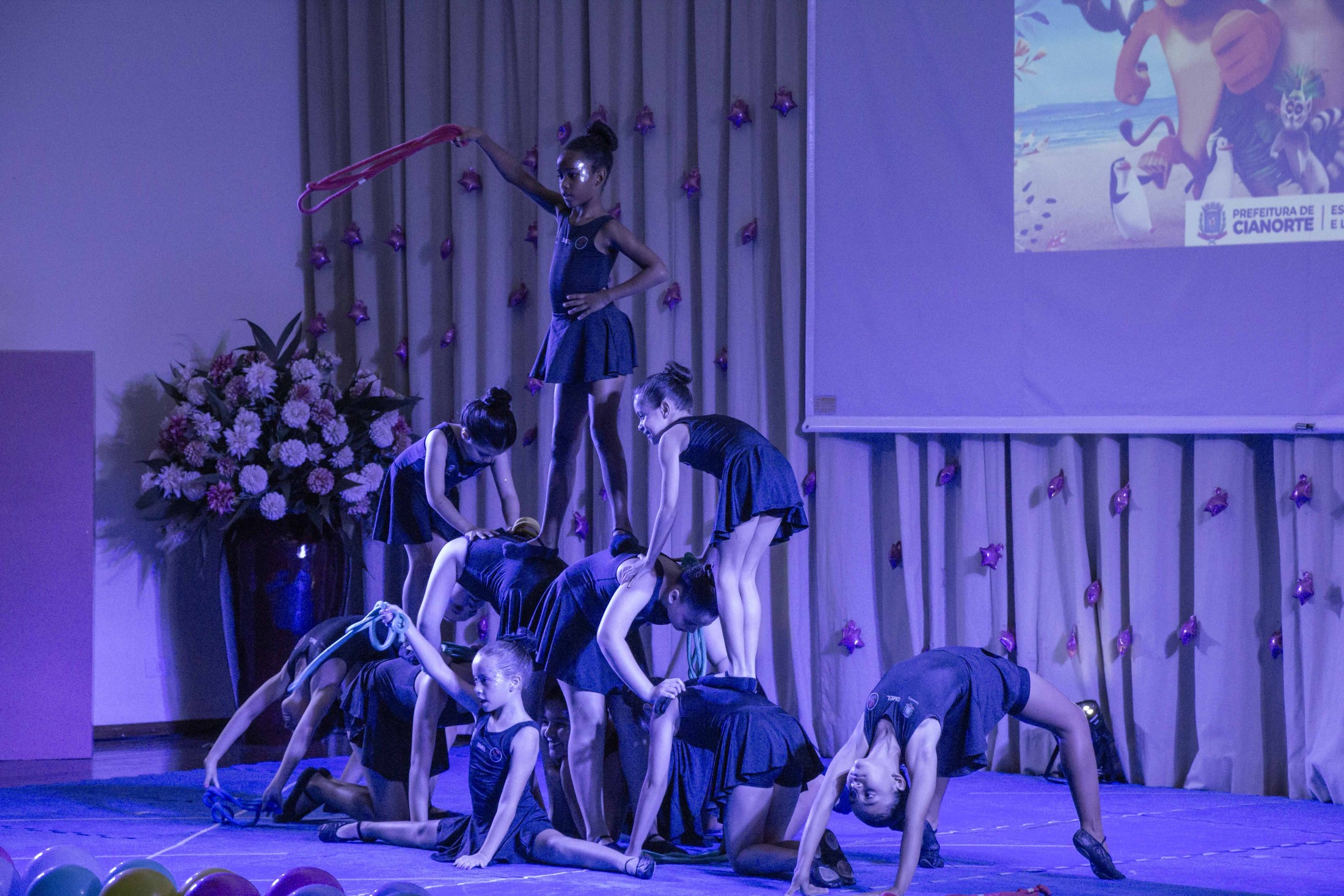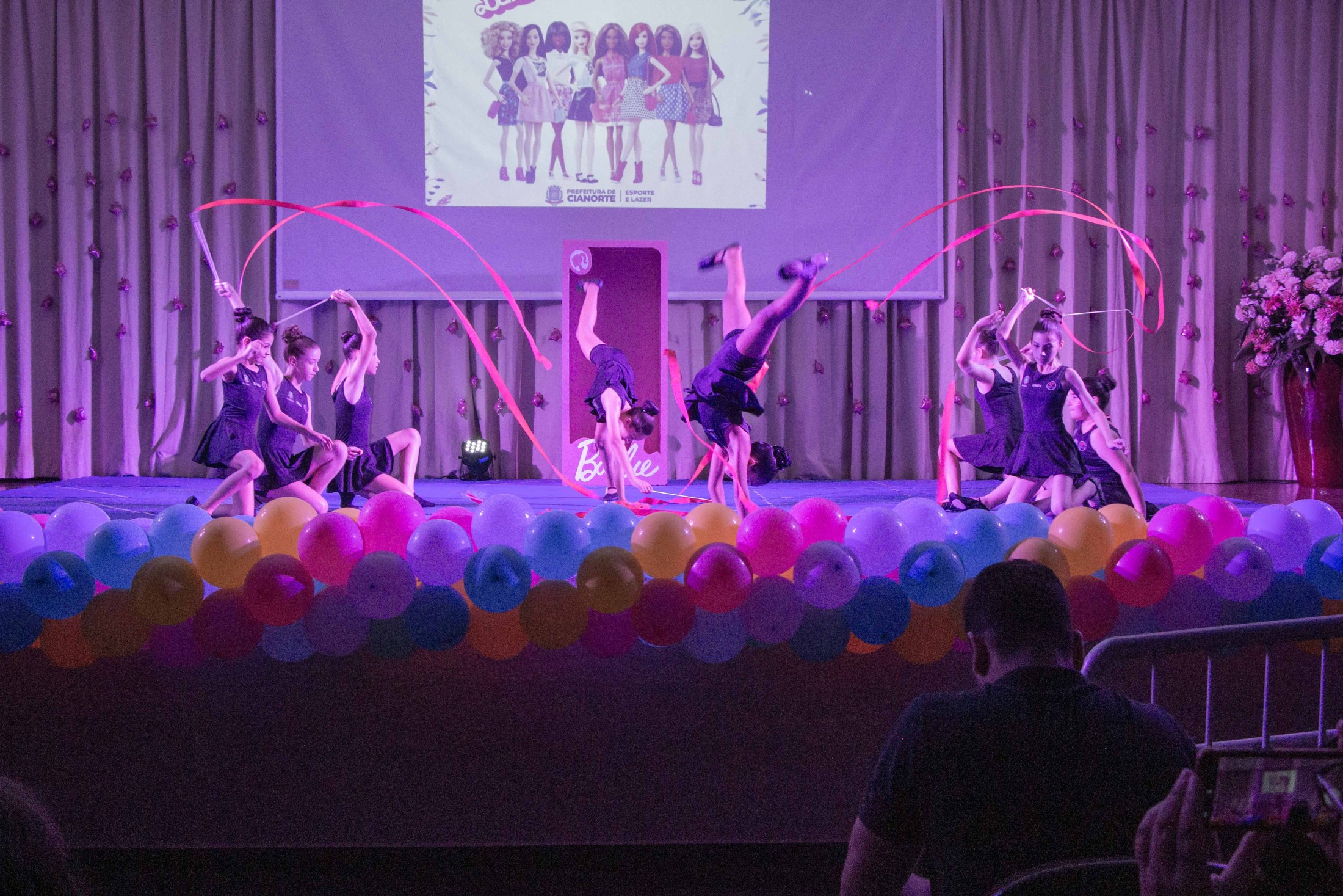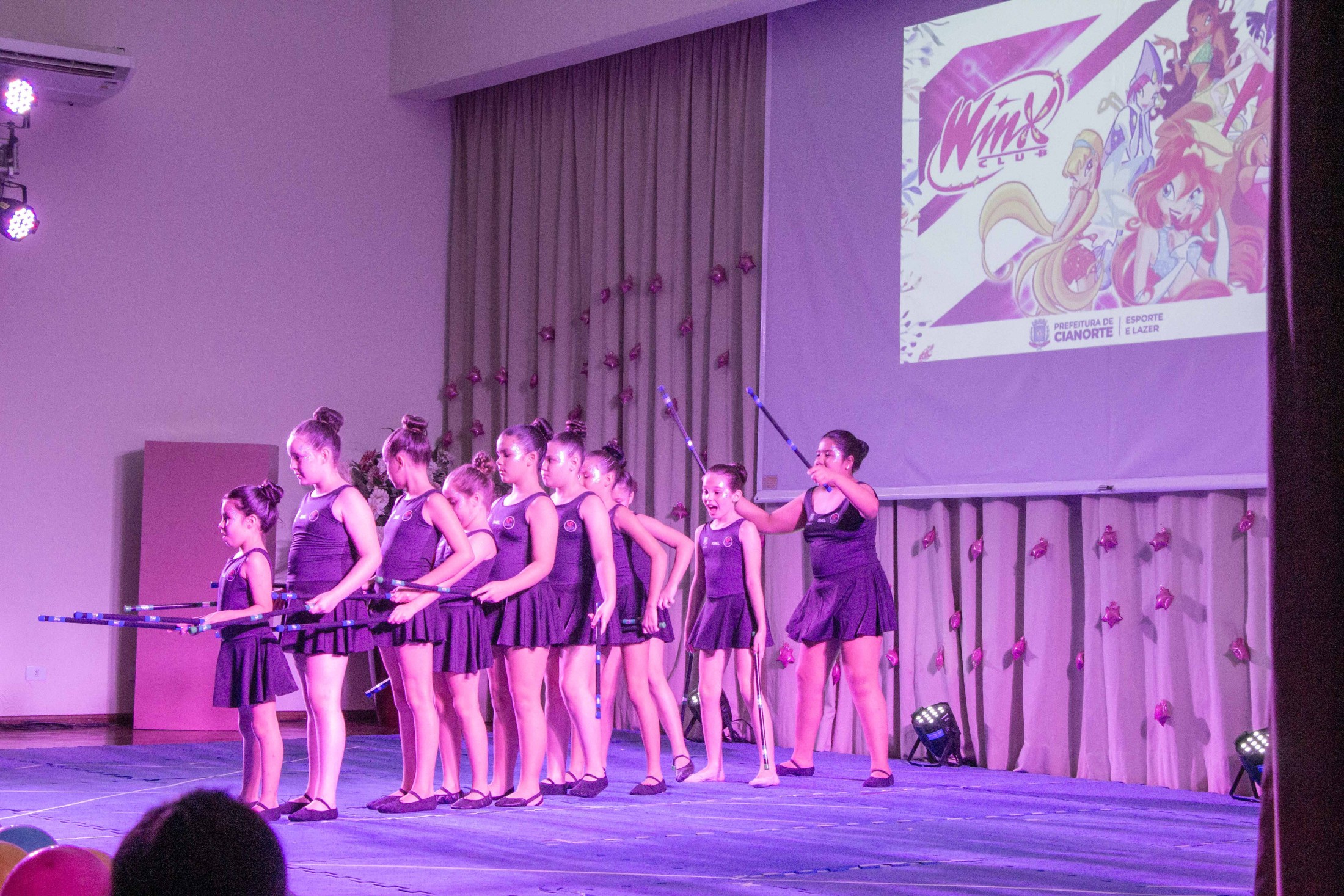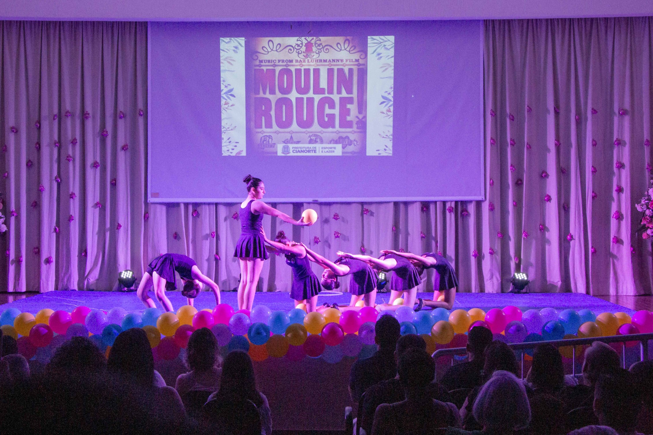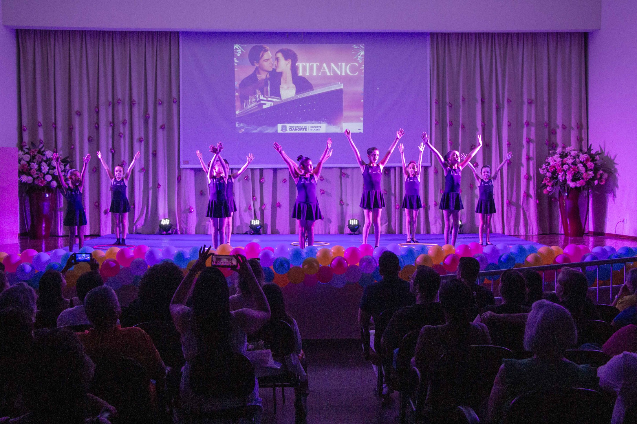Na noite da última terça-feira (12), o Teatro Cândido Garcia ficou lotado com a realização do 3º Festival de Ginástica Rítmica, um projeto da Prefeitura, por meio da Secretaria Municipal de Esporte e Lazer (SMEL), em parceria com a Unipar, que promove aulas gratuitas da modalidade. O evento marcou o encerramento das atividades de 2023, reunindo as 110 alunas, com apresentações das habilidades desenvolvidas, que encantaram o público.